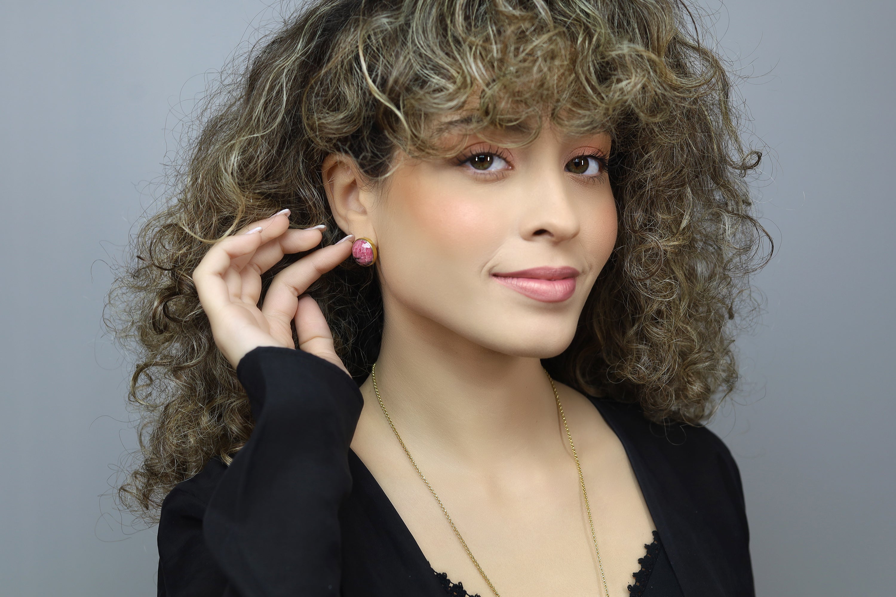 Make a statement with these 18k Gold Rhodonite Stud Earrings. Featuring a beautiful pink gemstone with a faceted round shape, these earrings are perfect for the modern bride. The earrings are made of 18k gold, ensuring they are durable and long-lasting. The rhodonite stone is known for its healing properties, making these earrings not only stylish but meaningful as well.