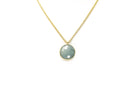 Celebrate the March birthstone with this beautiful aquamarine gemstone necklace. The large bezel set gold round pendant is set with a stunning aquamarine gemstone, making it a high-quality and stylish accessory. Aquamarine is said to bring peace and serenity to the wearer, making it a great choice for those who are looking for emotional balance and stress relief. Additionally, the energy of aquamarine is believed to be calming and soothing, bringing clarity and a sense of calm to the wearer. This necklace is a great gift for someone special or a special treat for yourself.