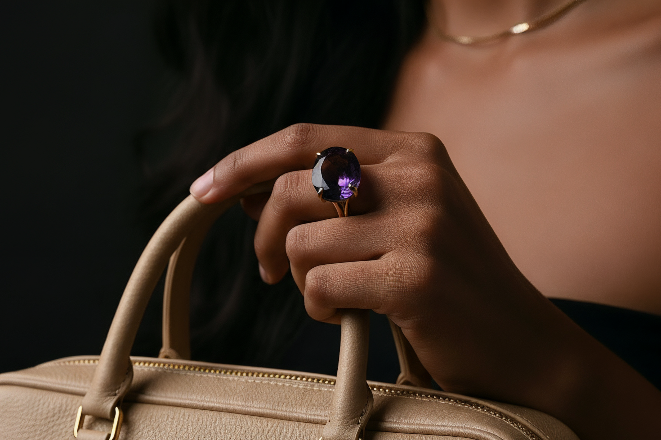Vibrant Purple Amethyst Statement Ring in 14k Gold Filled