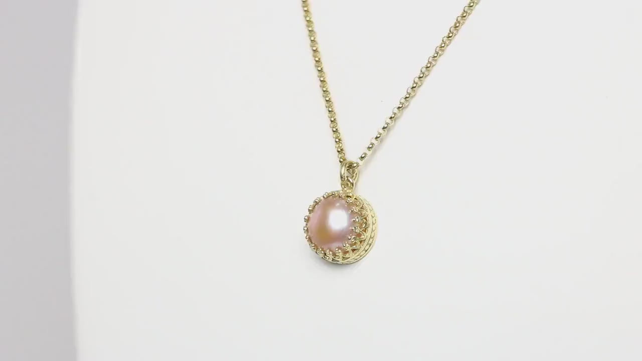 A lovely Pearl necklace for days when you want a little extra touch of elegance to your looks. Inspired by the classic details of Victorian style, this 14k gold necklace has an intricate design you can wear with matching Pearl earrings or you can layer with other custom necklaces for women.