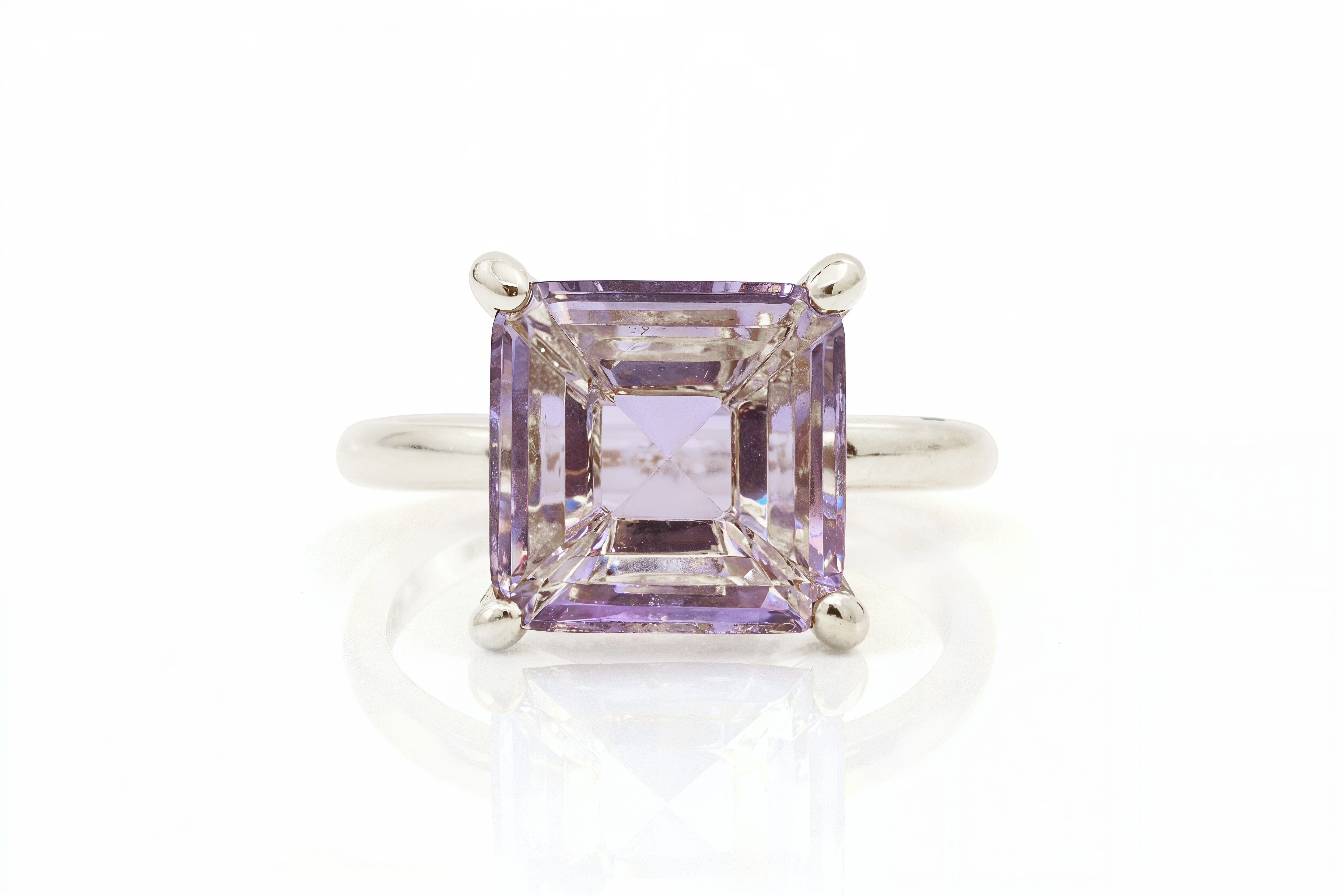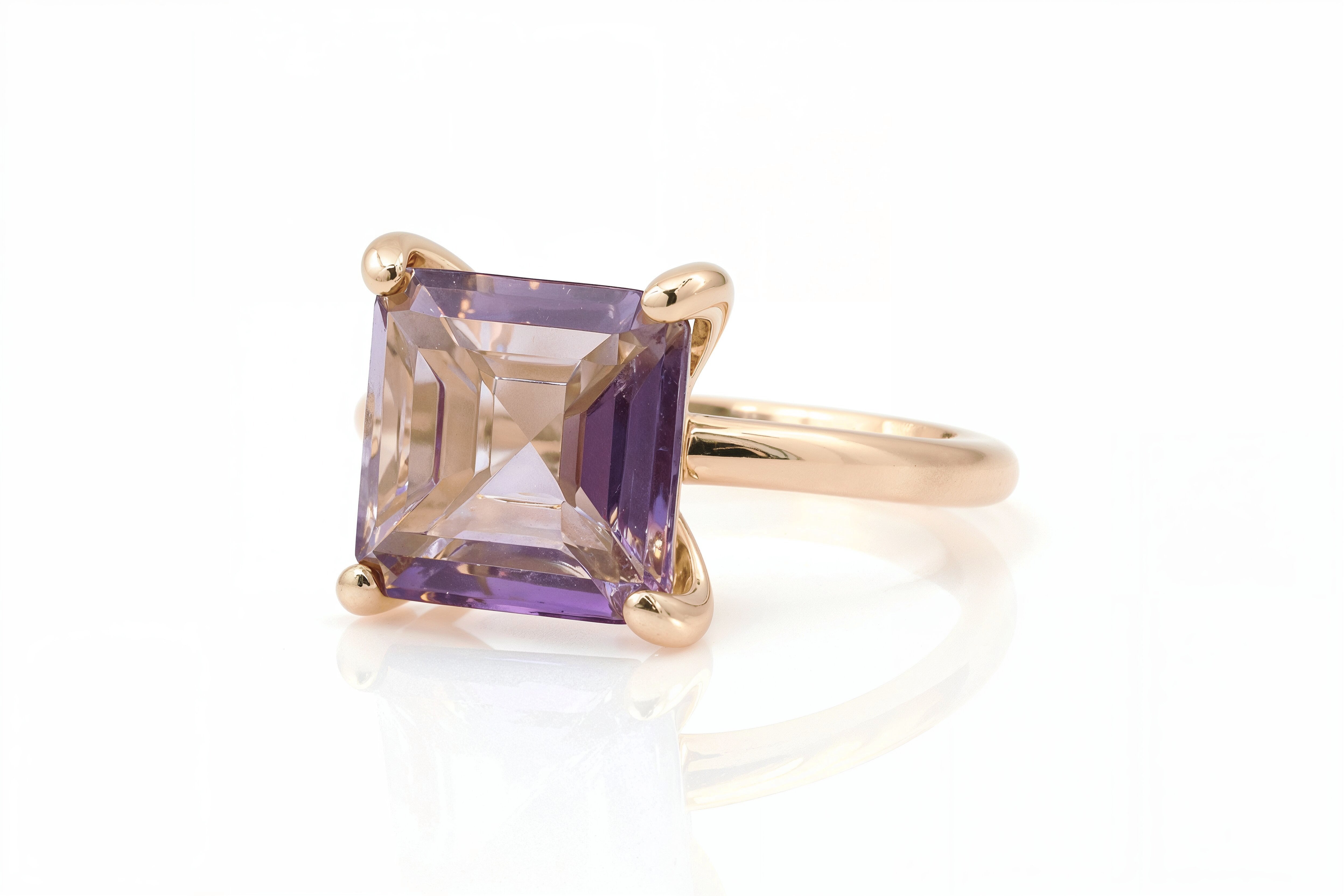 Square Amethyst Solitaire Ring in Rose Gold