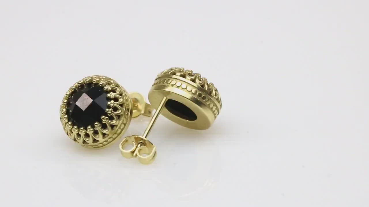 Gorgeous Black Onyx 14k Gold Stud Earrings
