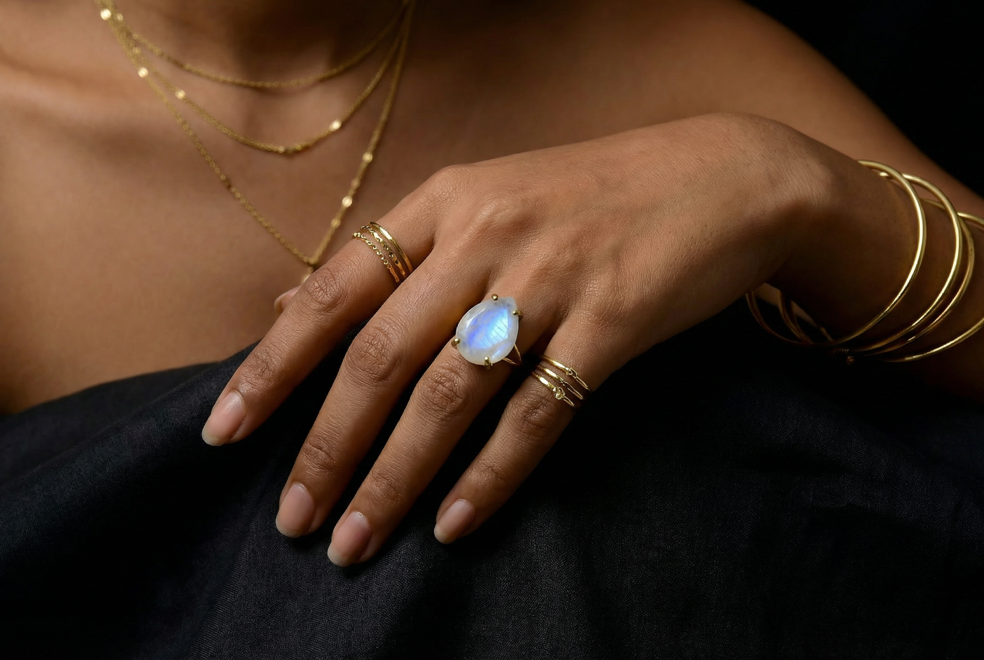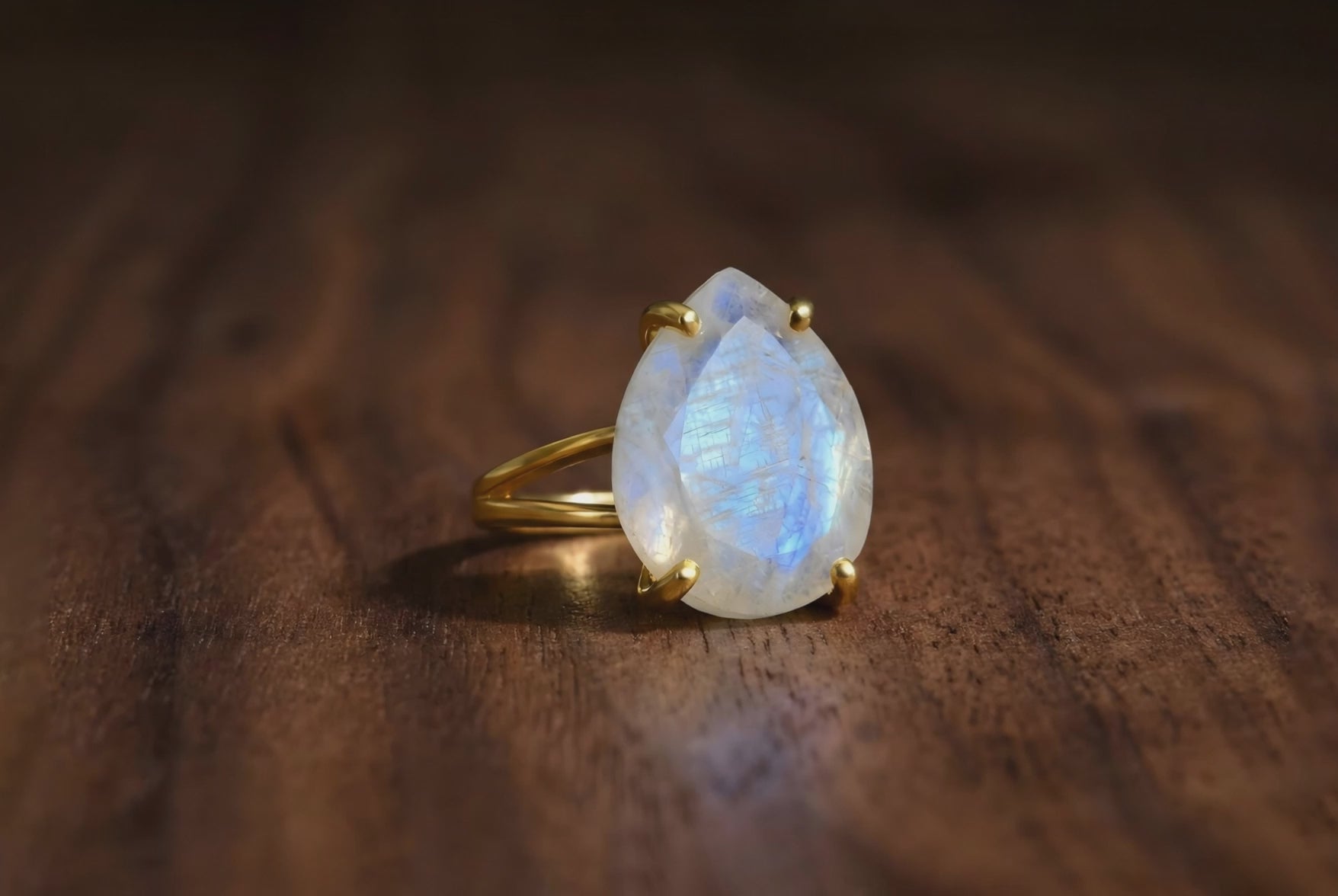 A gold-filled ring featuring a natural Rainbow Moonstone, delicately handcrafted with timeless appeal. This Moonstone fashion ring symbolizes cycles and new beginnings, offering soft beauty with meaningful character. With Anemone, you can also choose another gemstone from our selection of 50 gemstones when adding this item to your shopping cart, allowing you to create a piece that truly reflects your style.