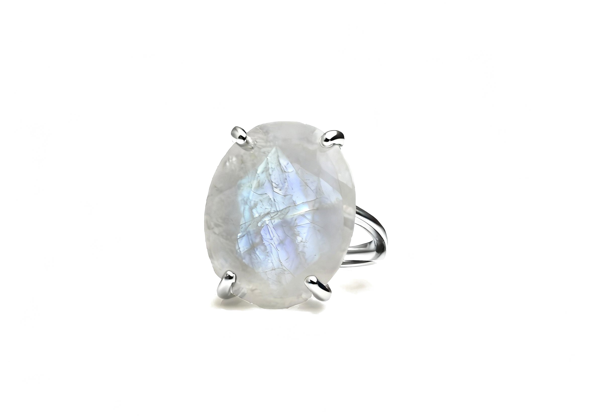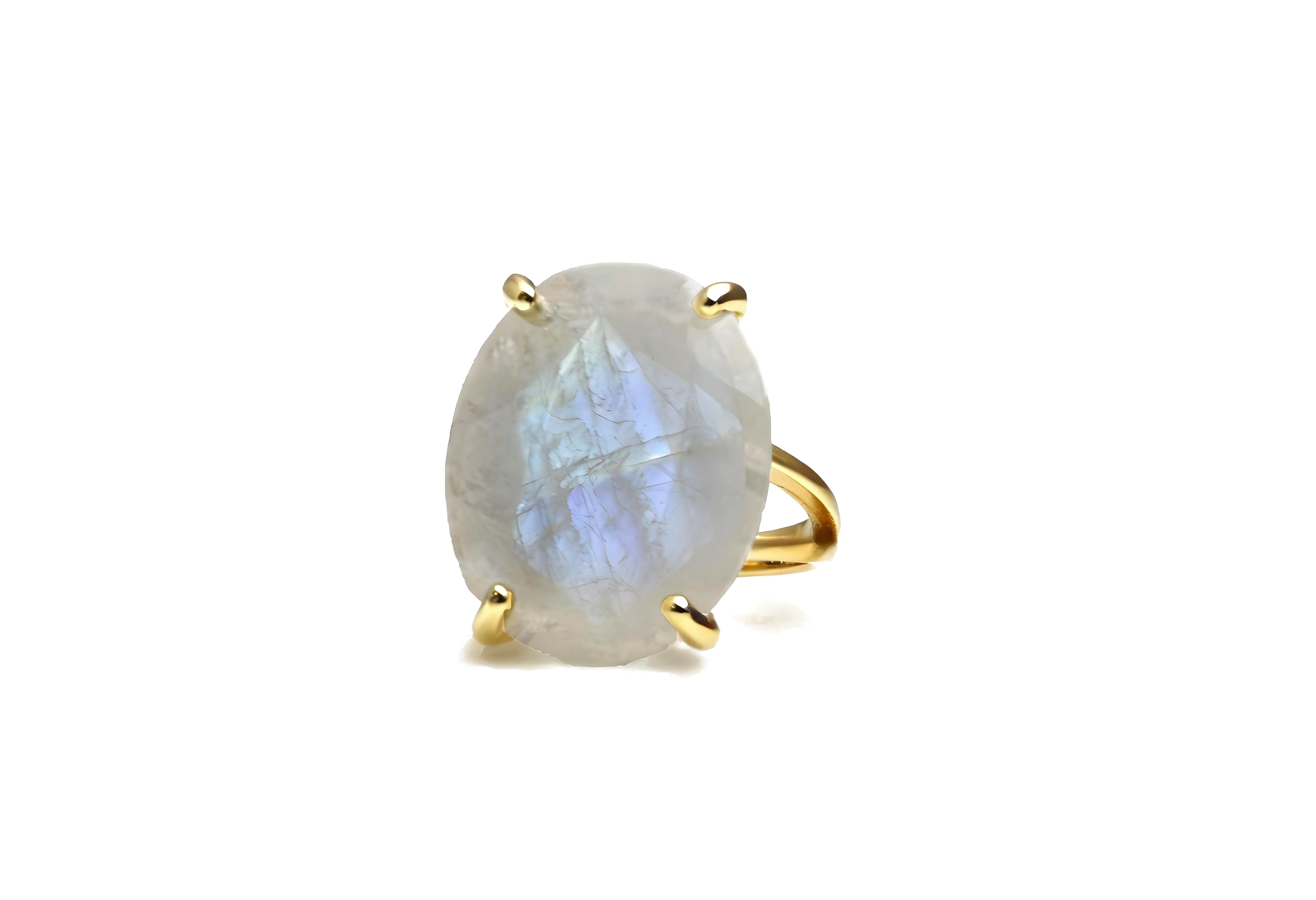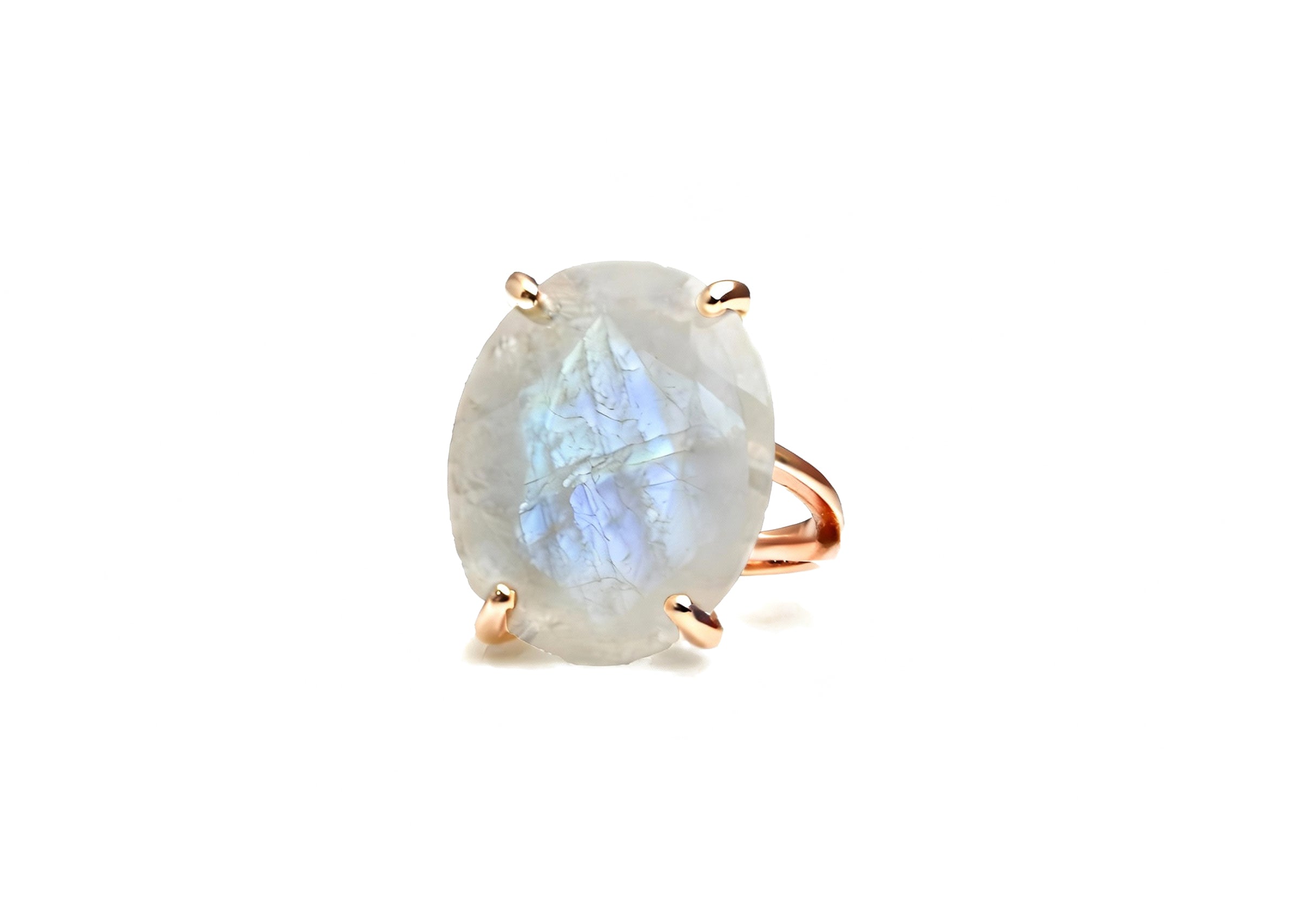 Adorn yourself with true class and sophistication through the mesmerizing beauty of this Moonstone jewelry ring. Delicately crafted in 14k rose gold-filled metal, the stone is highlighted by a simple prong setting and finished with a comfortable double ring band, perfect for daily wear. This oval ring makes a lovely statement piece for a special evening affair and also serves as exciting birthstone jewelry for women—ideal to surprise a loved one with something meaningful and radiant.