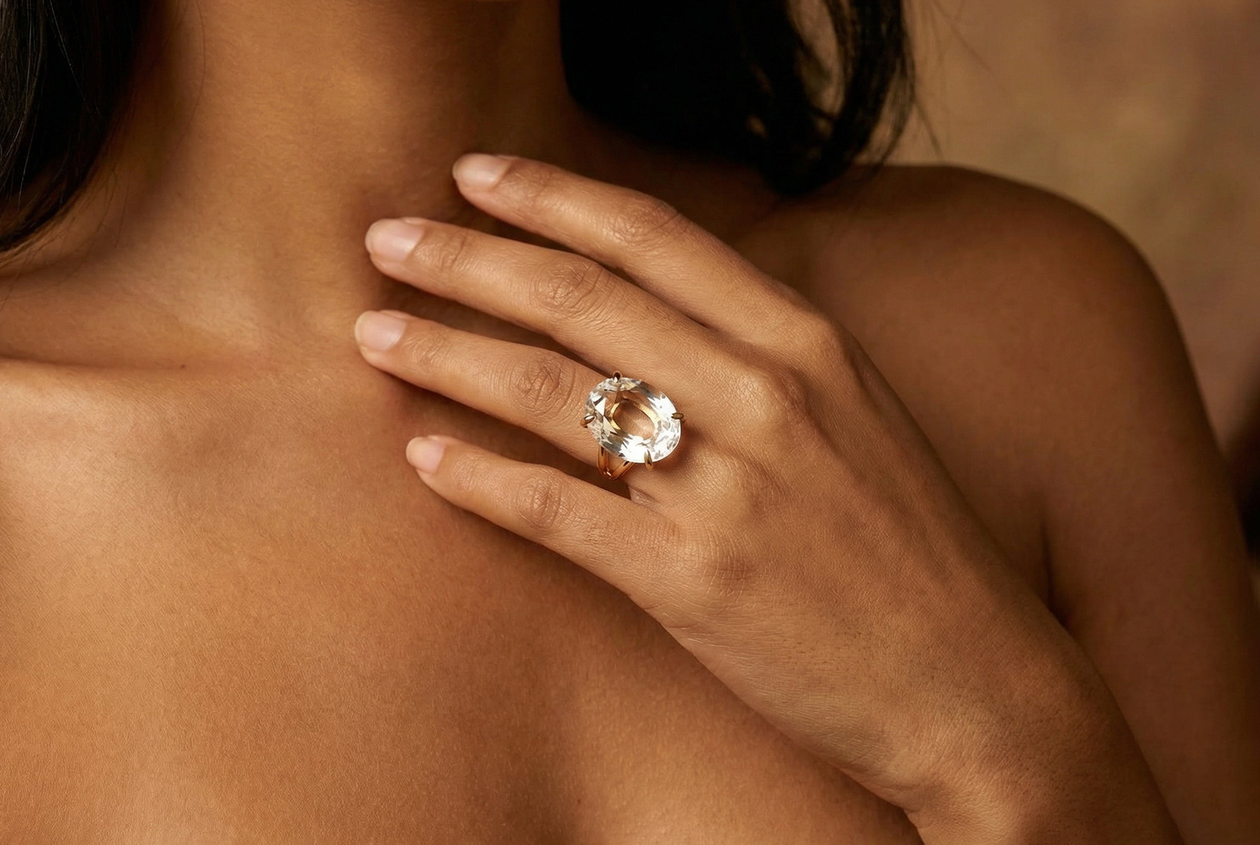 This eye-catching solitaire ring features a lovely Crystal Quartz set on a 14k gold-filled double band. An elegant Quartz ring that beautifully completes both your daytime and evening looks. Wear it to stun on a special date or gift it to bring joy to someone you love—this charming piece is made to impress.