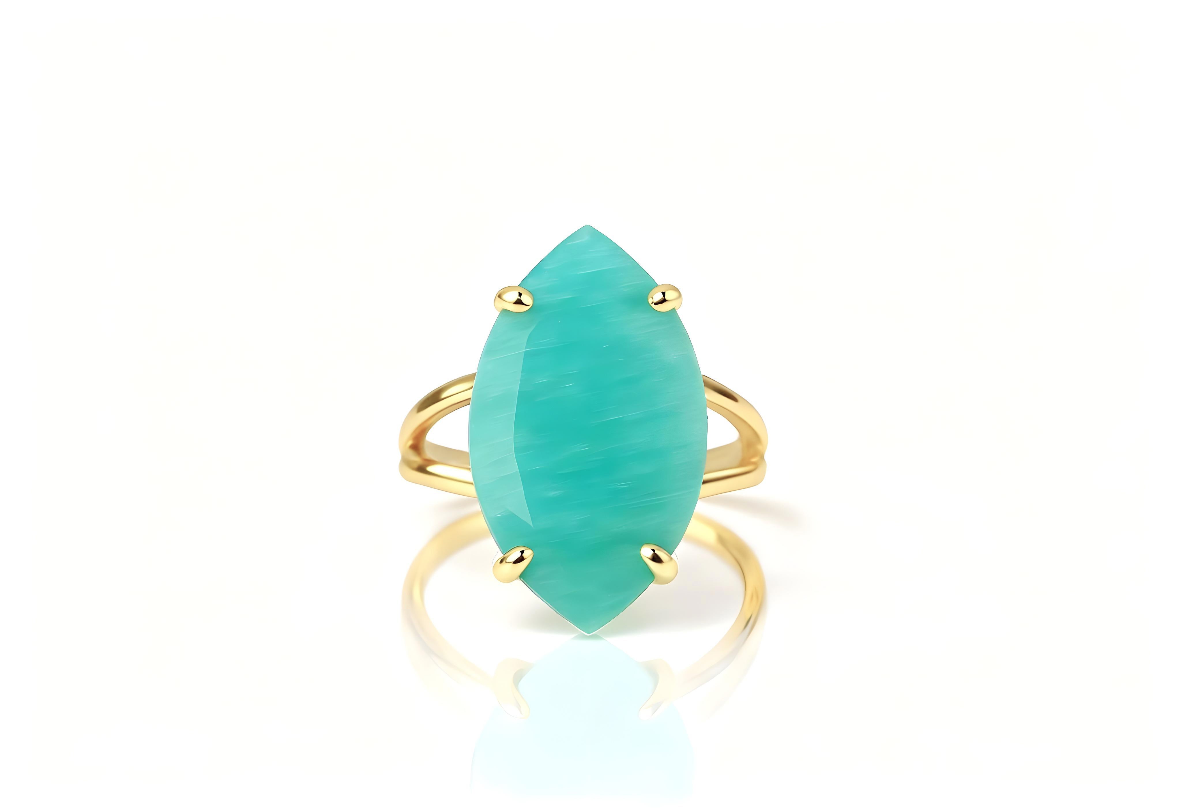 Solitaire Marquise Amazonite Ring in 14k Gold