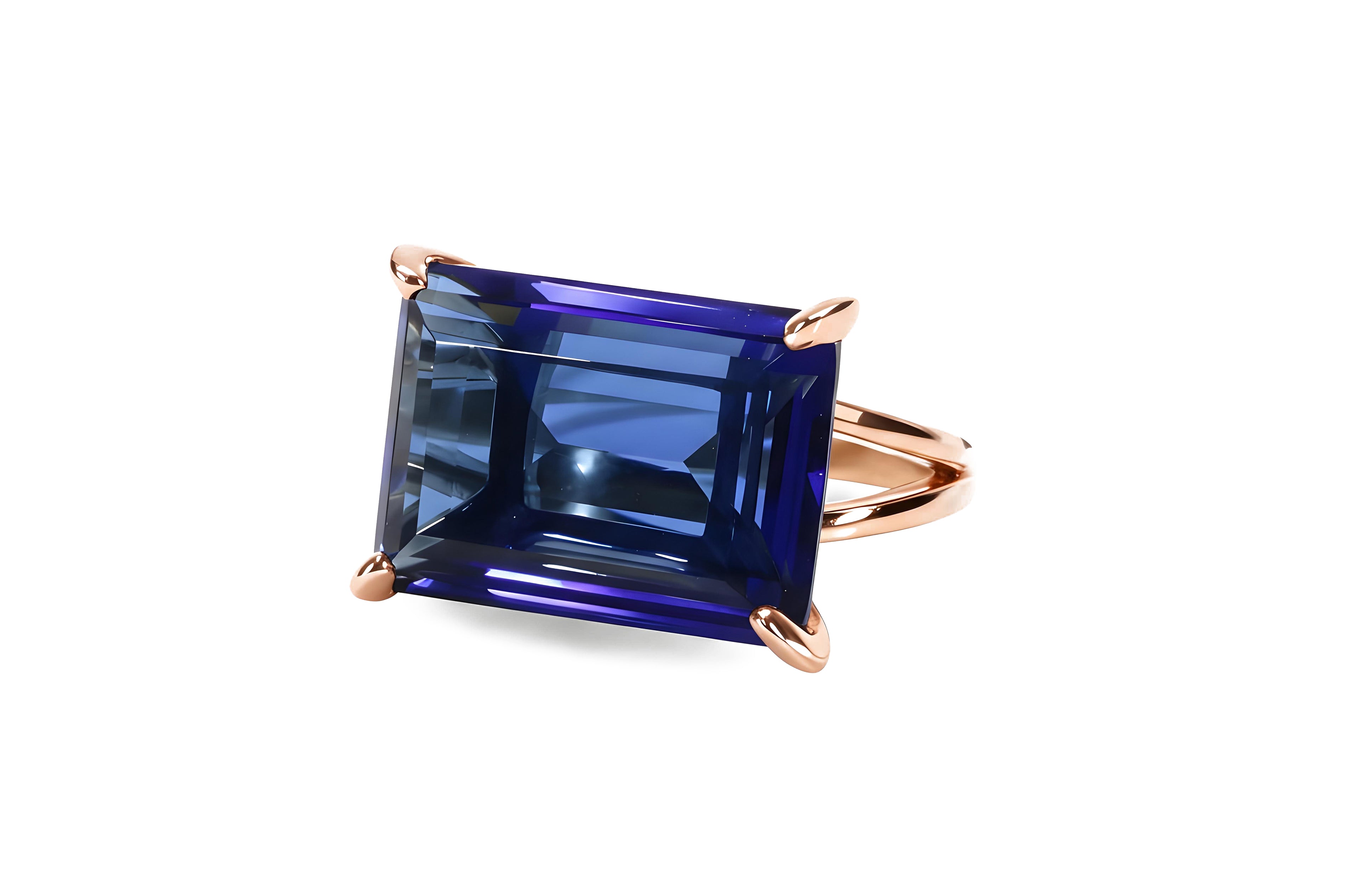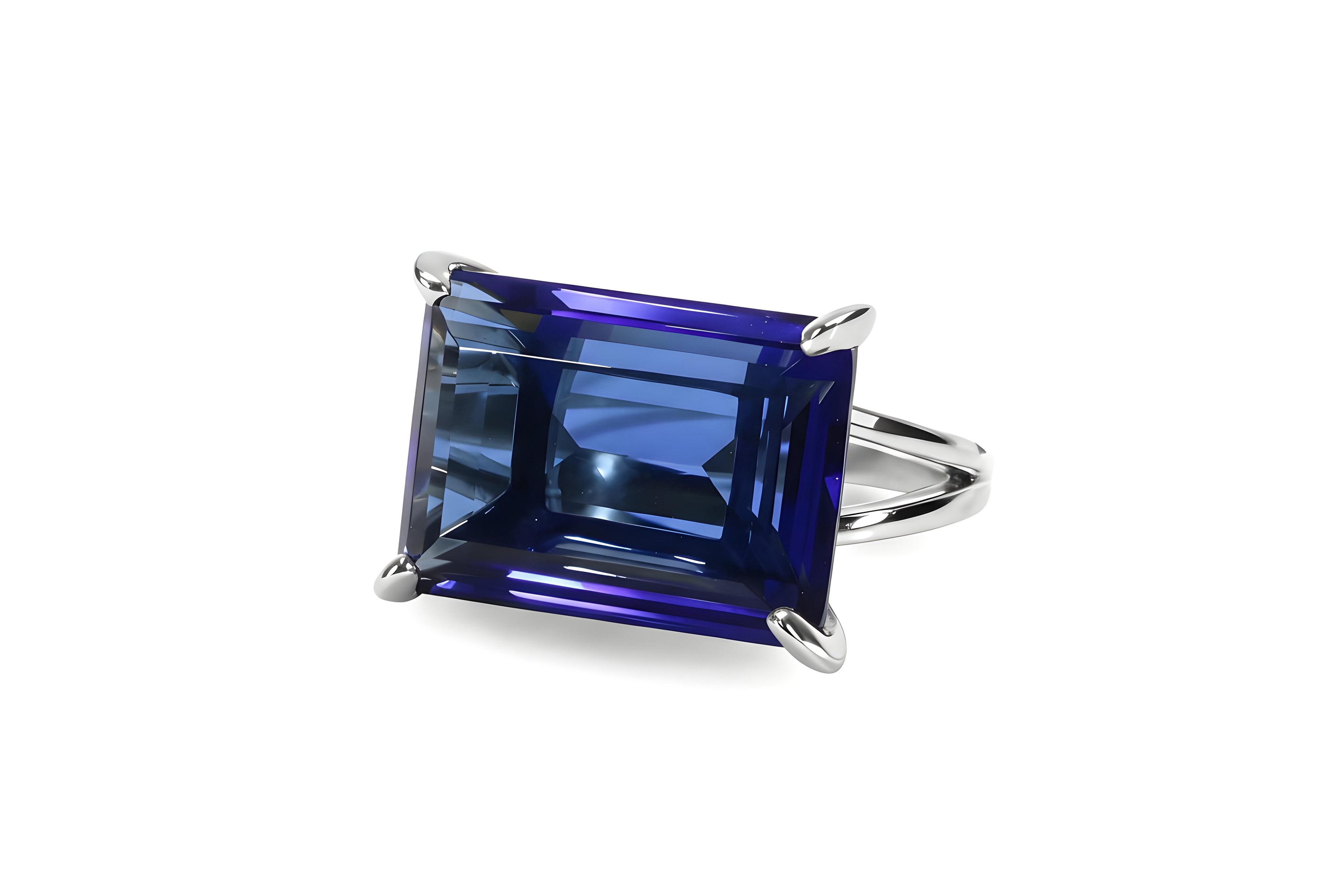- Emerald cut blue gemstone