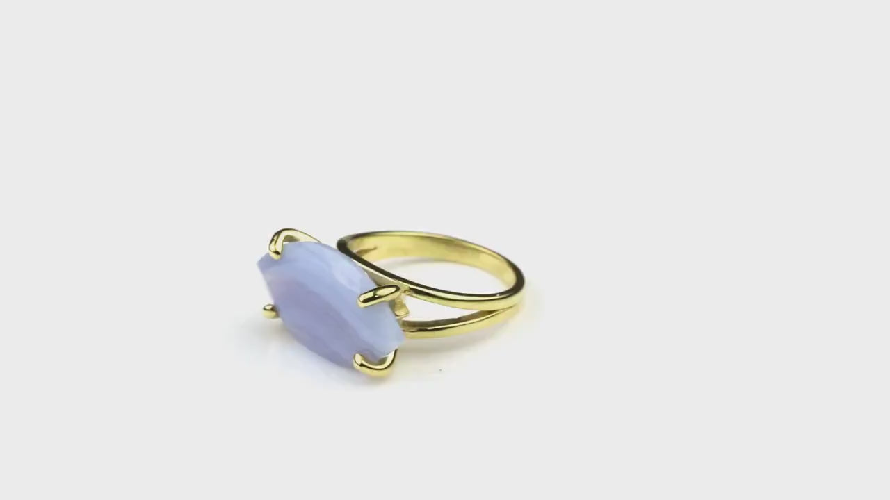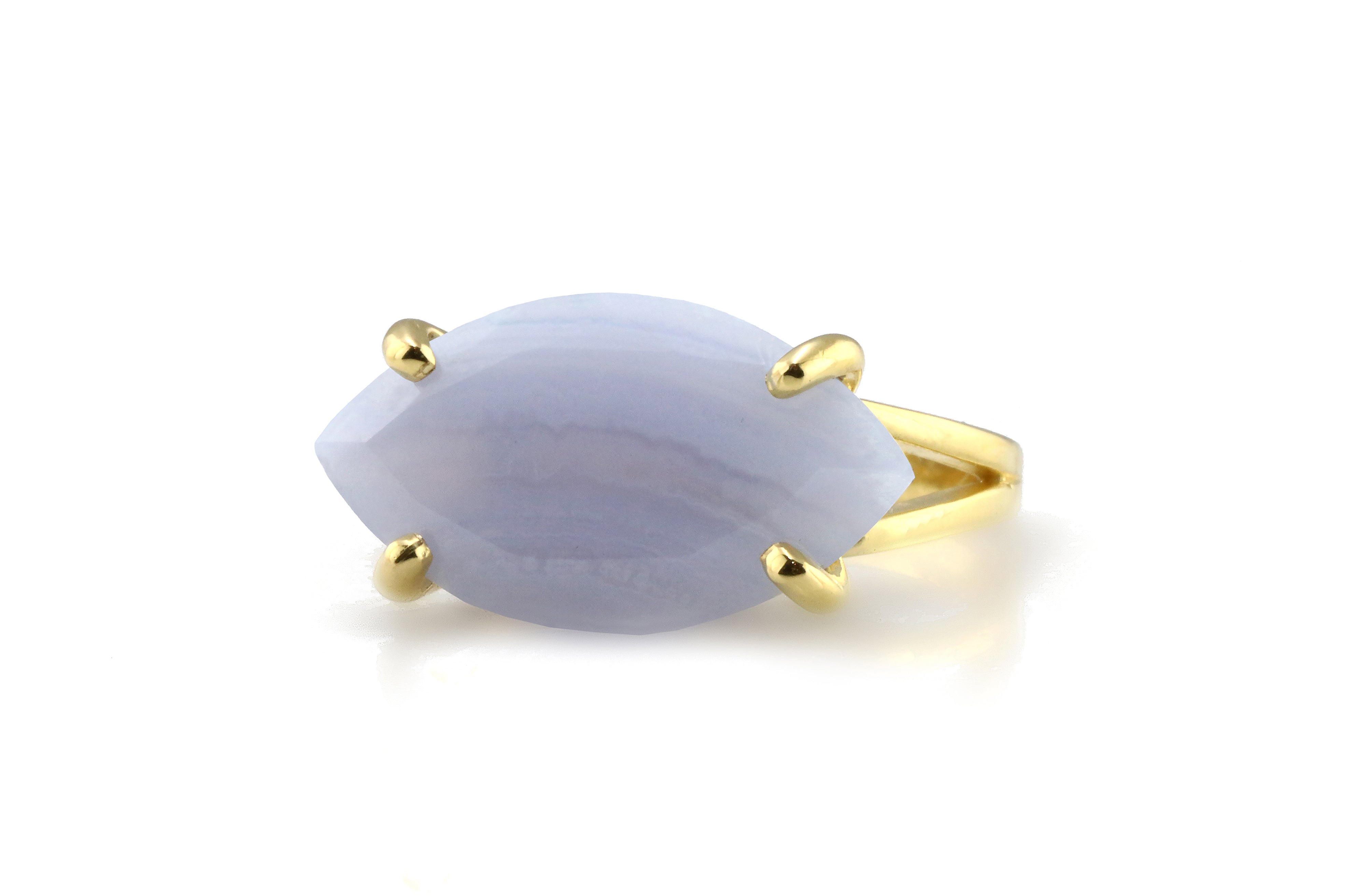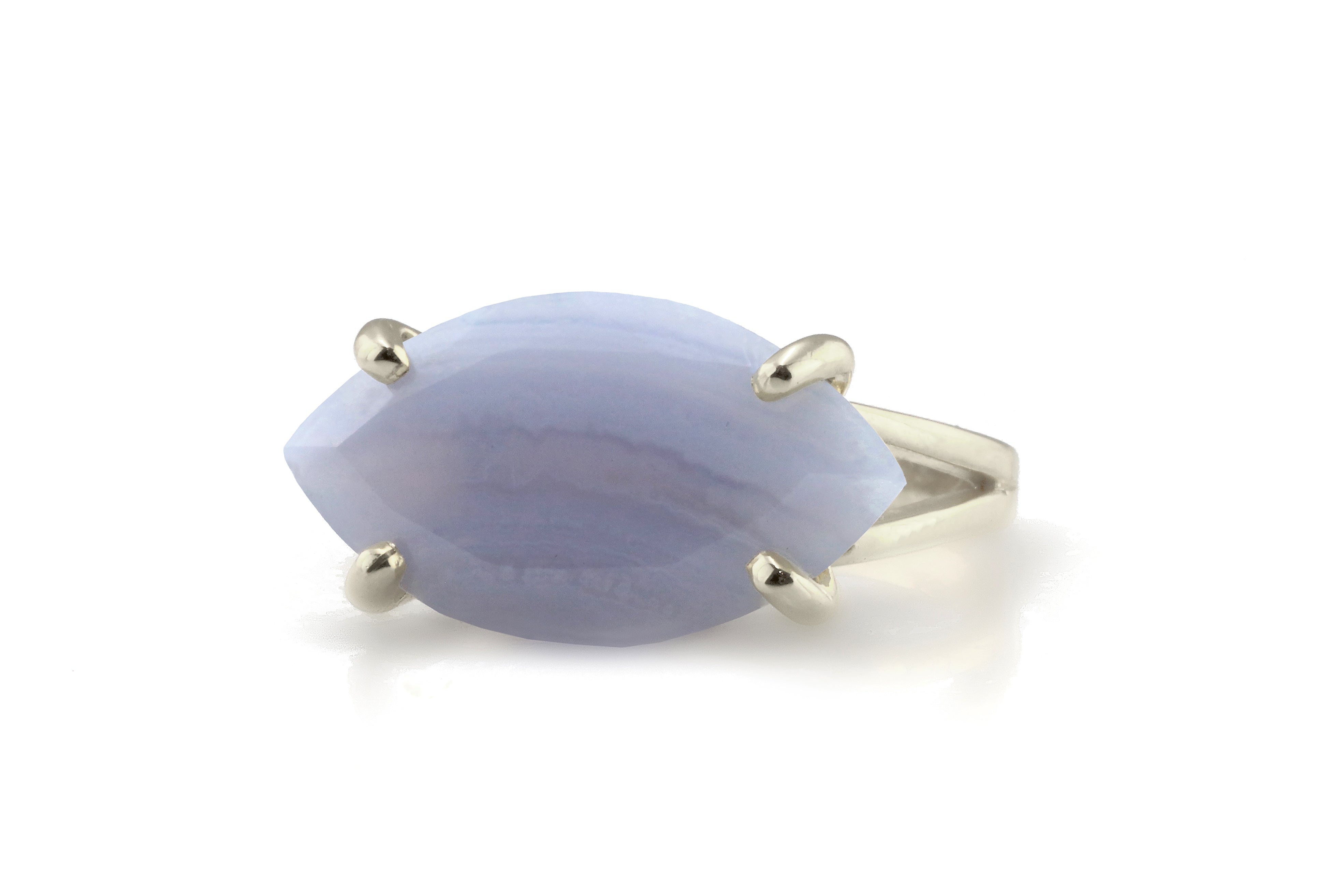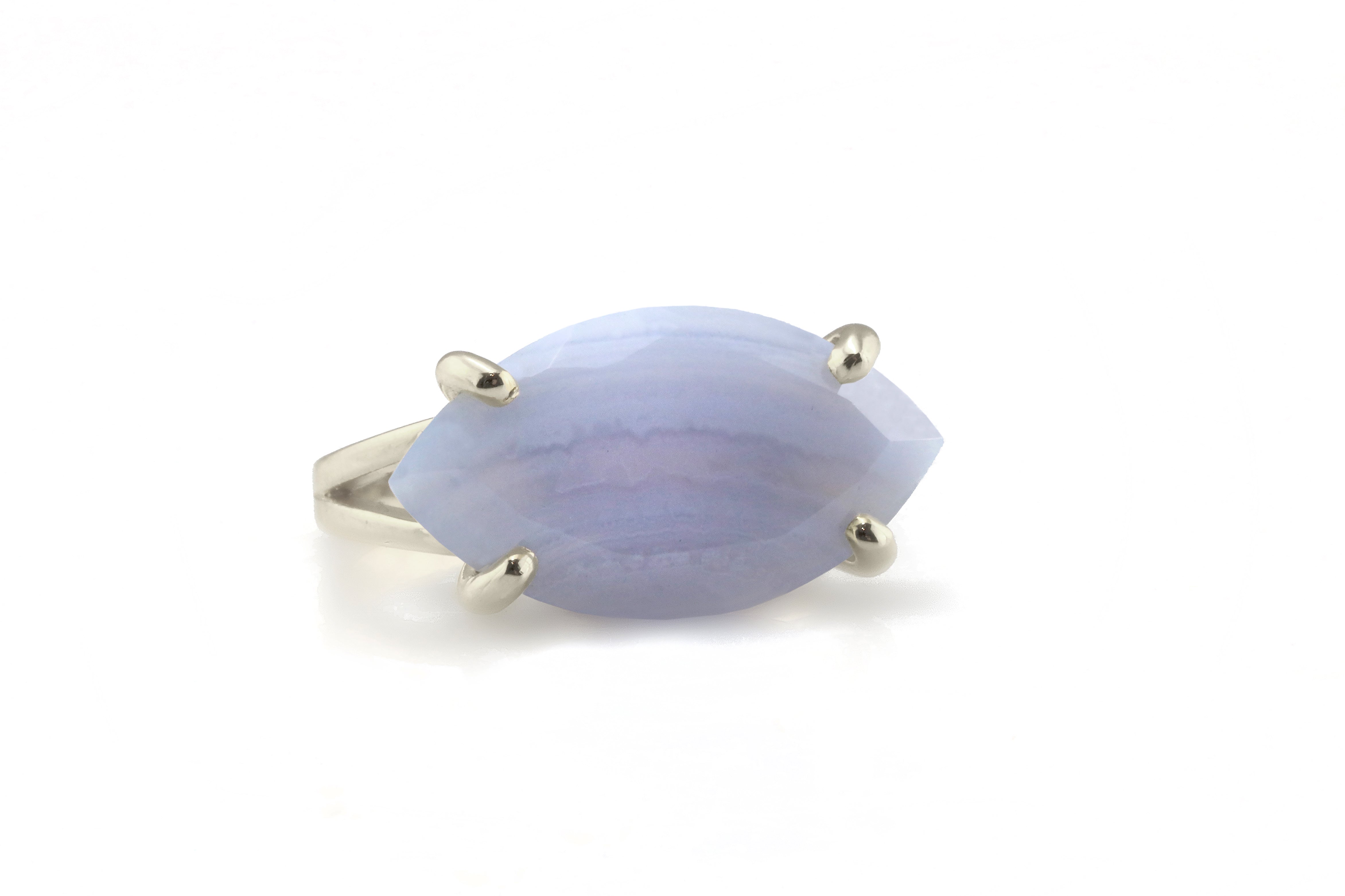 This blue lace agate ring features a large marquise-cut natural gemstone set in a polished sterling silver band. Known for its calming bands and soft blue tones, lace agate is cherished as a stone of balance and clarity. With its bold silhouette and 925 silver setting, this ring is both elegant and versatile. Handmade with care, it’s a meaningful natural gem ring, perfect as a statement piece or as a thoughtful gift for mom.