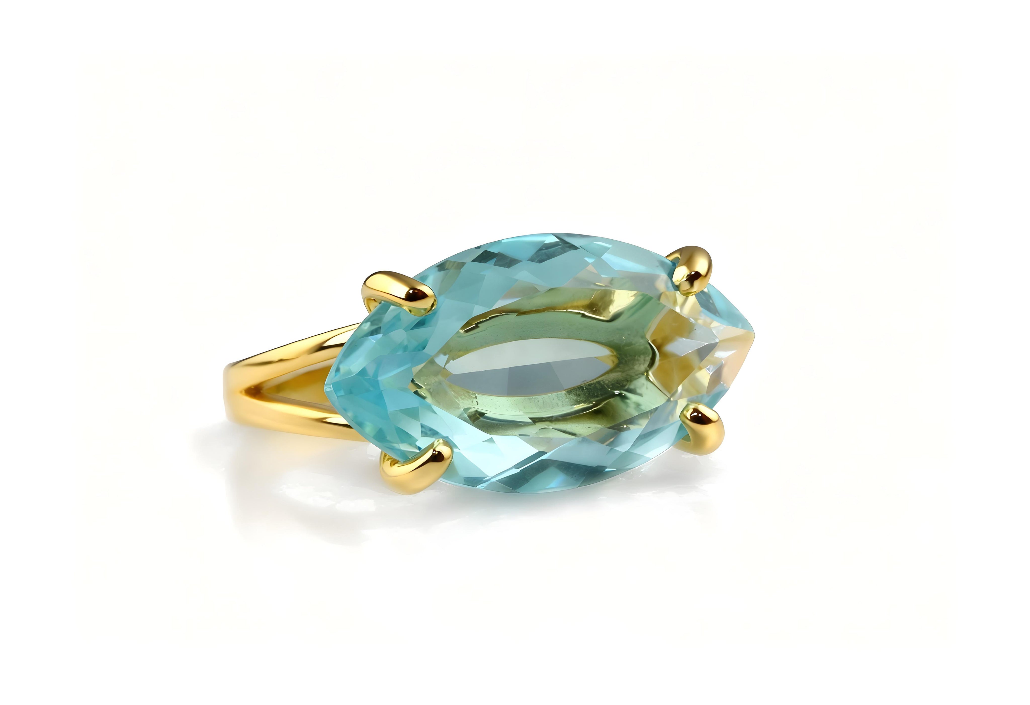 This exquisite marquise blue topaz ring is crafted in 14k gold filled metal and set with a radiant faceted gemstone that captures light from every angle. Its elongated silhouette enhances elegance and adds a vibrant touch of sky blue shimmer to any look. A perfect statement piece for women who appreciate timeless, handcrafted jewelry.