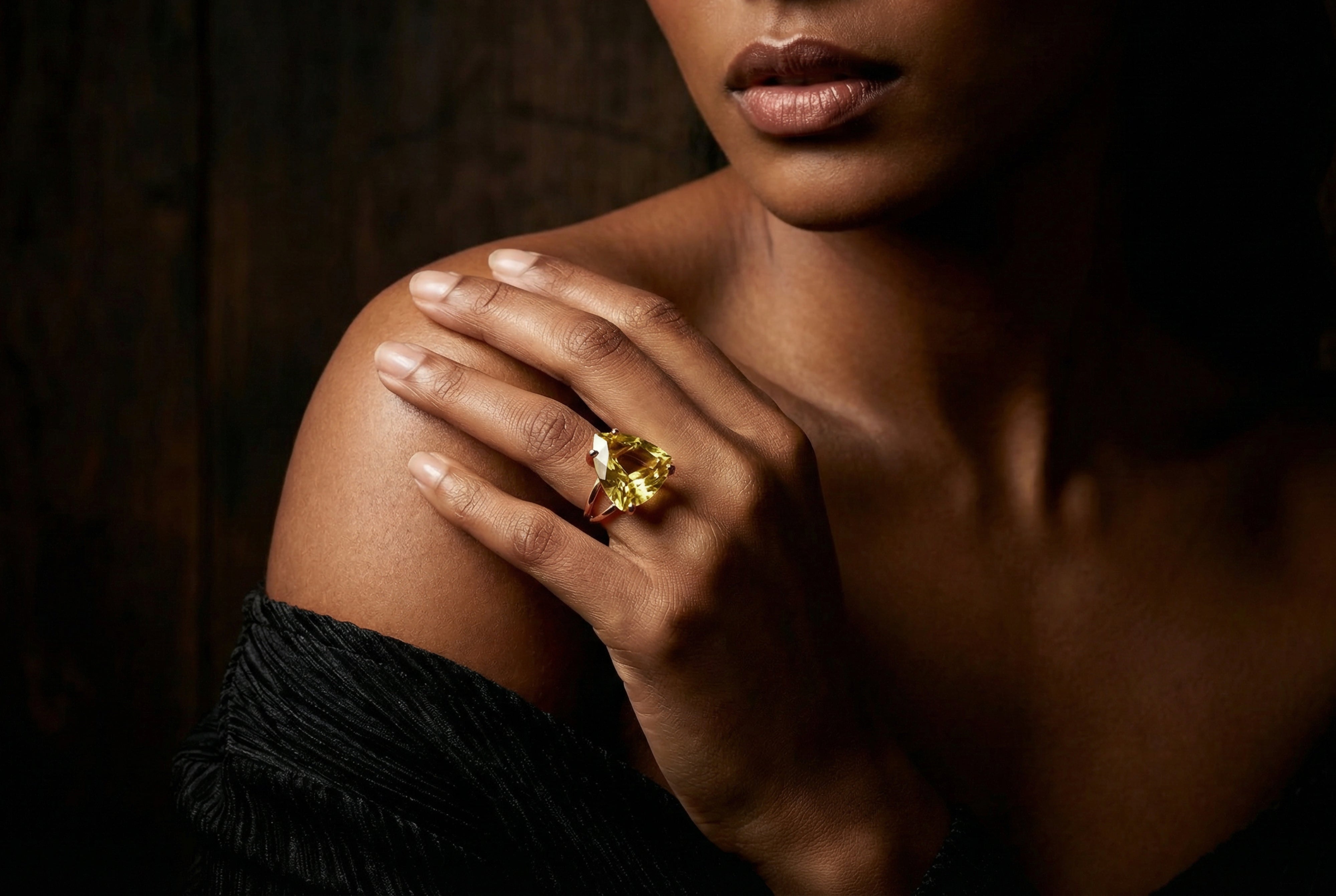 Statement Lemon Quartz Trillion Cocktail Ring