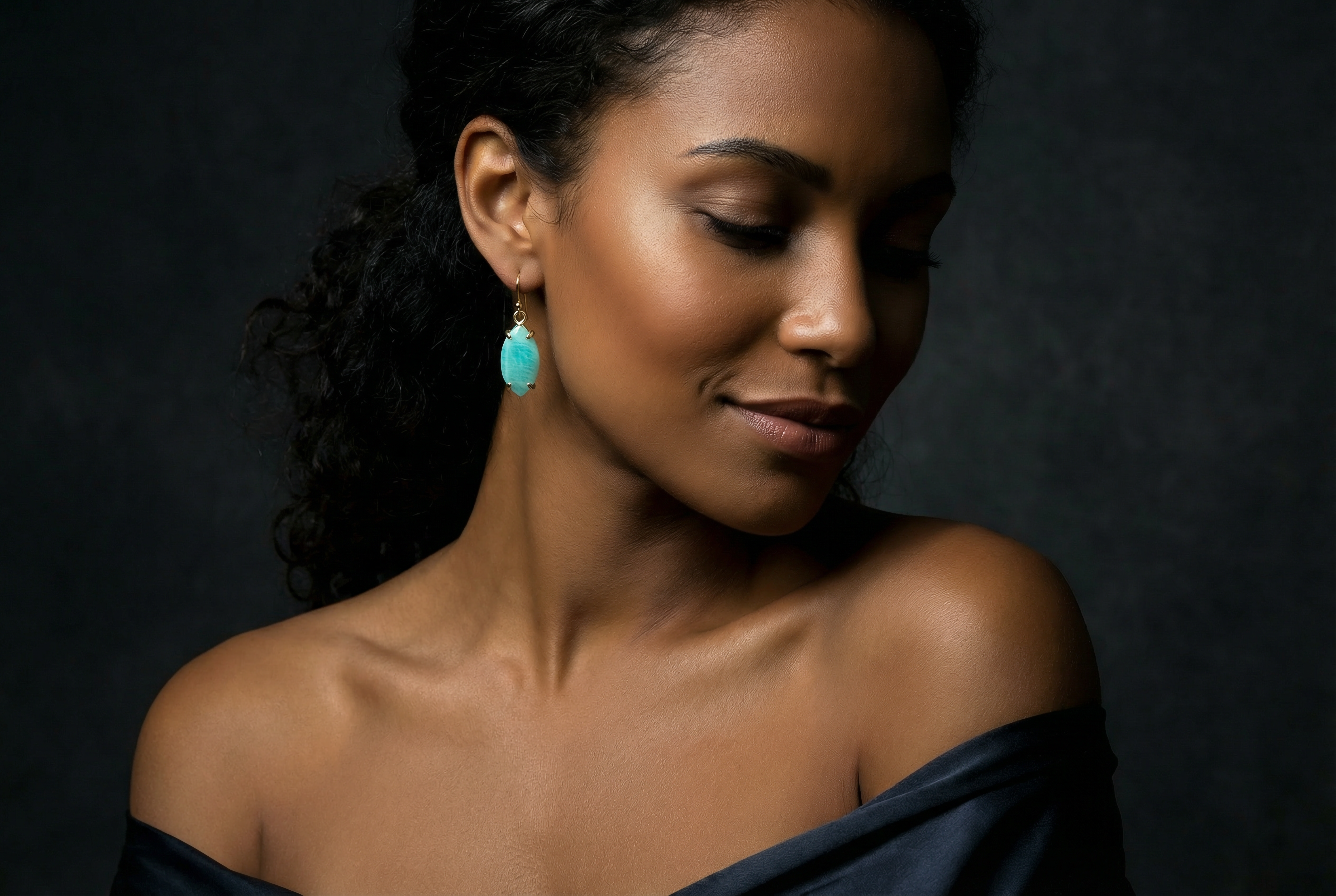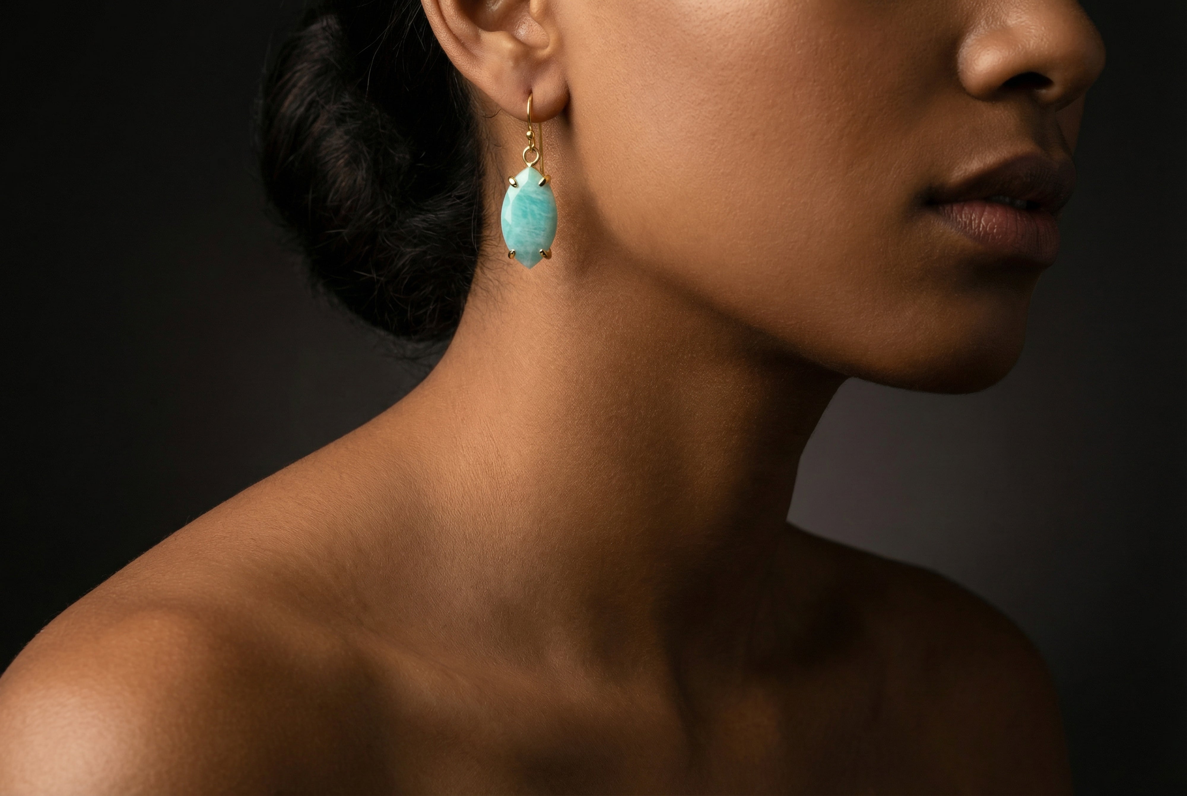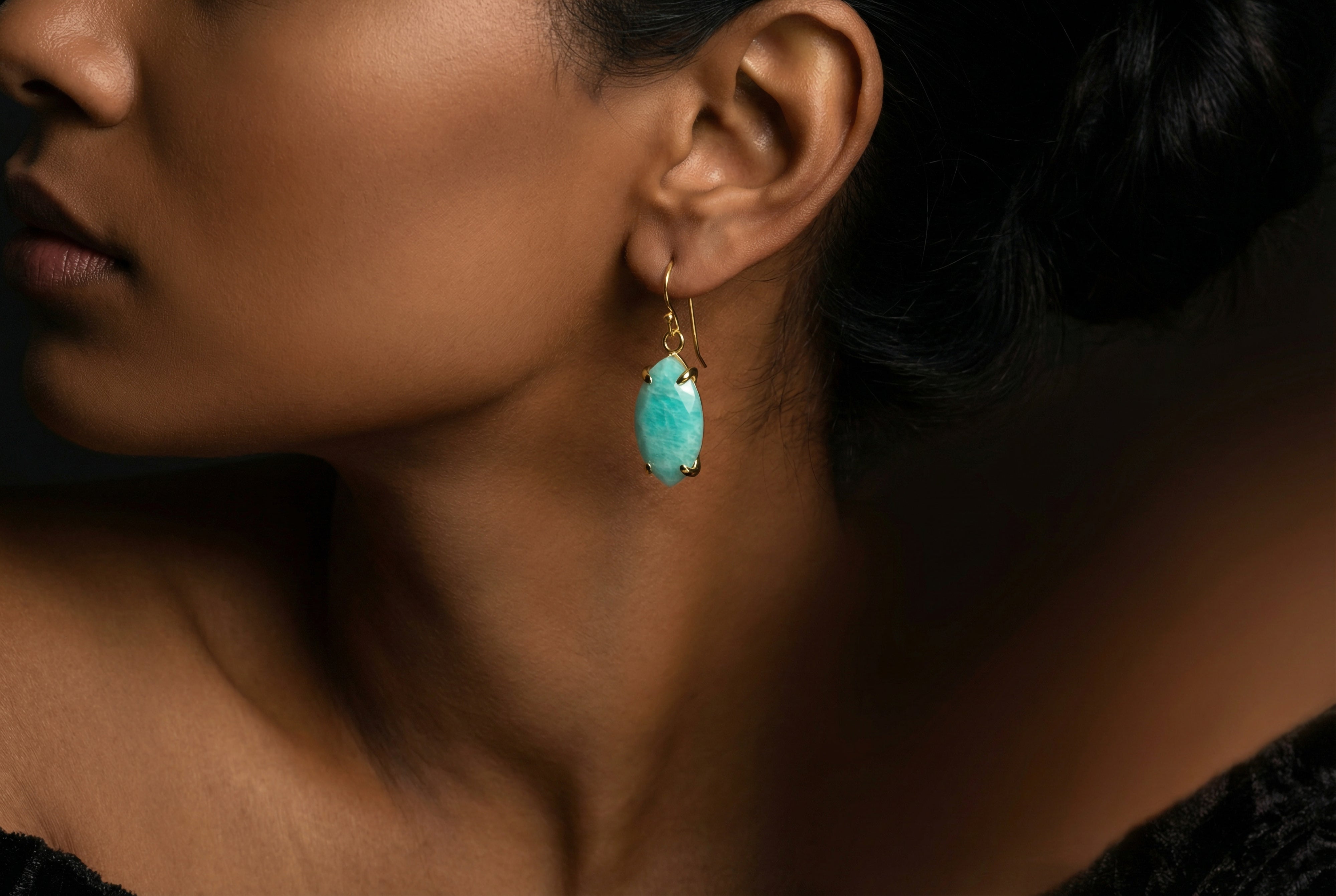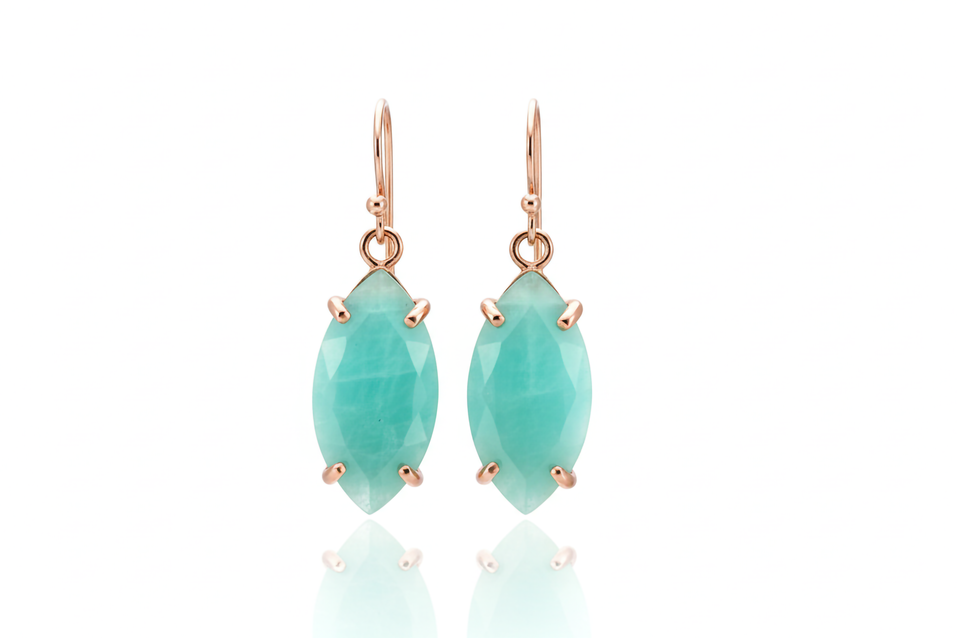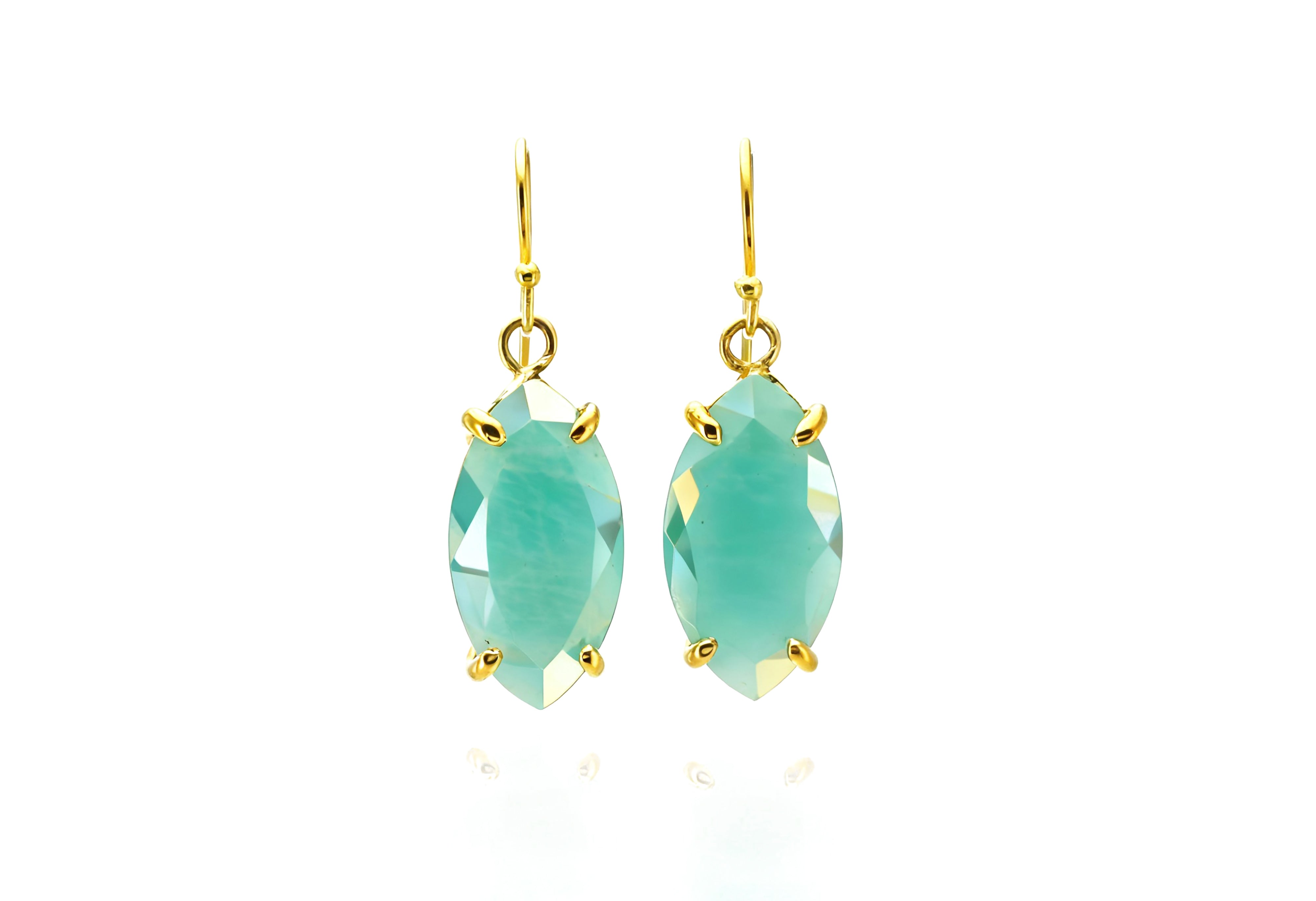 Marquise Cut Amazonite Dangle Gold Earrings
