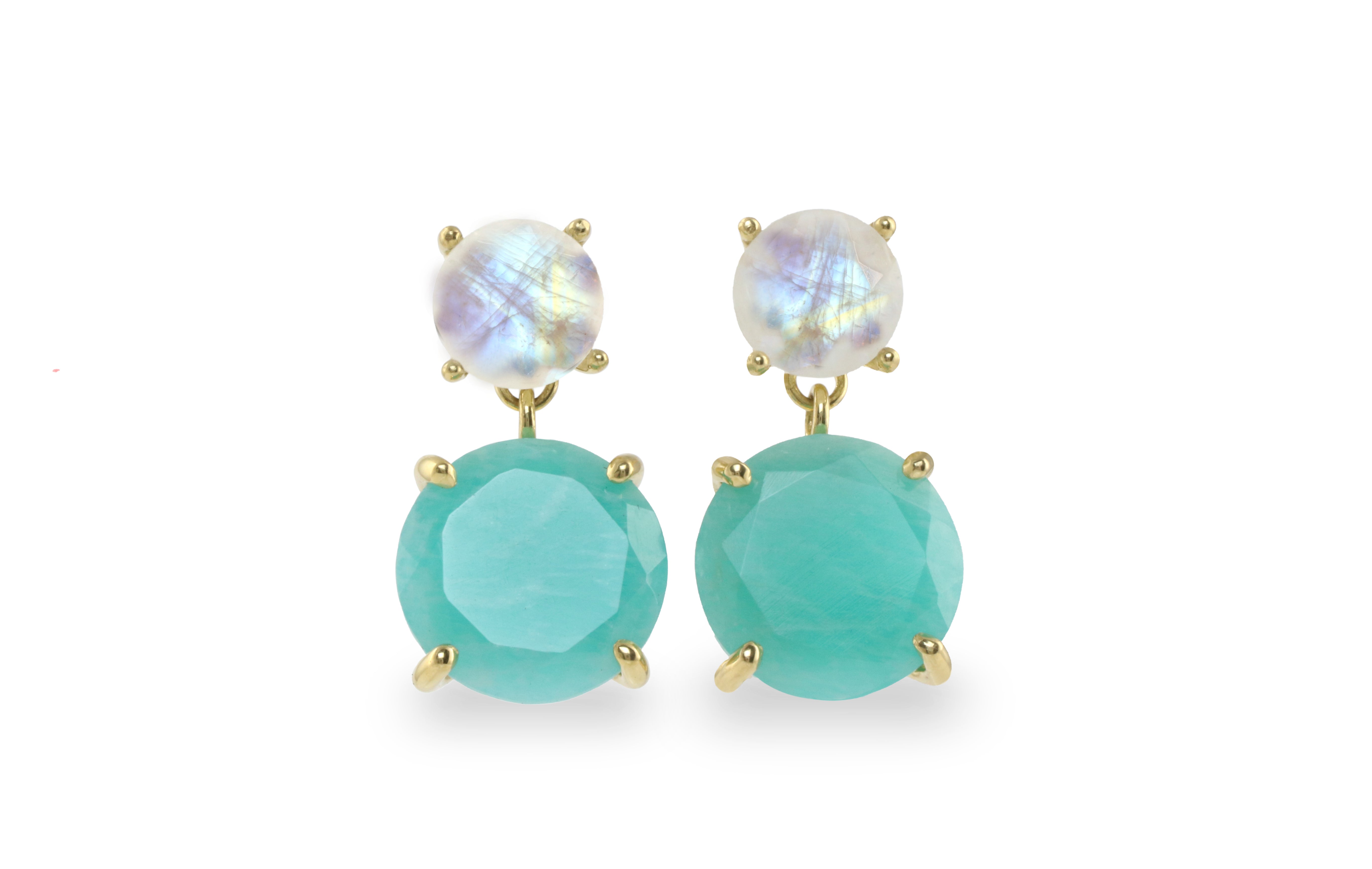 Semiprecious Amazonite and Moonstone Earrings in Gold