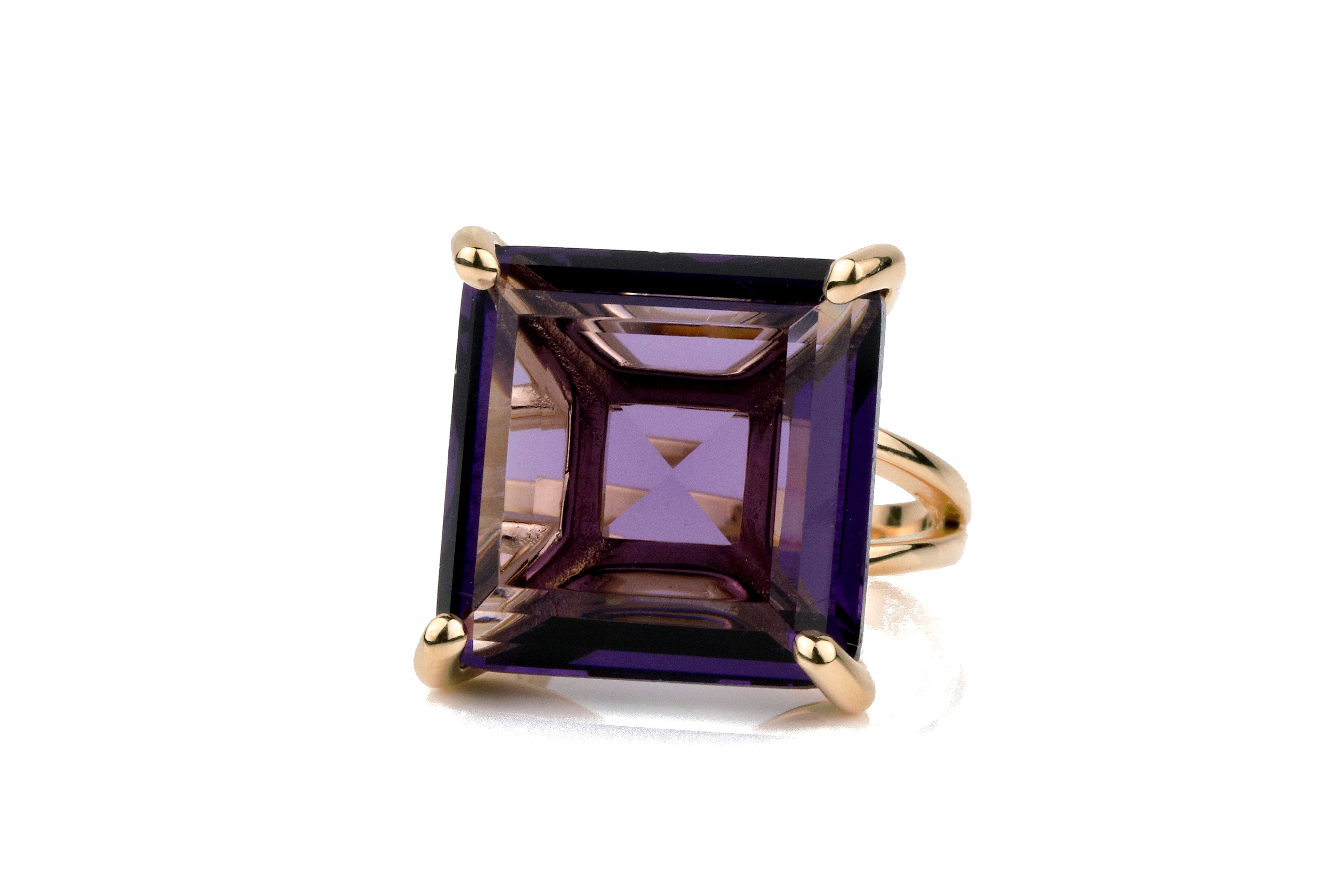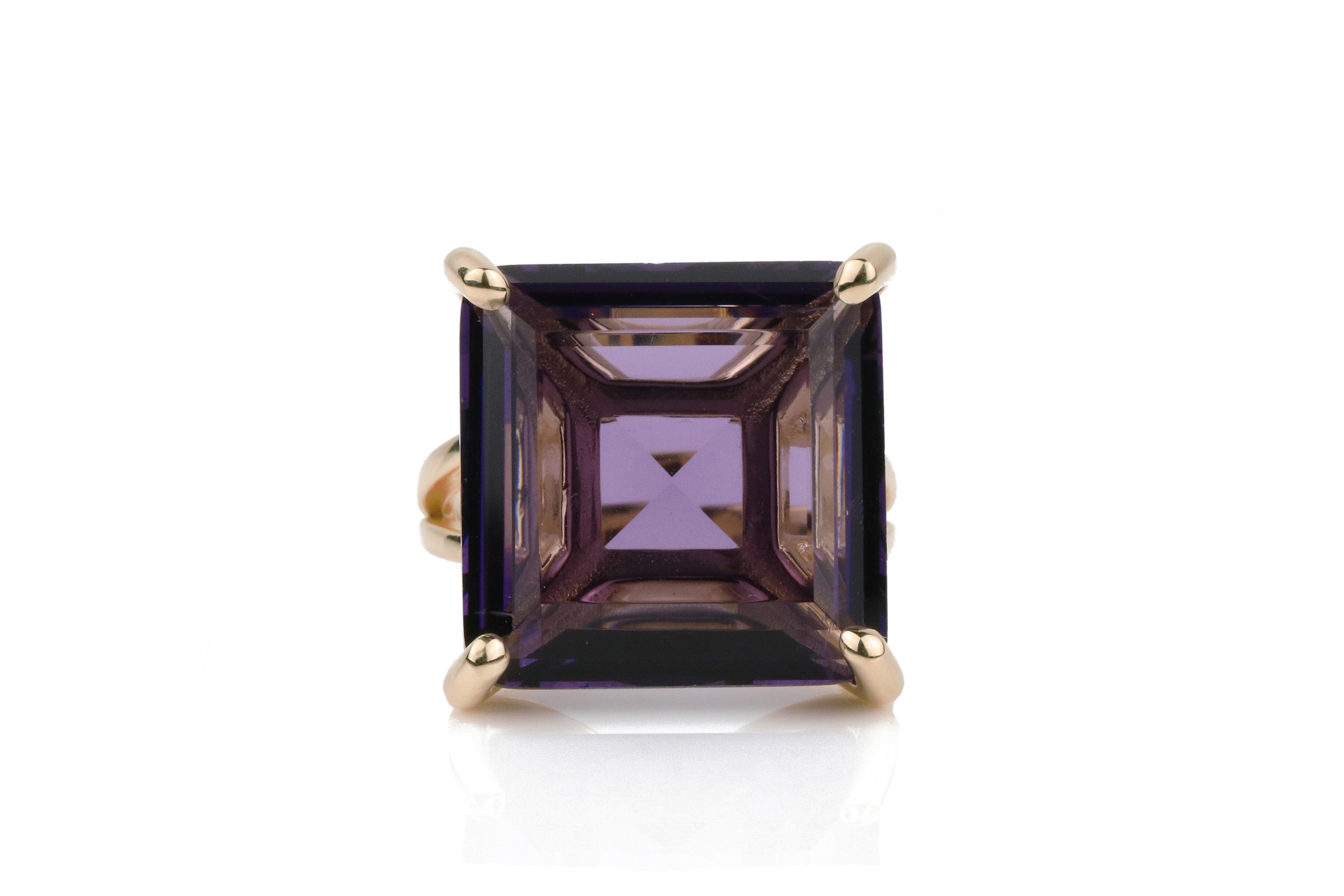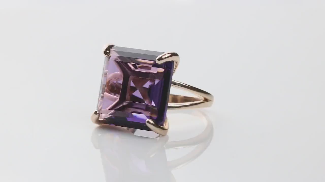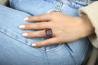 This rose gold filled ring features a captivating square-cut amethyst with a radiant purple tone. The warm rose gold hue complements the gemstone’s brilliance, making it a striking choice for everyday wear or gifting. Handcrafted with precision, it’s perfect as a February birthstone, promise, or statement ring.
