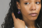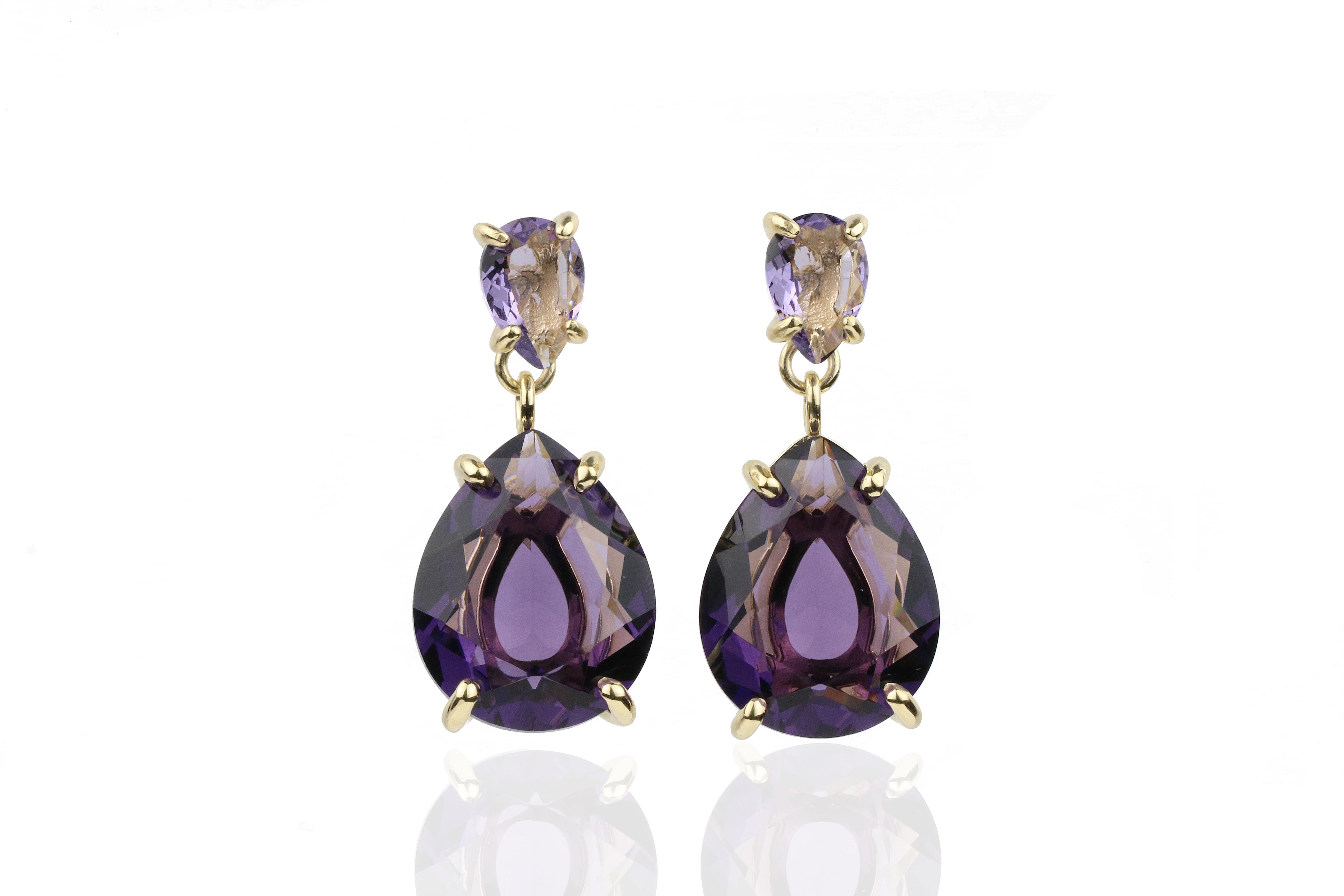 A prettily crafted pair of long dangle earrings that showcase glistening Amethyst stones. A lovely pair of gold earrings to embellish your style for that classy and vibrant touch. These gemstone earrings have a customizable finish that you can choose from.