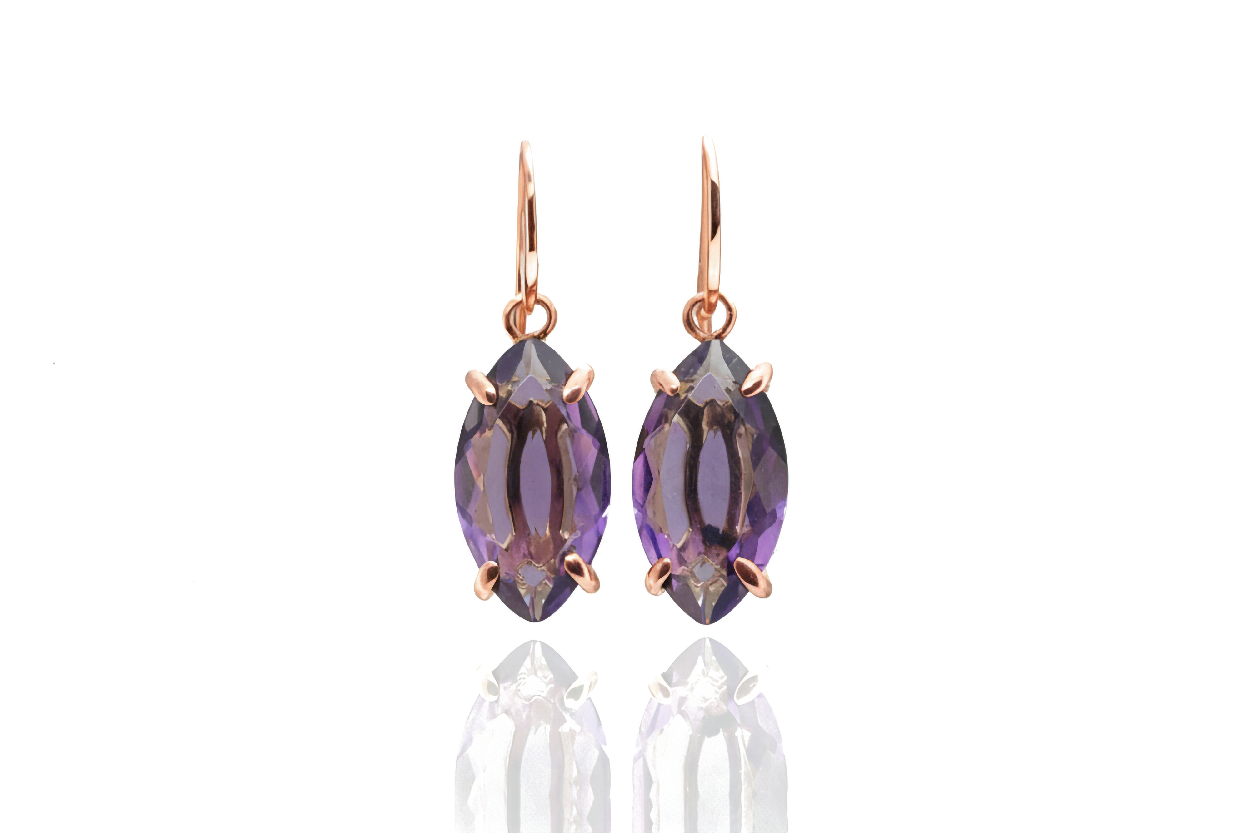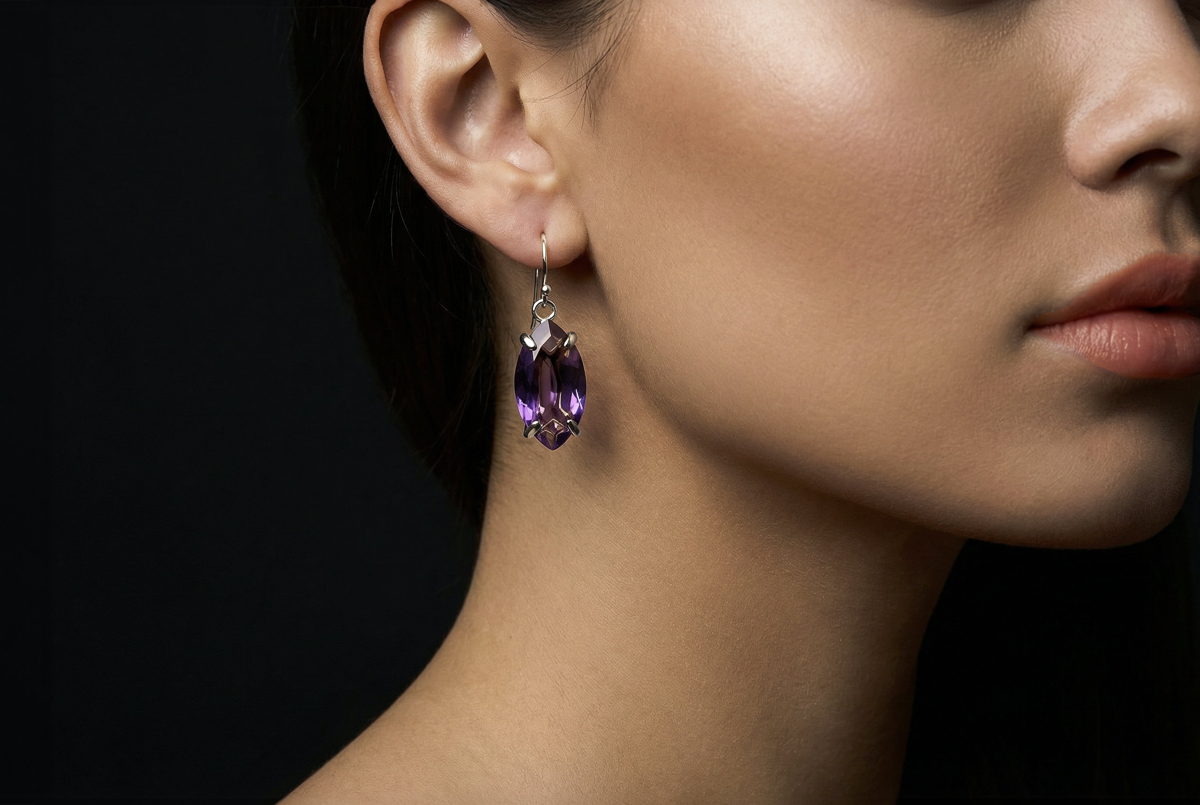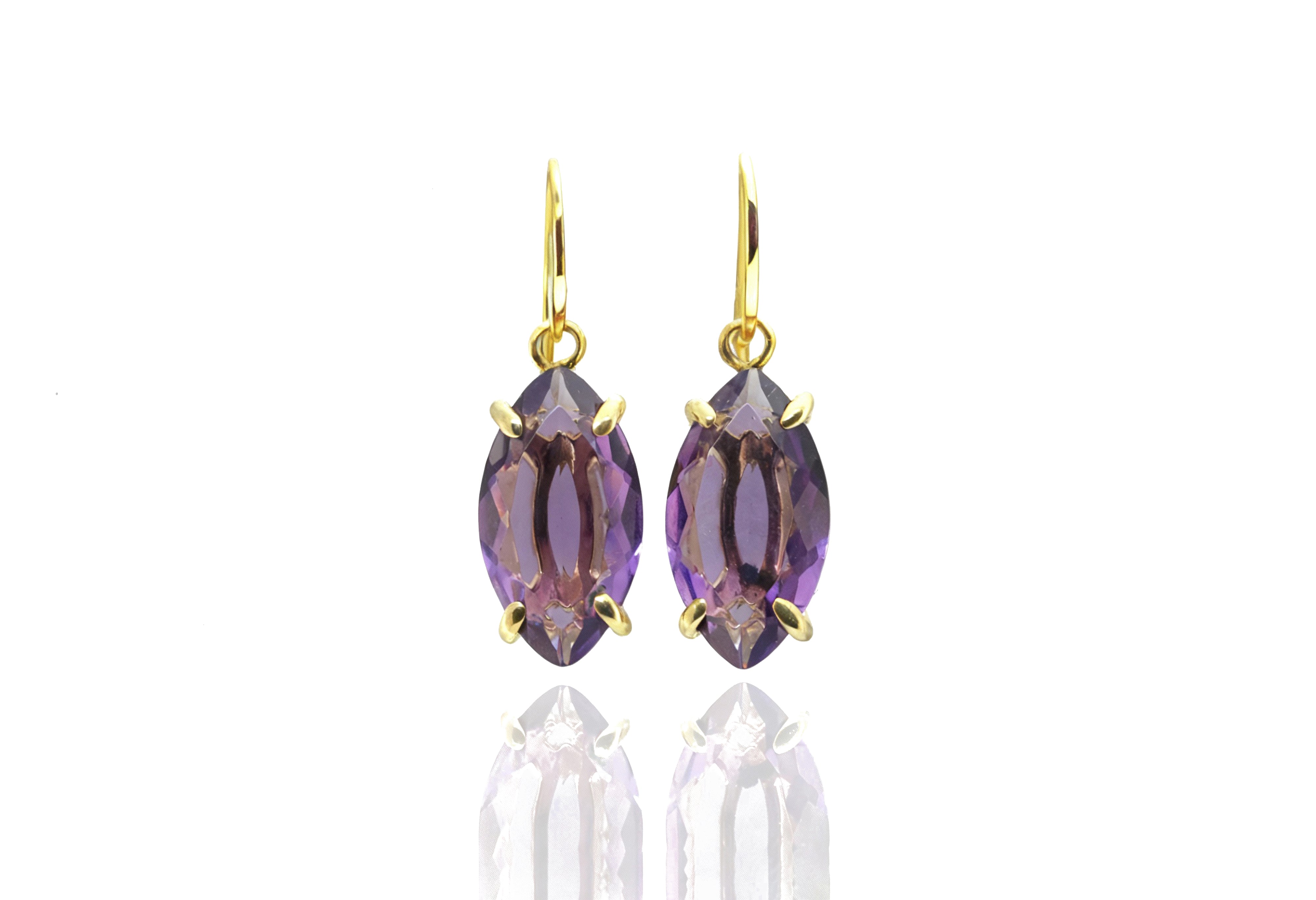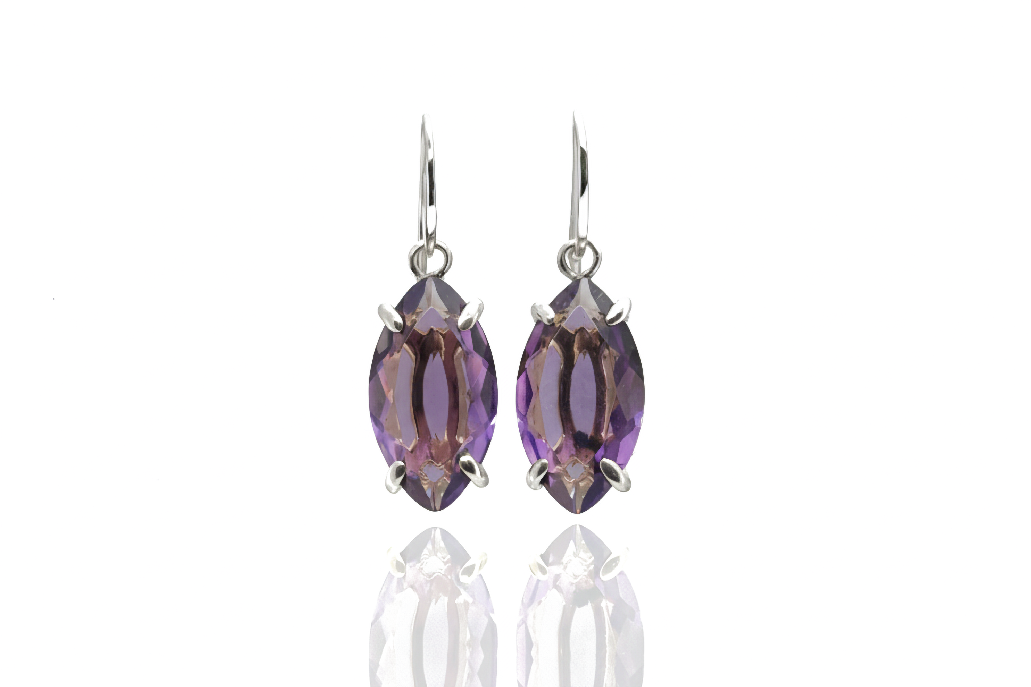 • Long marquise cut Amethyst gemstone earrings