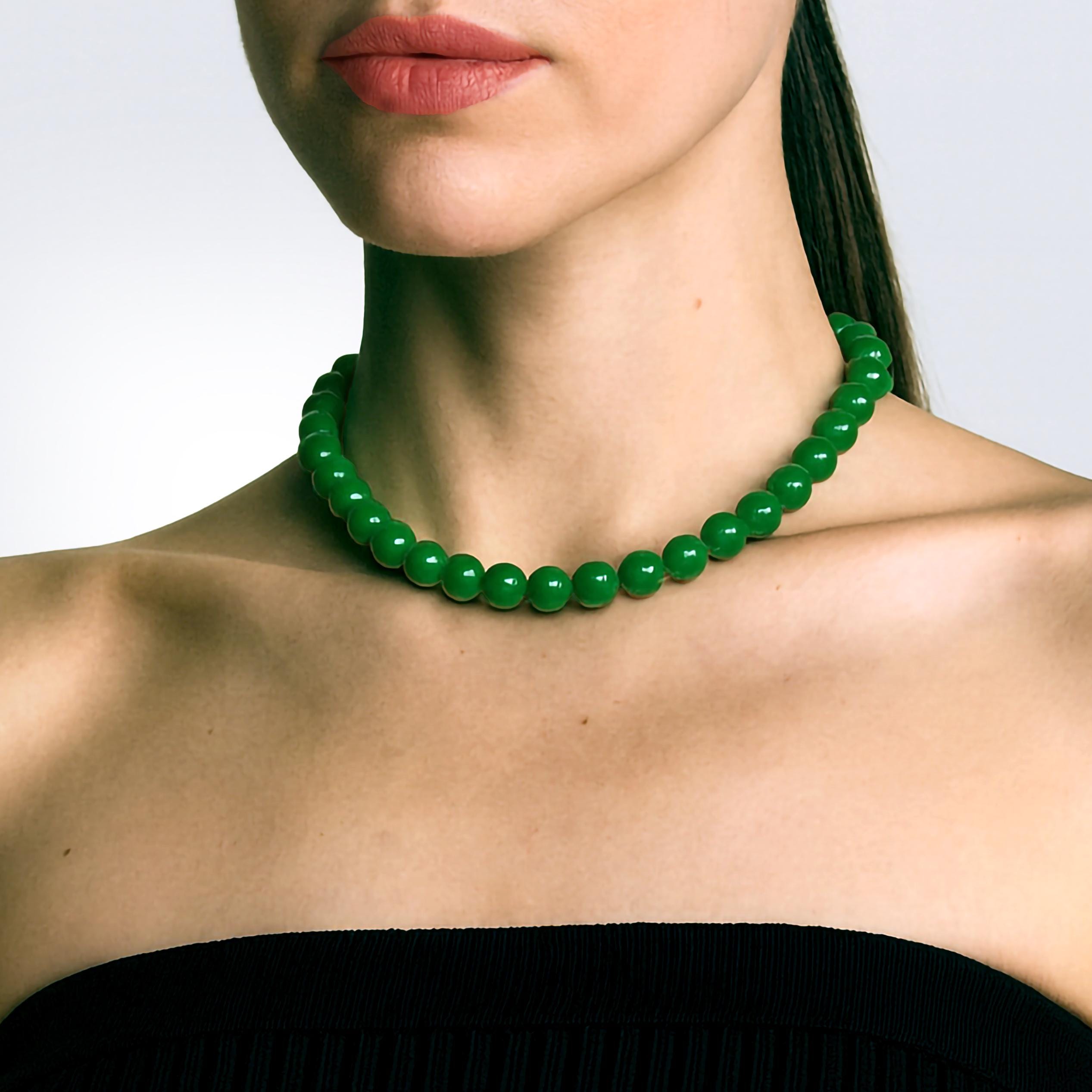 Lightweight and comfortable, this versatile necklace is ideal for both everyday wear and gifting. The rich green hue brings a touch of natural elegance to any outfit.