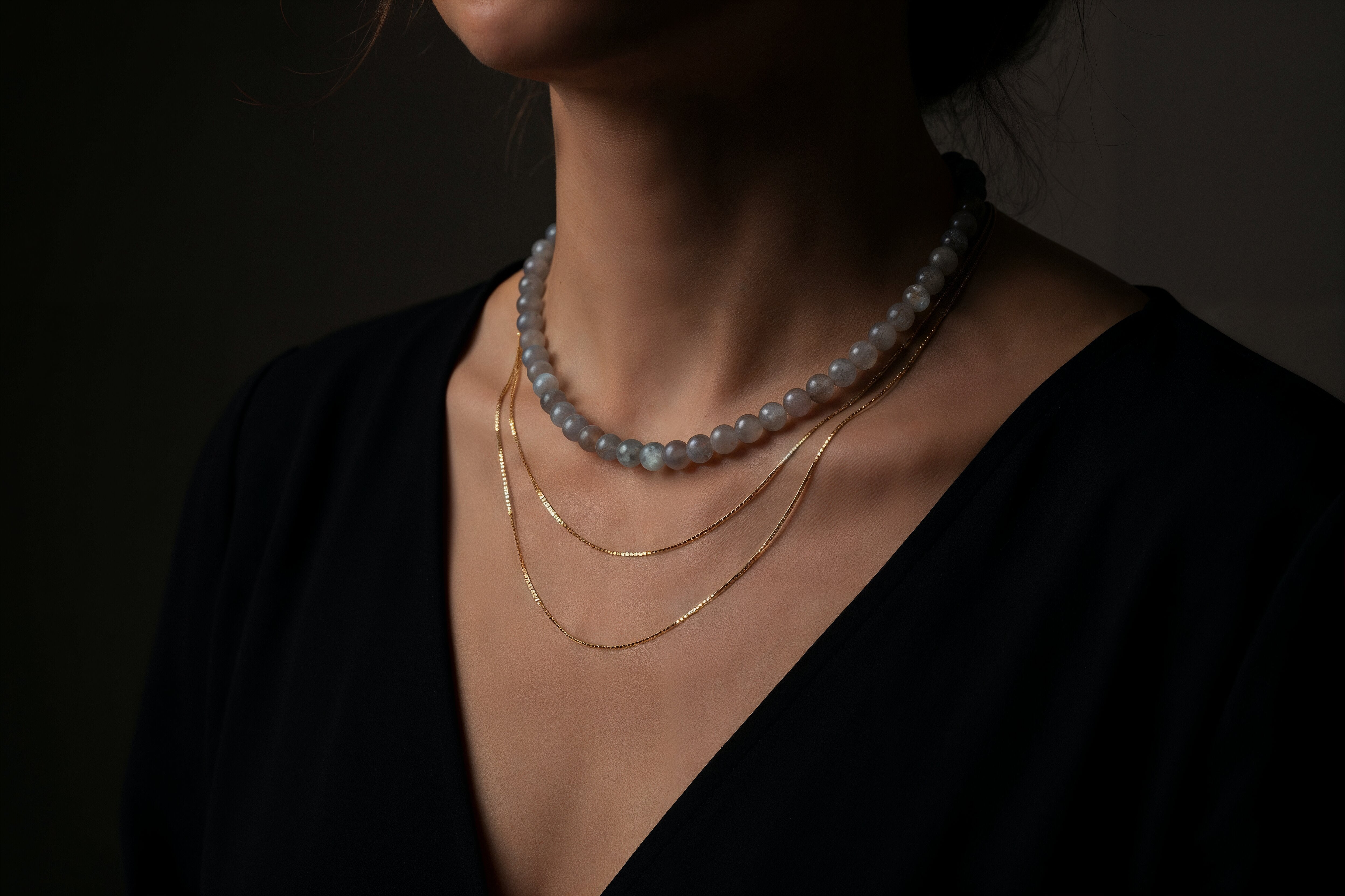 Designed as a short choker strand, this necklace is versatile enough to wear solo as a signature style, layered with other necklaces, or customized to suit your look. Its natural iridescence makes it a meaningful and eye-catching piece for any collection.
