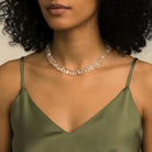 This crystal quartz drop chip necklace is made from natural clear gemstones, known for their clarity and energy-enhancing qualities. The irregular chip beads create a textured, organic strand that pairs beautifully with both casual and formal styles.