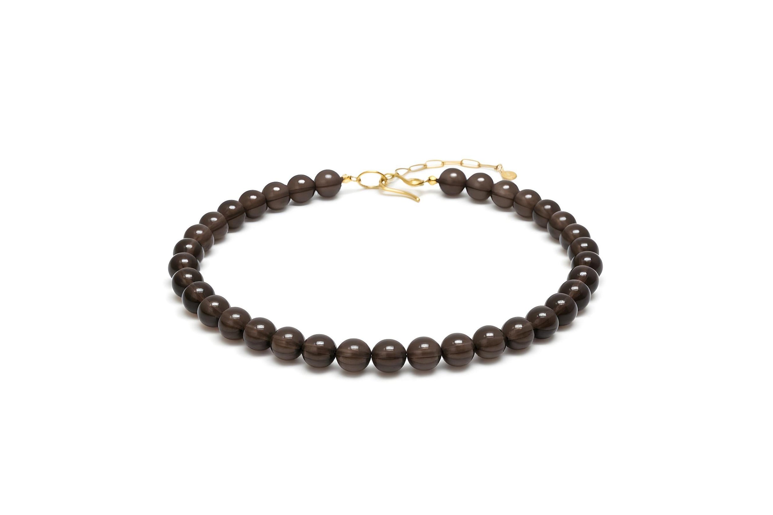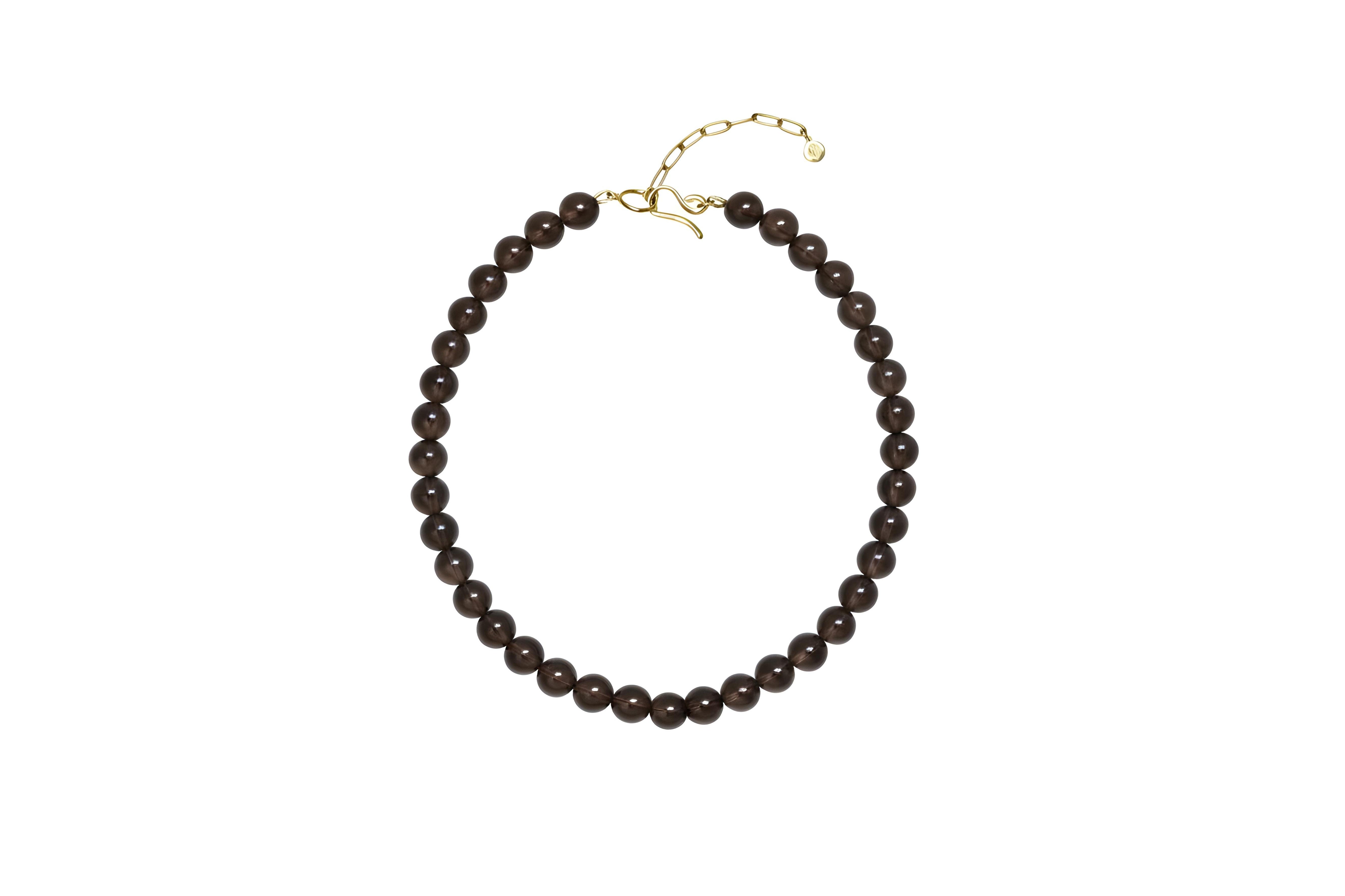 This smoky quartz beaded necklace is made with polished semi-precious stones in deep brown hues, offering a refined and earthy style. Designed as a choker strand, it brings natural sophistication to your jewelry collection.