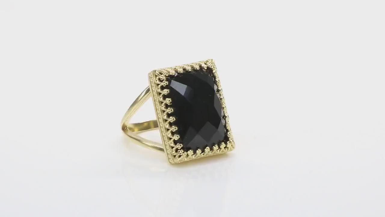 Own and adore this black ring piece from Anemone’s selection of black onyx rings for women. This piece flaunts a rectangular faceted Black Onyx set in 14k gold-filled ring band, customizable to 14k solid gold or 925 Sterling Silver. When it comes to onyx rings for women, Anemone creates the most fashion-forward and versatile jewelry piece and this piece is one you surely don’t want to miss.