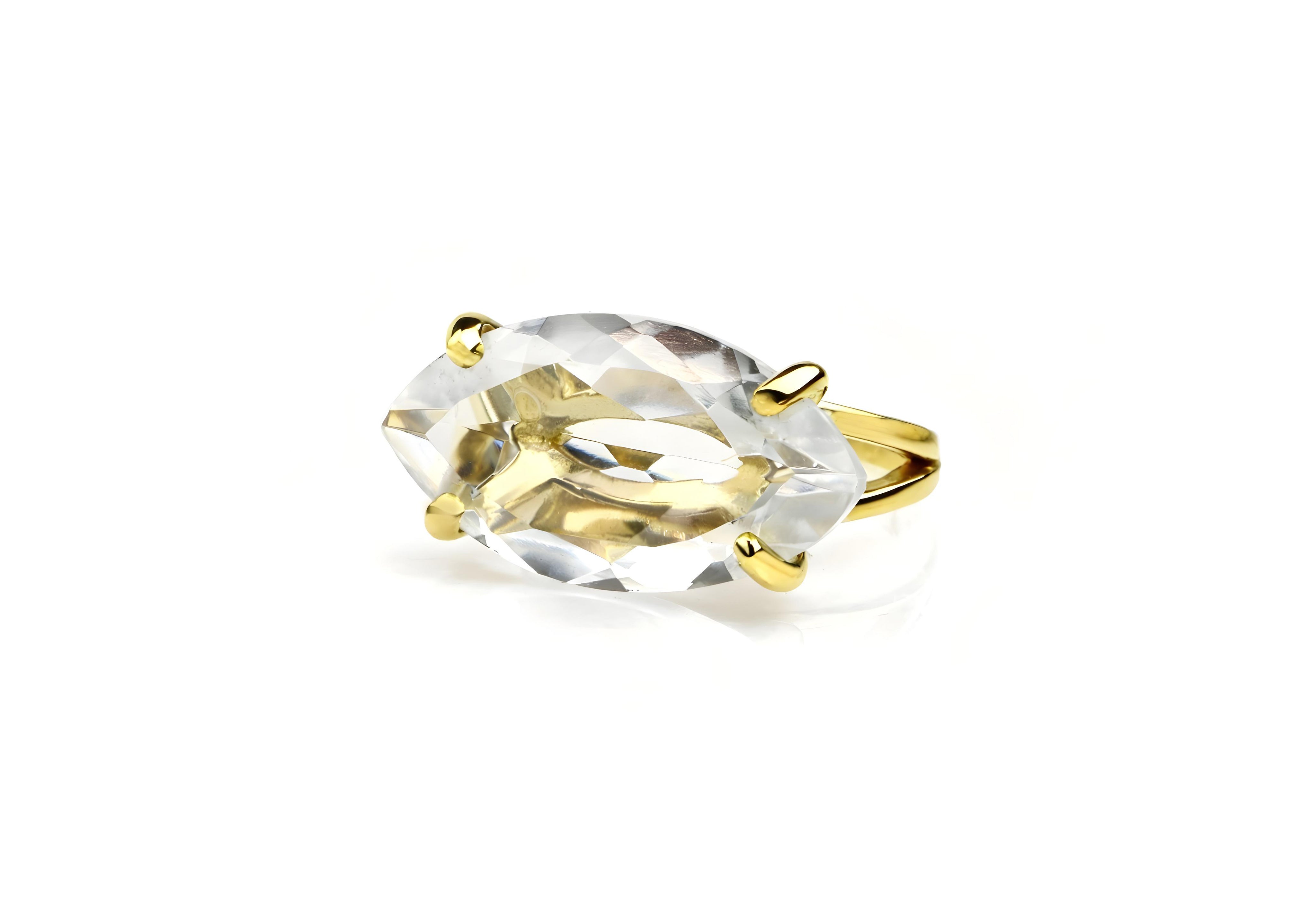 Held horizontally in gorgeous prongs, a striking marquise Clear Quartz becomes the focal point of this beautiful jewelry for women. Crafted with a radiant 14k gold-filled finish, this gold statement ring delivers bold shine with timeless appeal. A perfect choice for any occasion, season, and personal style.