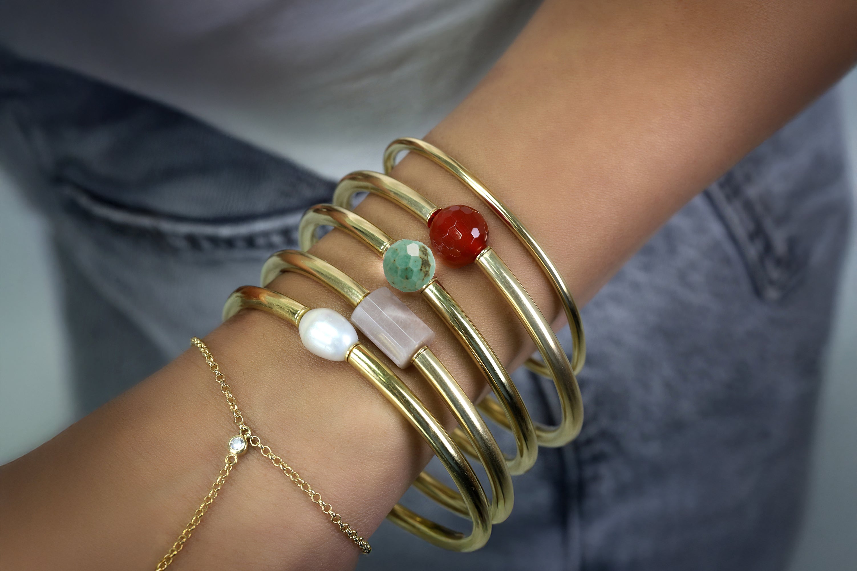 Celebrate the magic of African turquoise with this tube bracelet in 14k gold filled. Featuring a genuine African turquoise gemstone, this bangle is believed to bring healing, balance, and protection to the wearer.