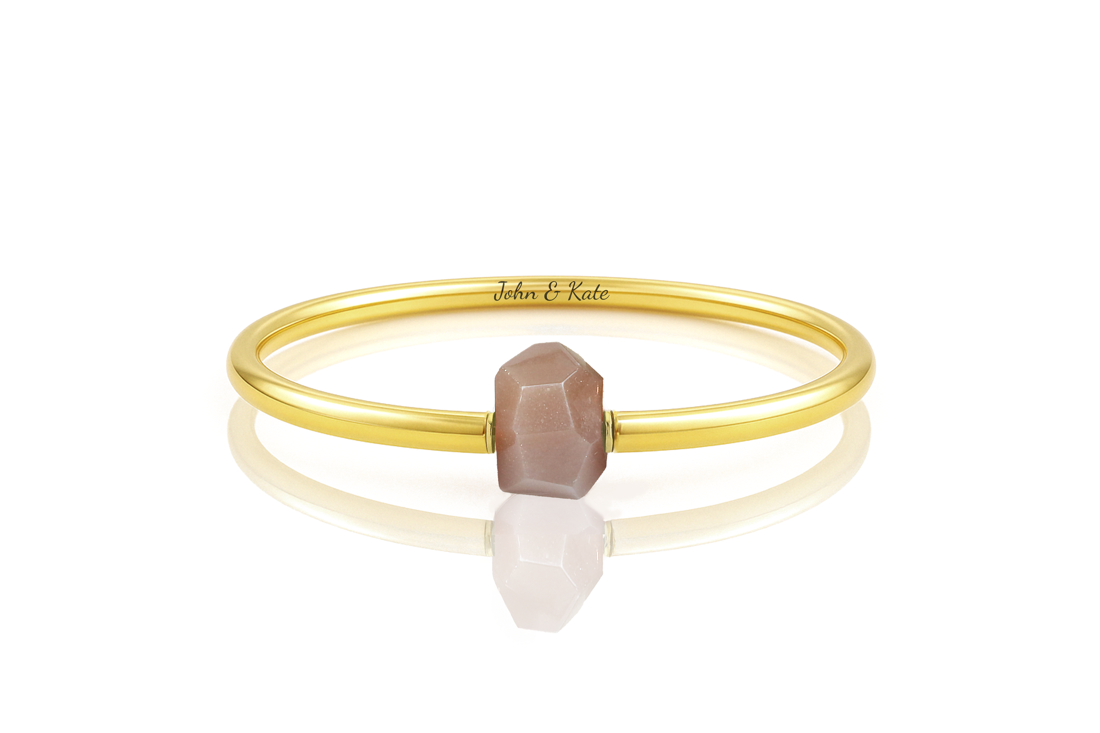 Faceted Sunstone Nugget Gold Bangle Bracelet