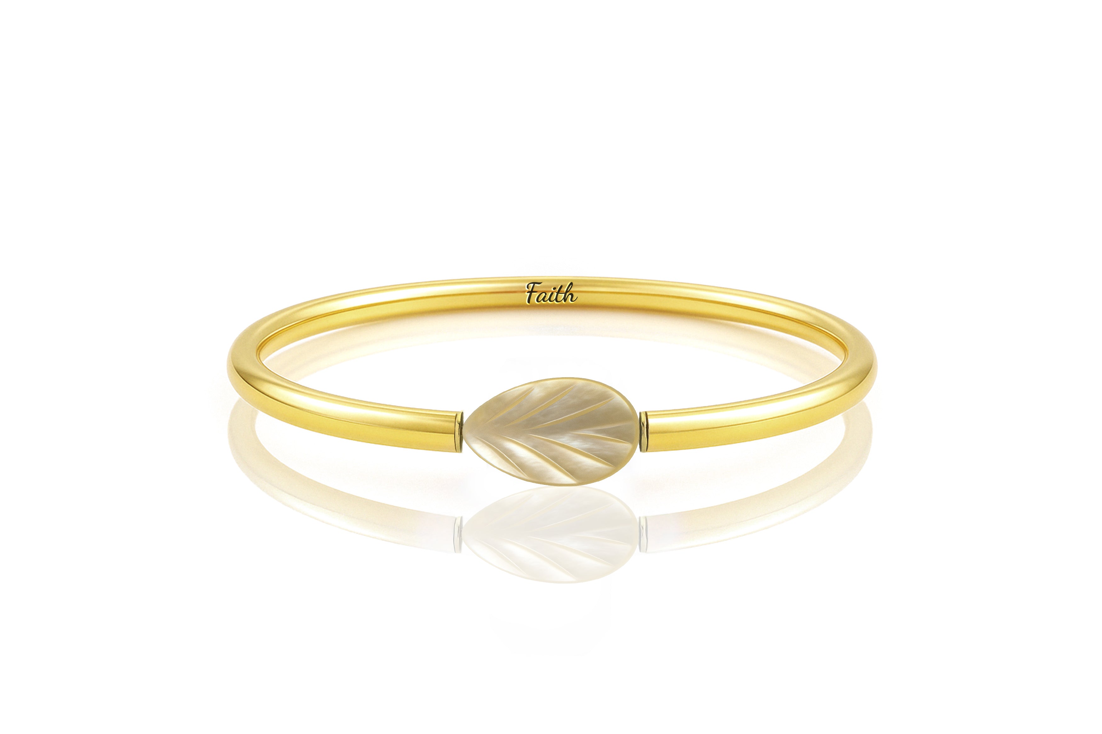 Leaf-Cut Mother of Pearl Gold Bangle Bracelet