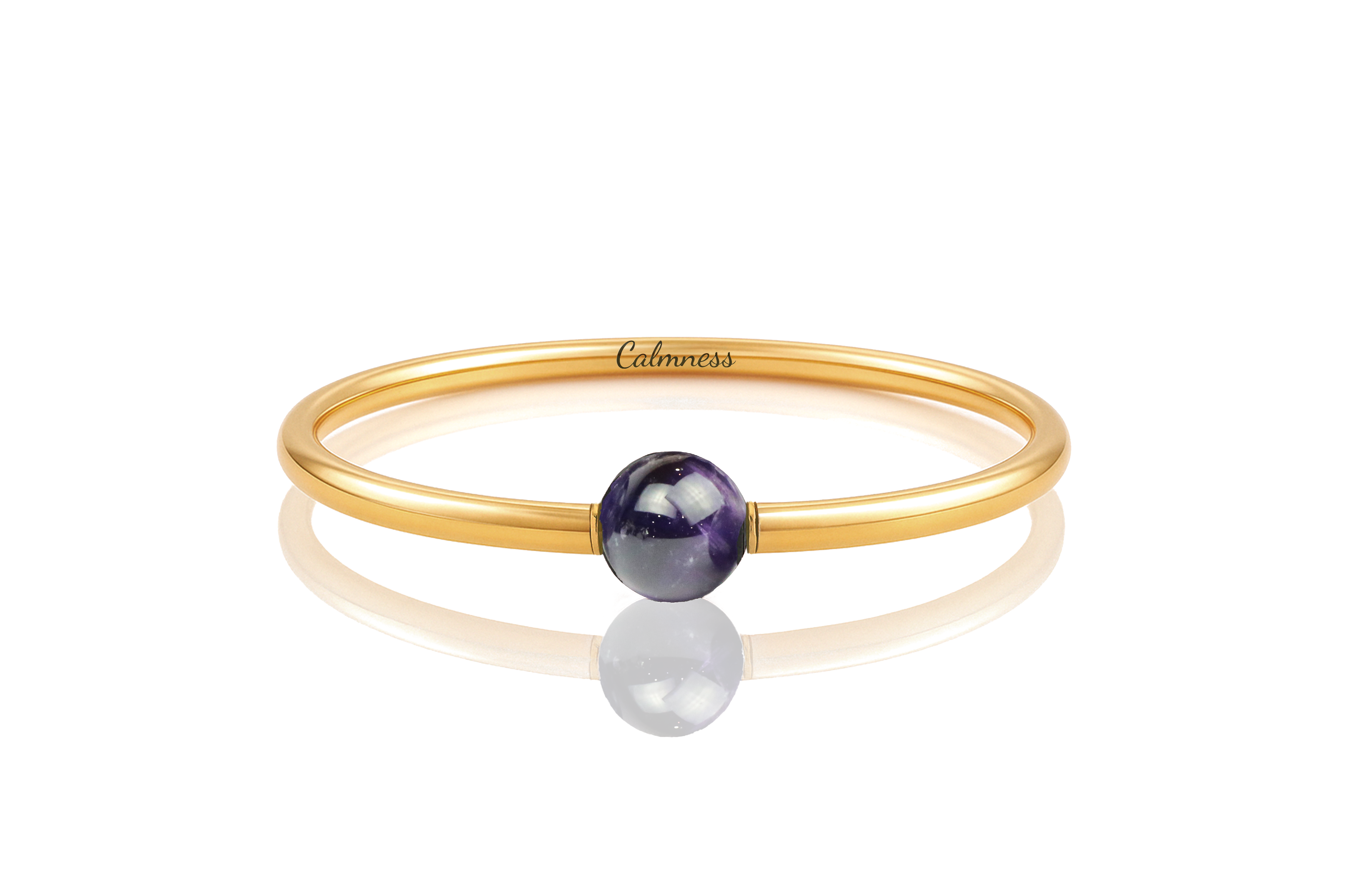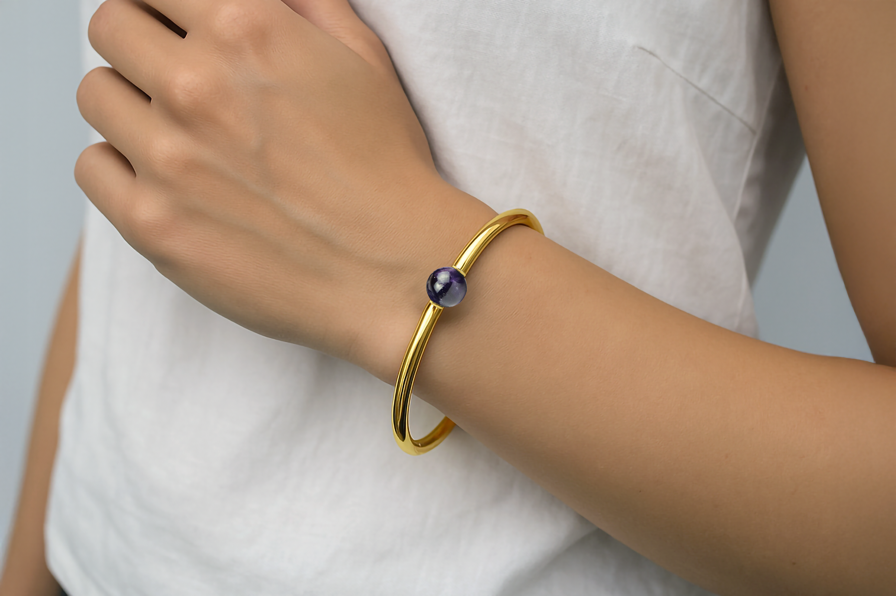 Known for its calming and balancing properties, amethyst brings both color and meaning to this sleek, minimalist silhouette. Lightweight and stackable, this bracelet is a beautiful daily reminder or thoughtful gift.