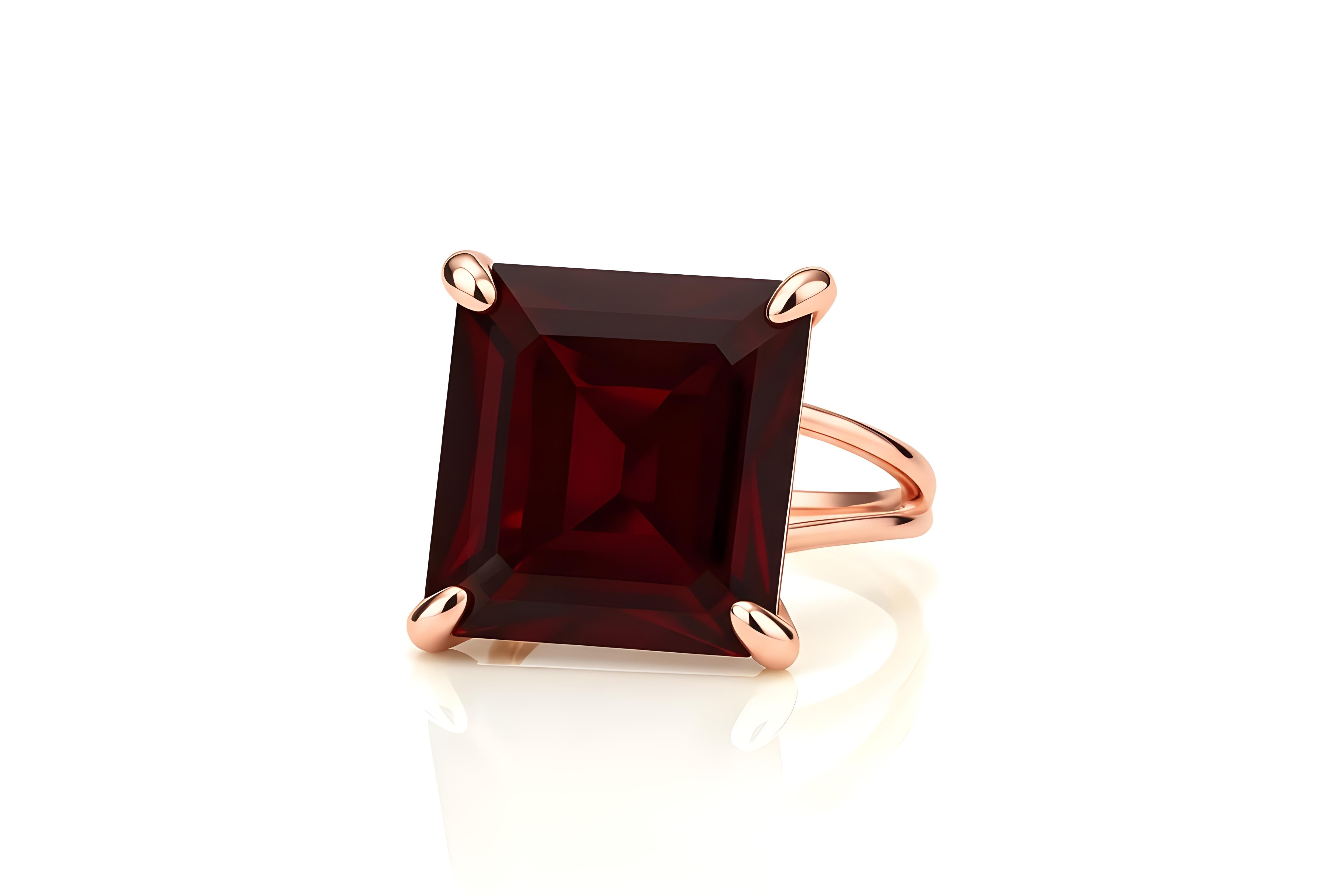 This square cut garnet ring is crafted in rose gold and features a faceted deep red gemstone. As the January birthstone, garnet represents passion, love, and vitality. The bold geometric square design gives it a modern edge while highlighting the stone’s natural brilliance. Handcrafted with care, this rose gold statement ring is perfect as a cocktail piece, an anniversary gift, or a striking everyday accessory.