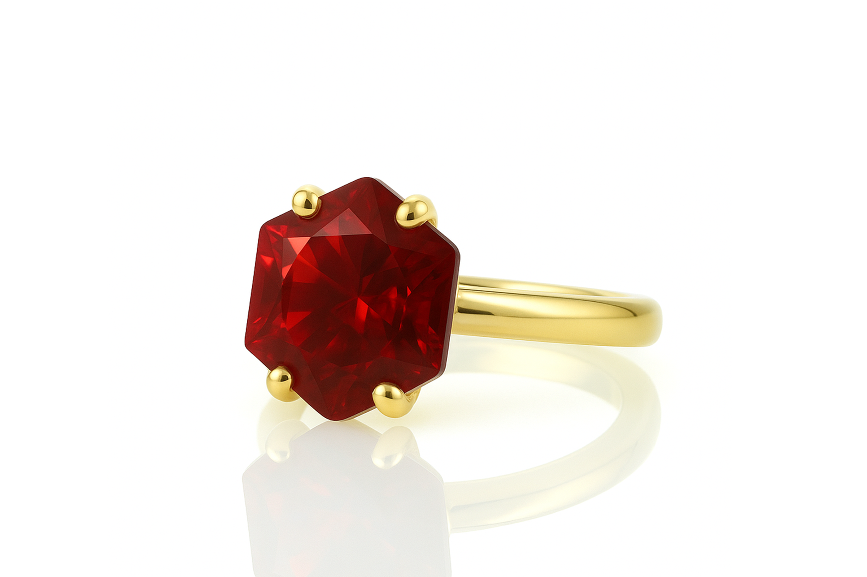 A Garnet birthstone ring crafted with a customizable setting that will beautifully contrast the hue of the stone. This red stone ring is a great statement for a special event, occasion or for casual days when you want a pop of elegance to your looks. Gemstone rings are gorgeous accessories that every woman must have.