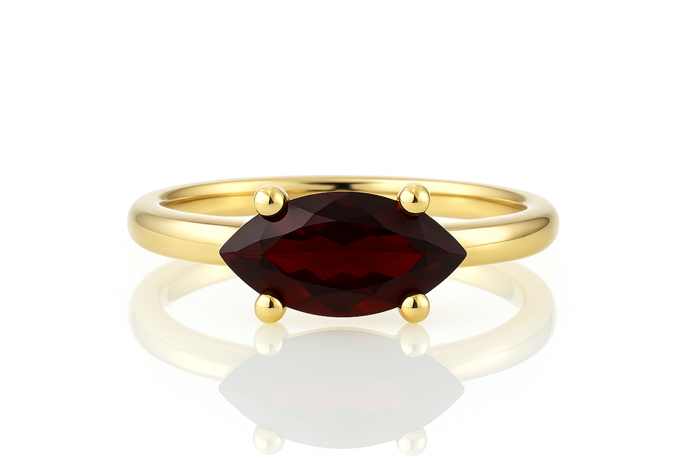 A lovely Garnet jewelry ring with a customizable classic gold band. This piece from our collection of birthstone rings for women is an all-time classic. A ring jewelry you can wear with other dainty, stackable rings .