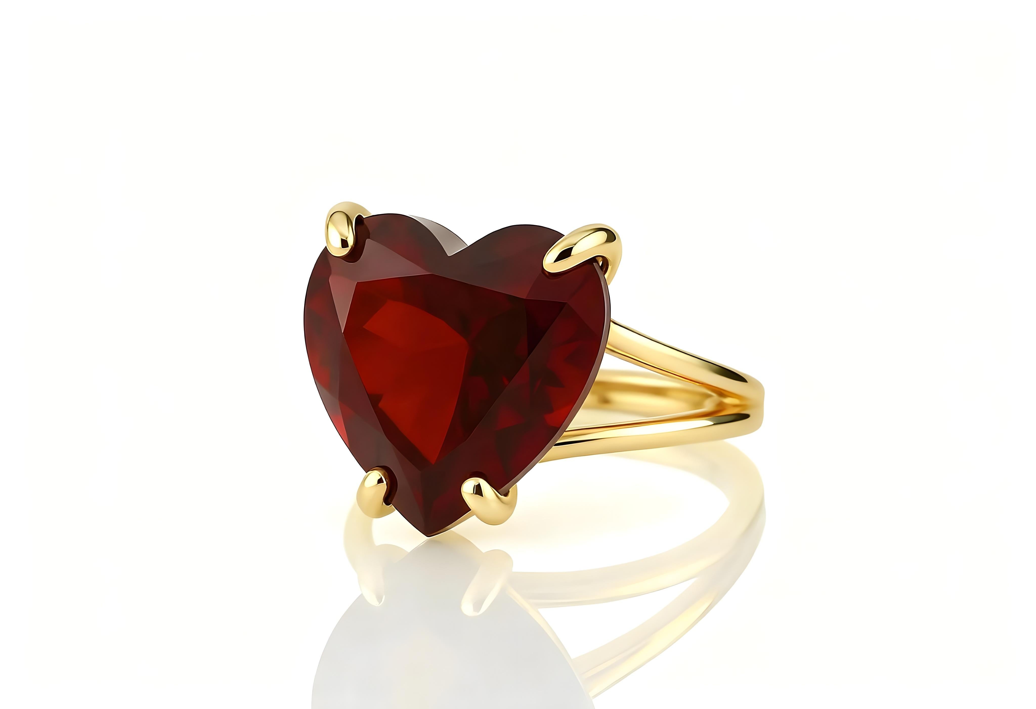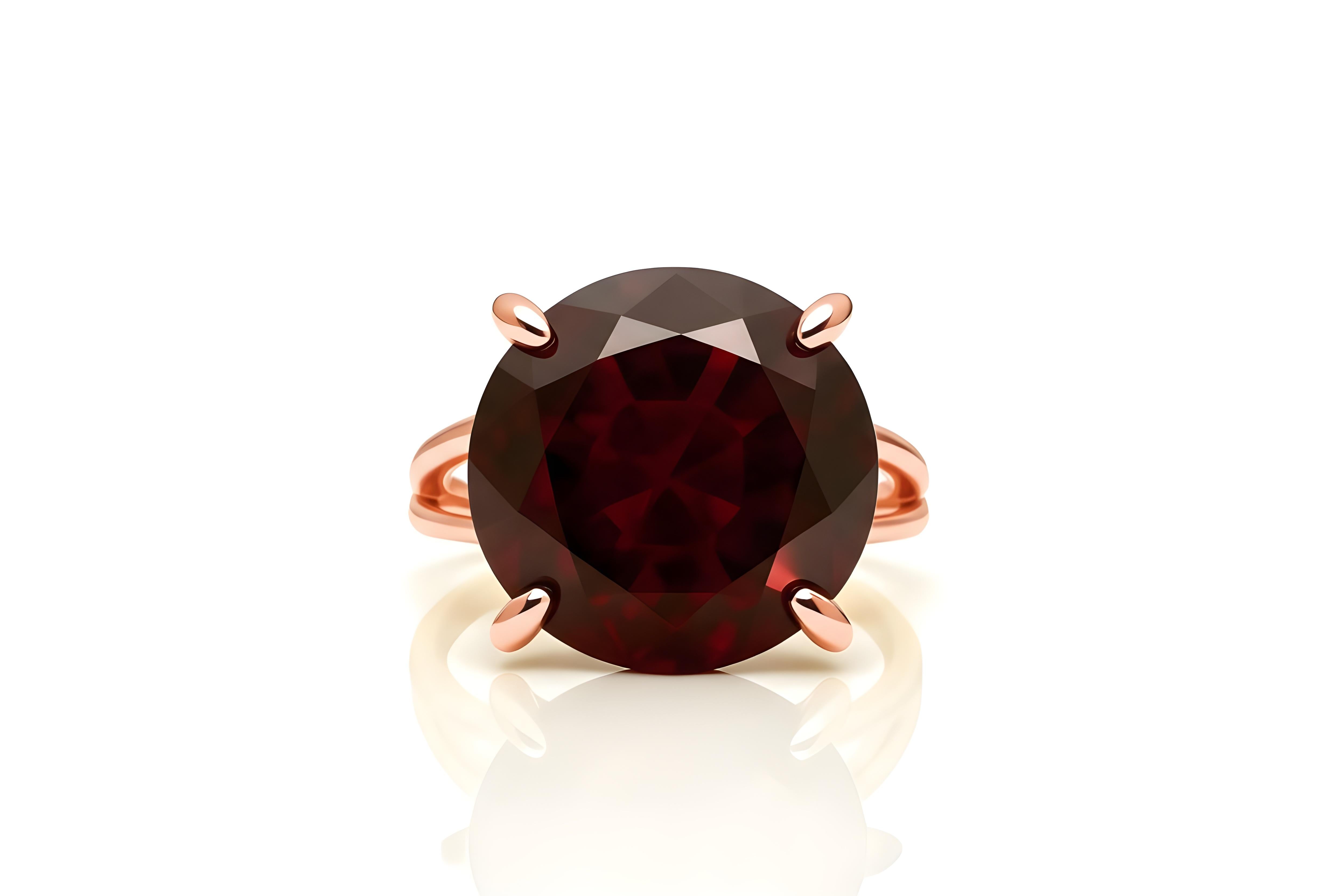 Garnet Jewelry Custom Cut Round Ring in 14k Gold