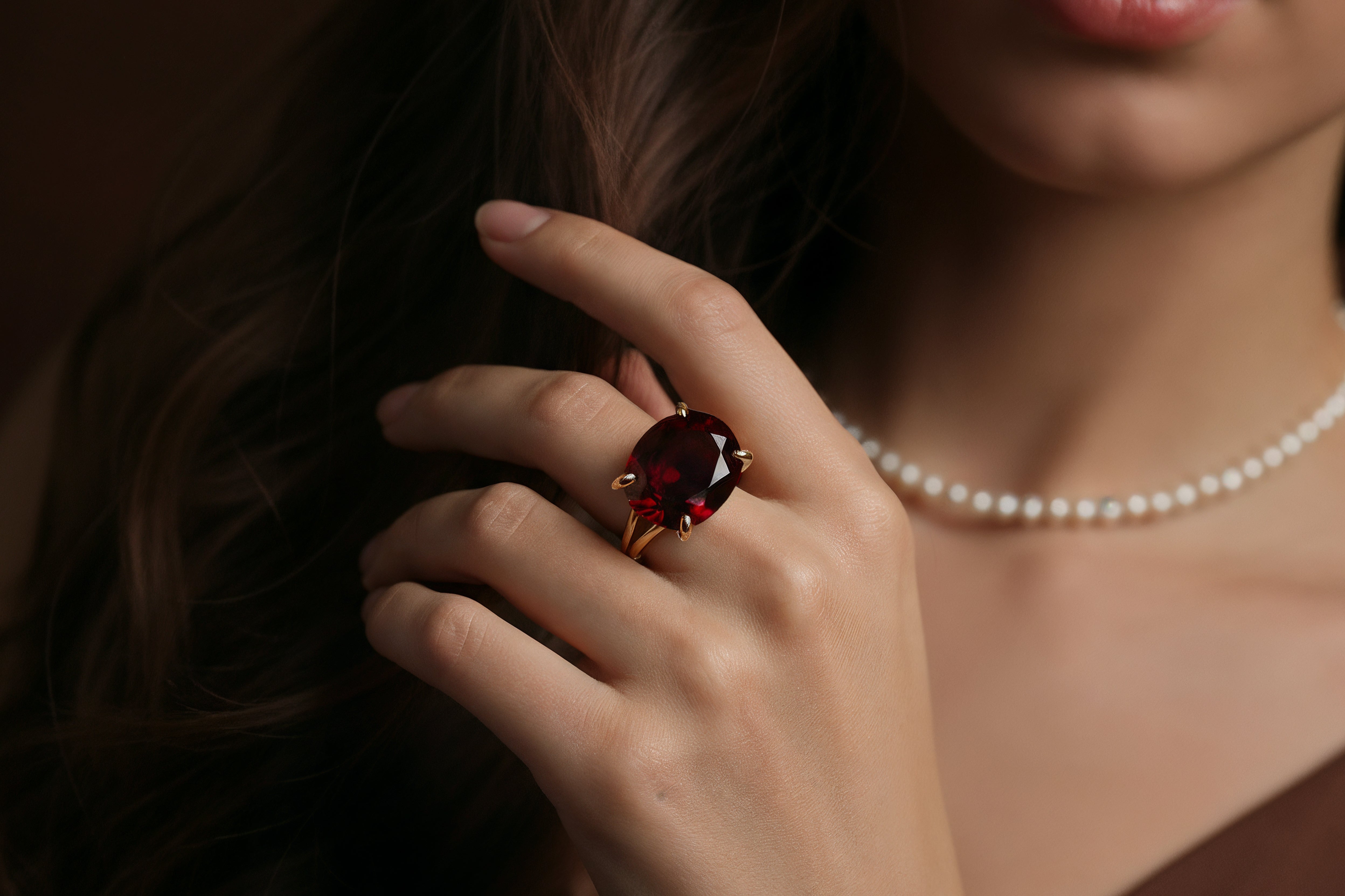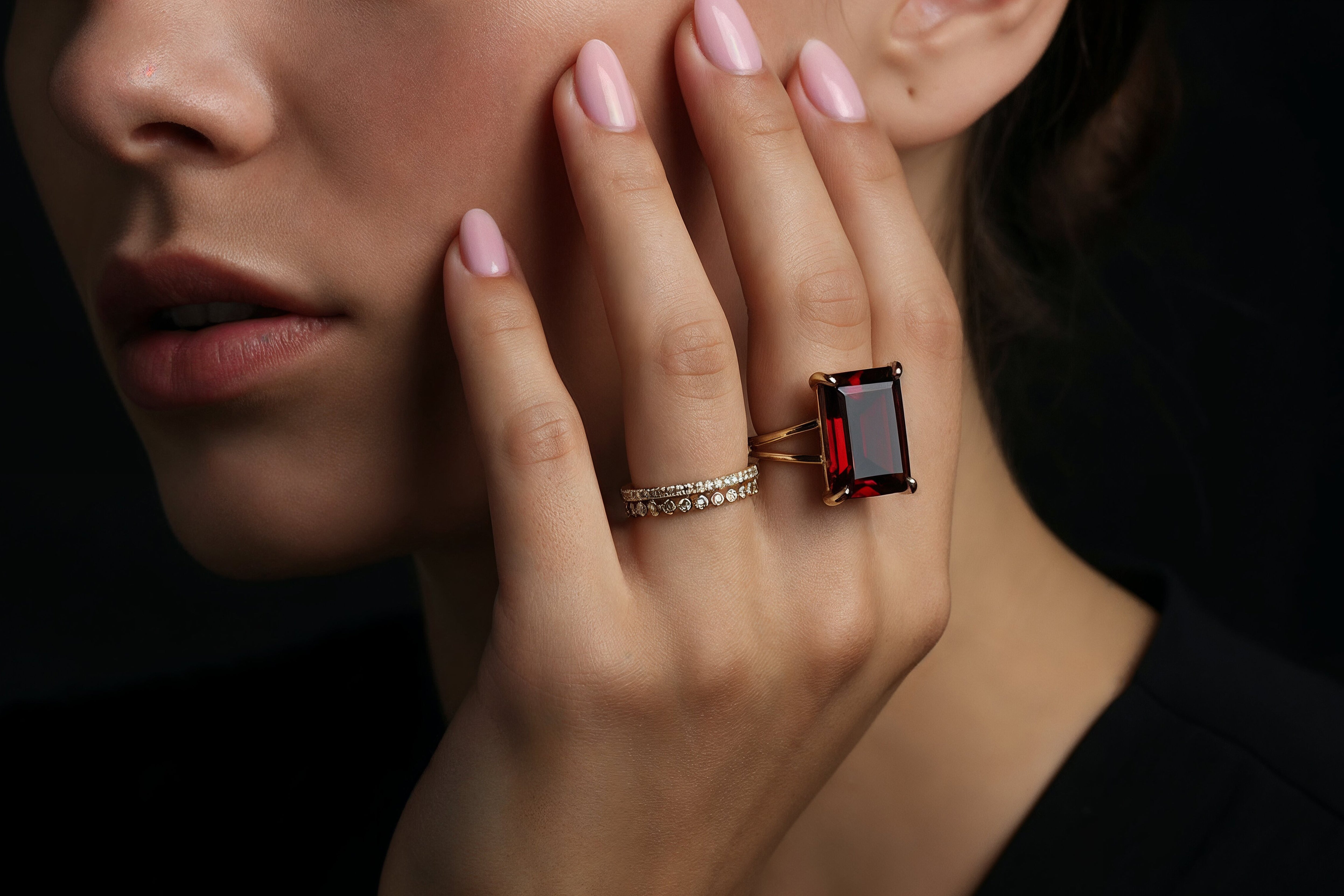 Red Garnet Birthstone Ring in 14k Rose Gold Rings Anemone Jewelry