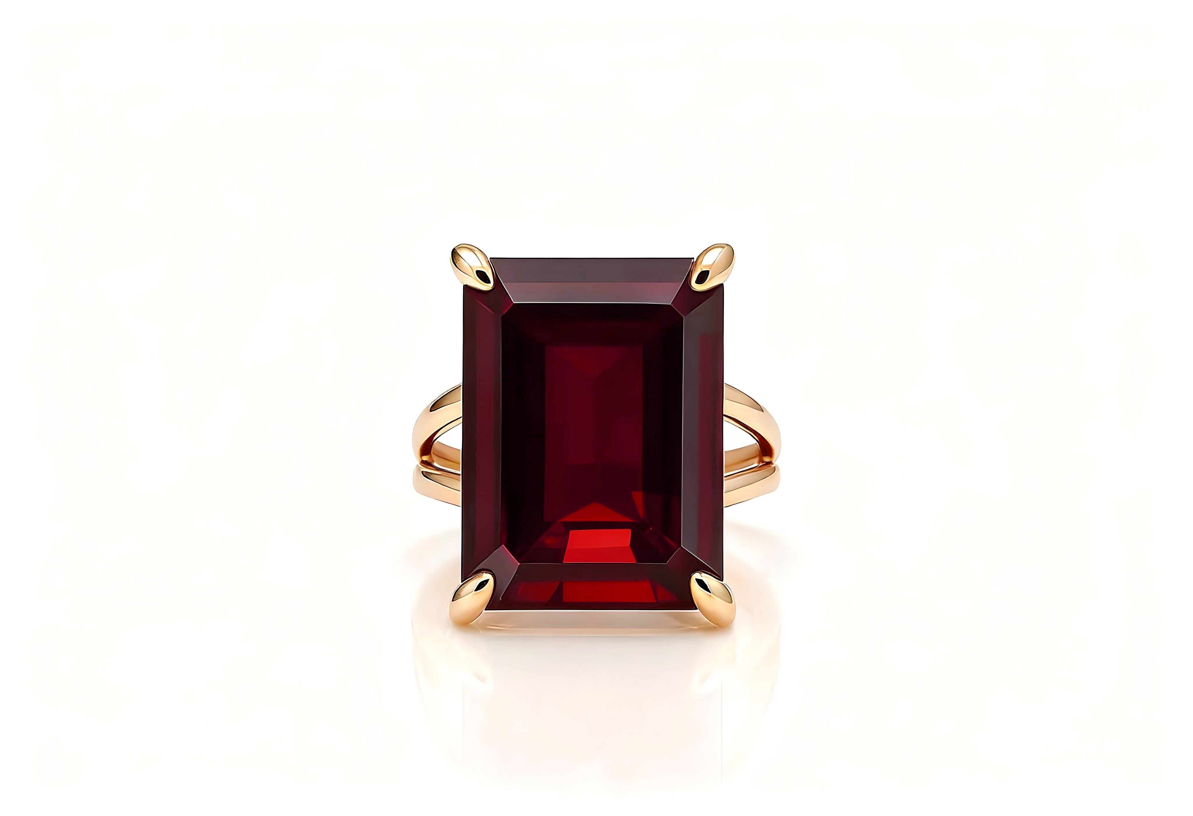 Lustrous Bold 14k Gold Garnet Cocktail Ring
