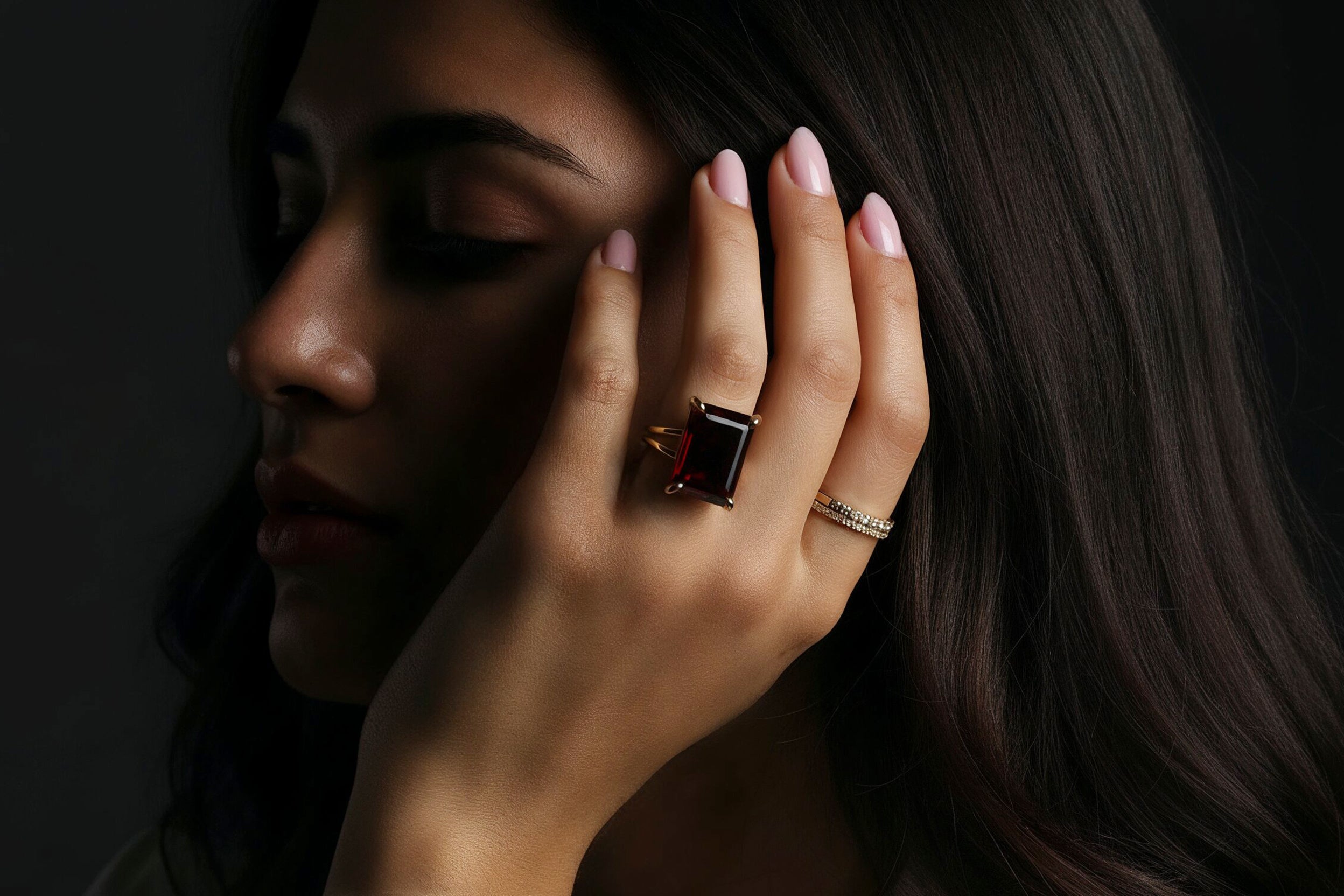 Rectangle Garnet Ring in 925 Sterling Silver Rings Anemone Jewelry