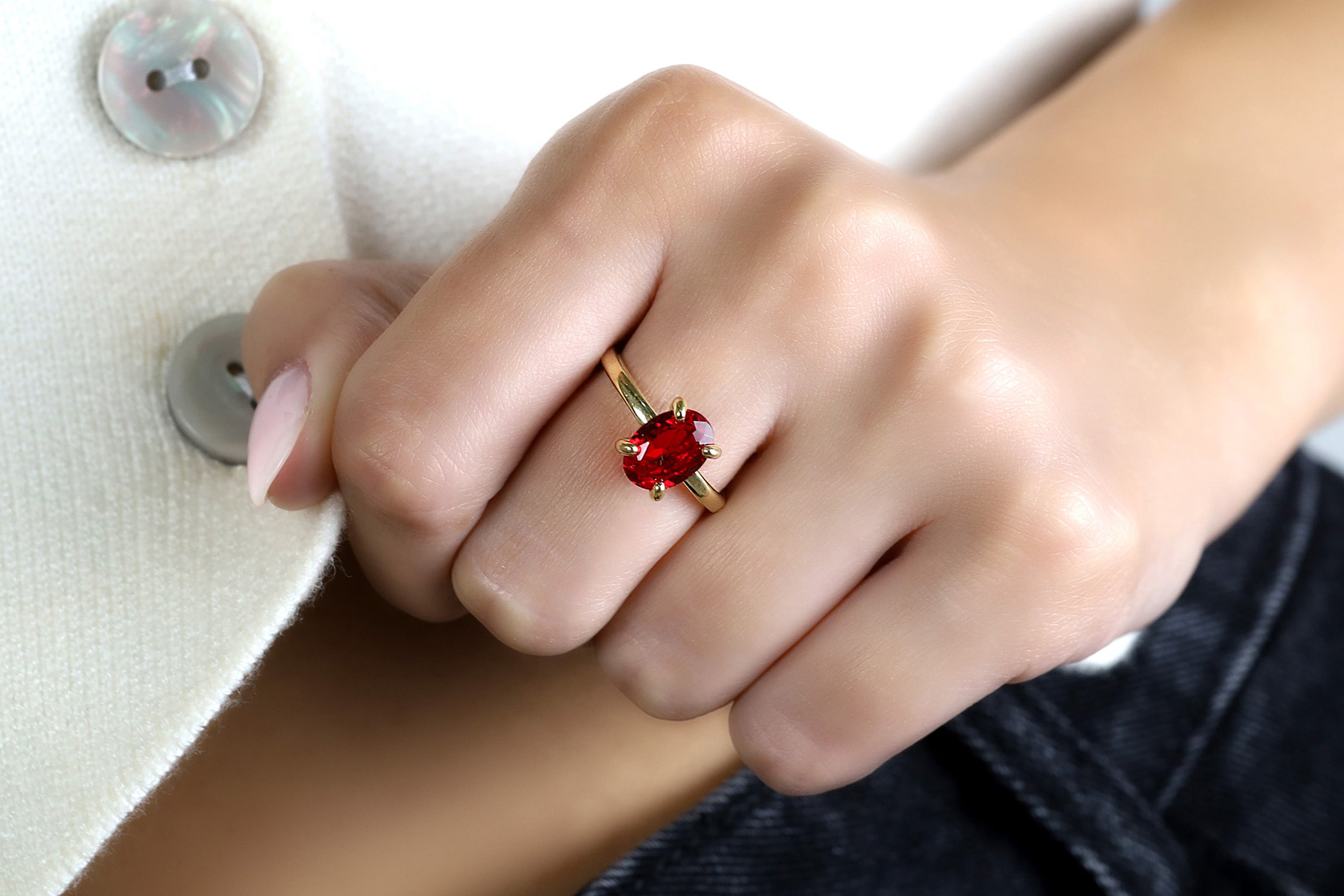 A breathtaking handmade Ruby jewelry featuring the beautiful contrast of the red stone and the silver setting. This customizable gem ring is an ideal choice for a promise ring or gift ring you can give to a lady who shares the same July birthstone.