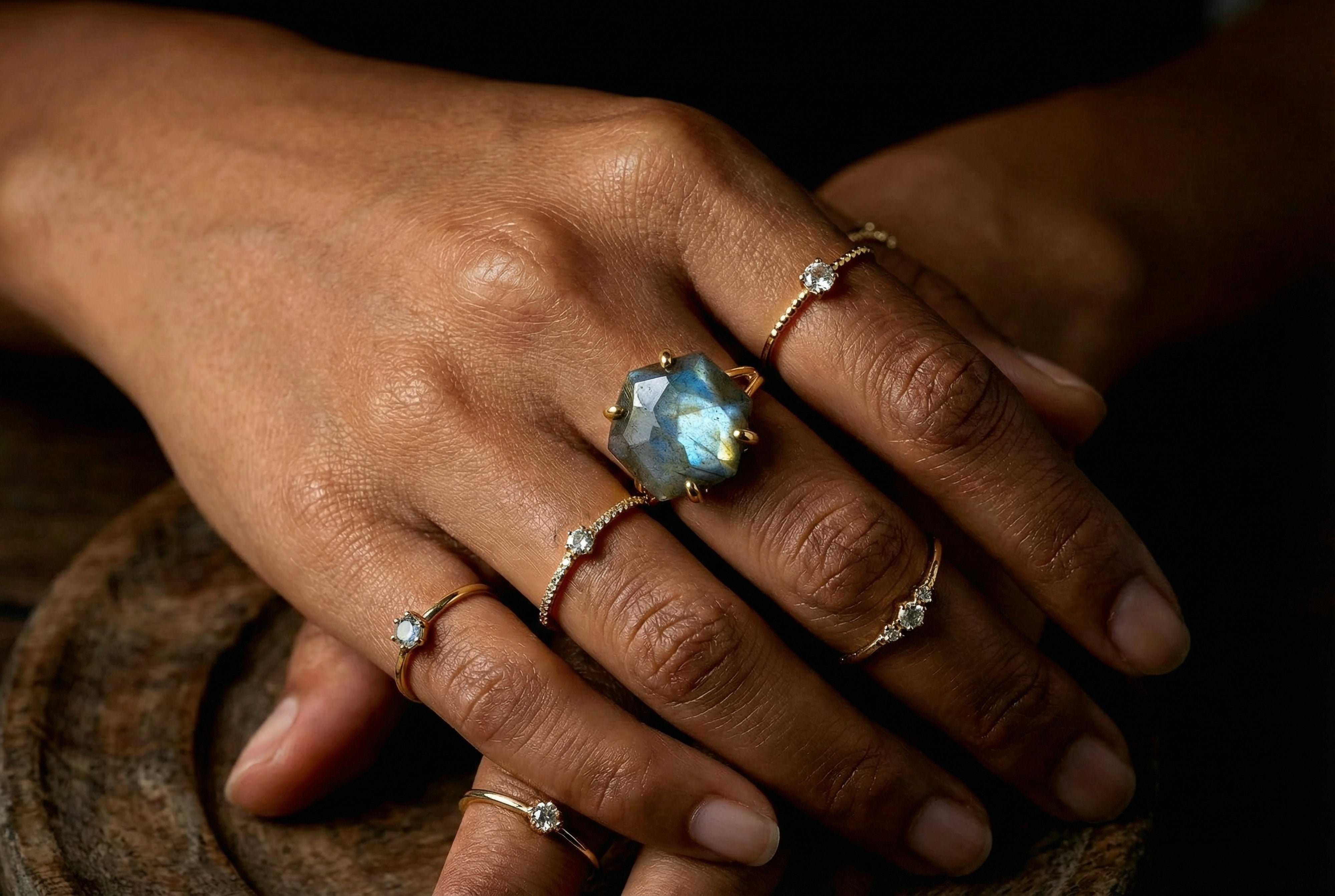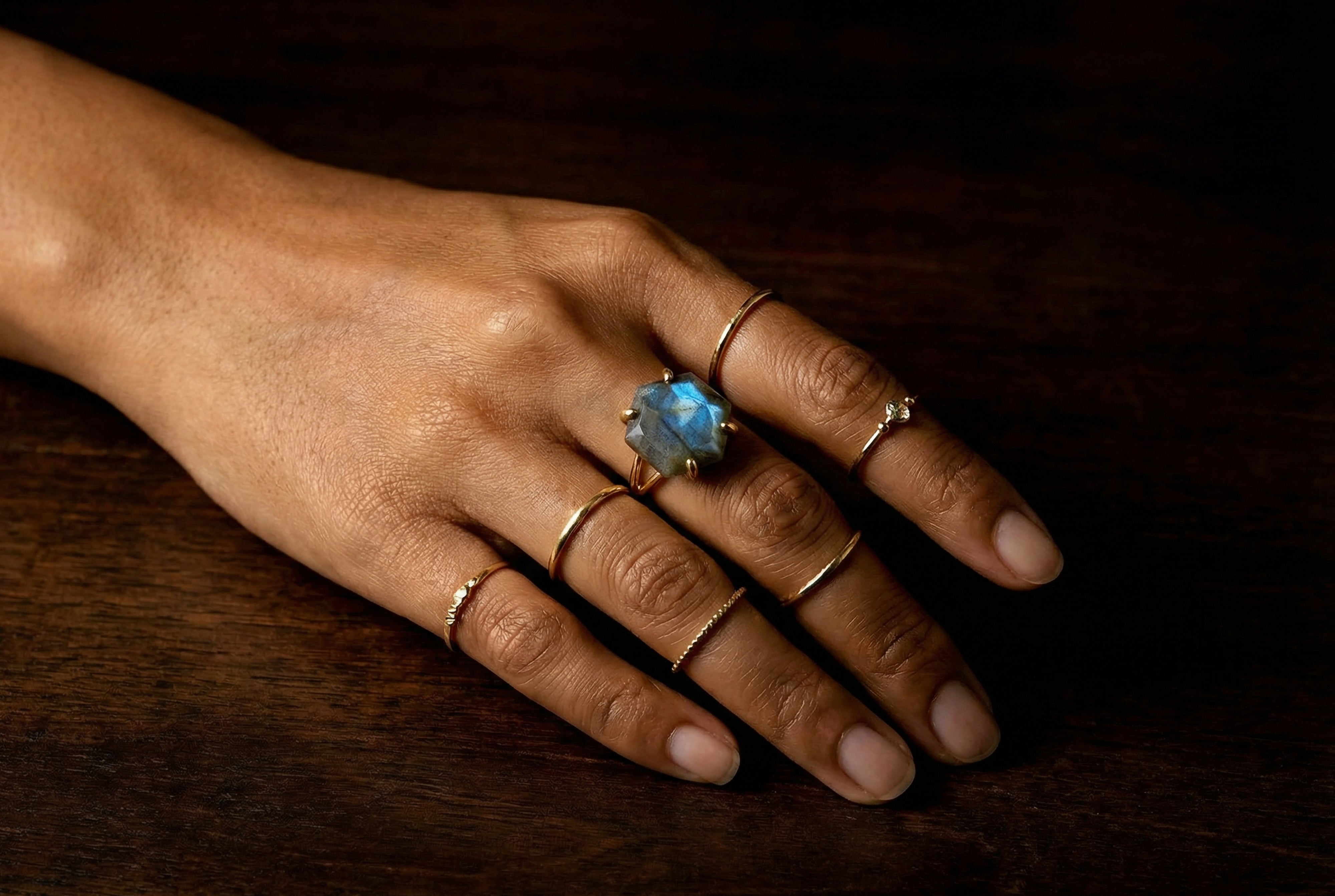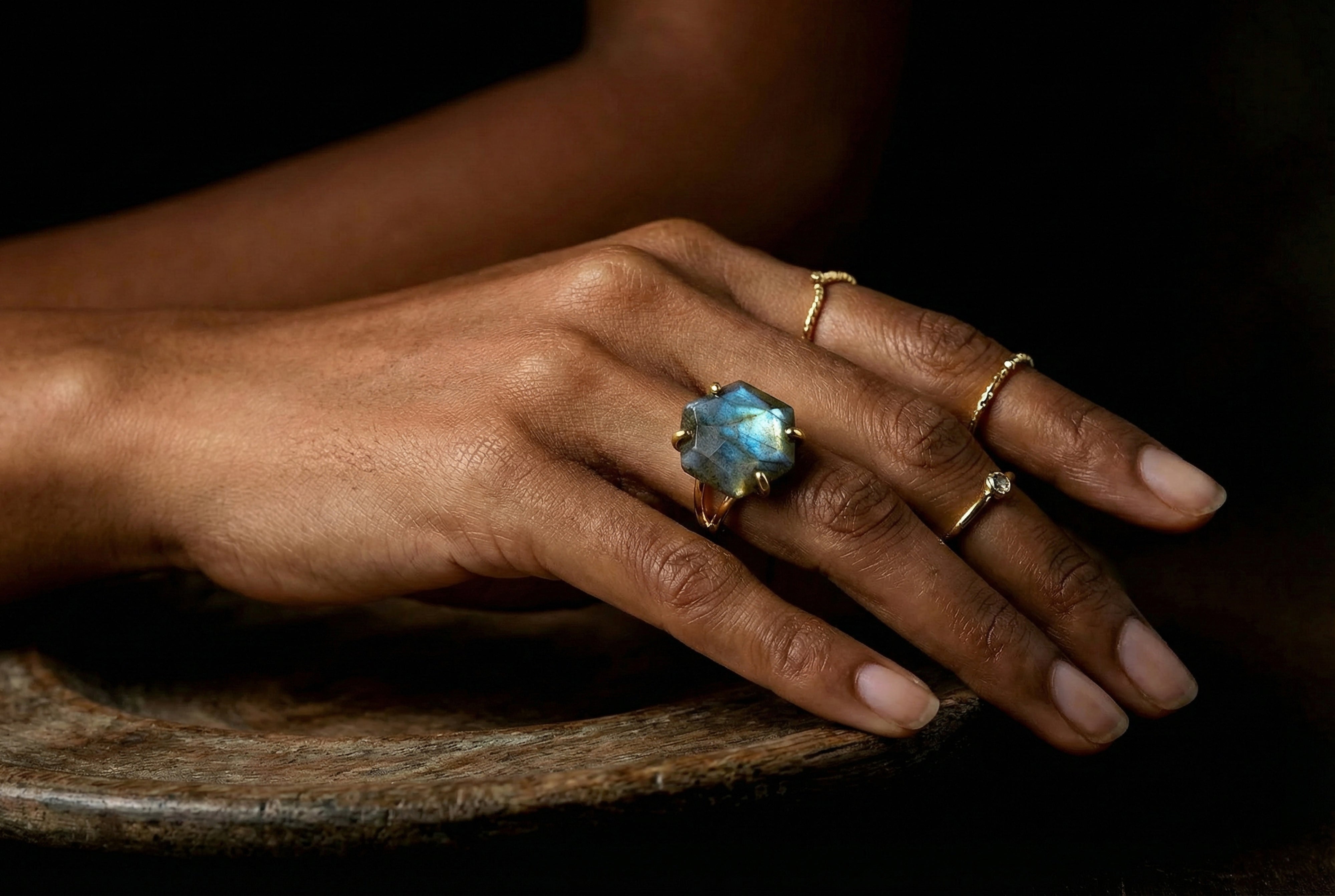 Gold Filled Hexagon Labradorite Ring