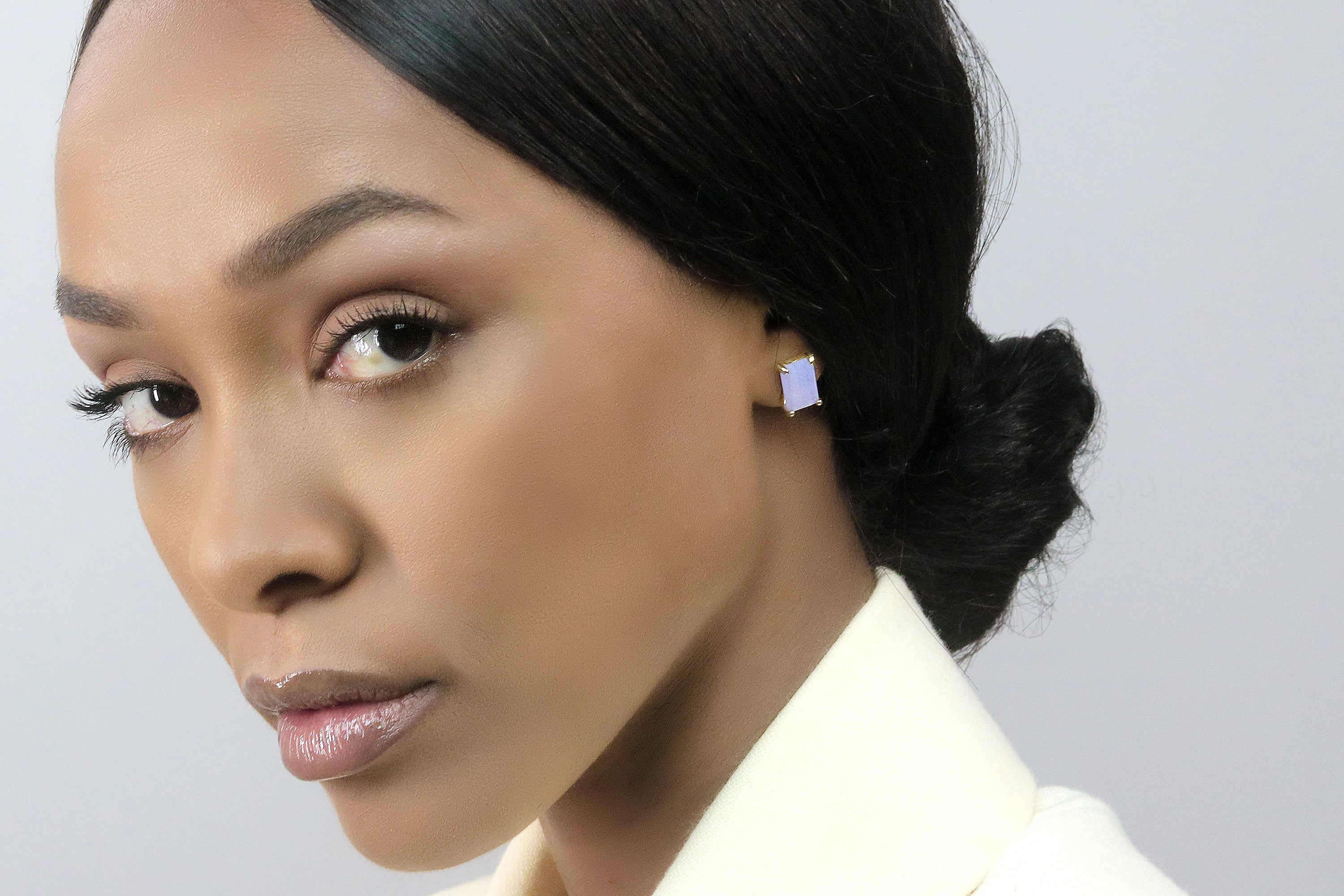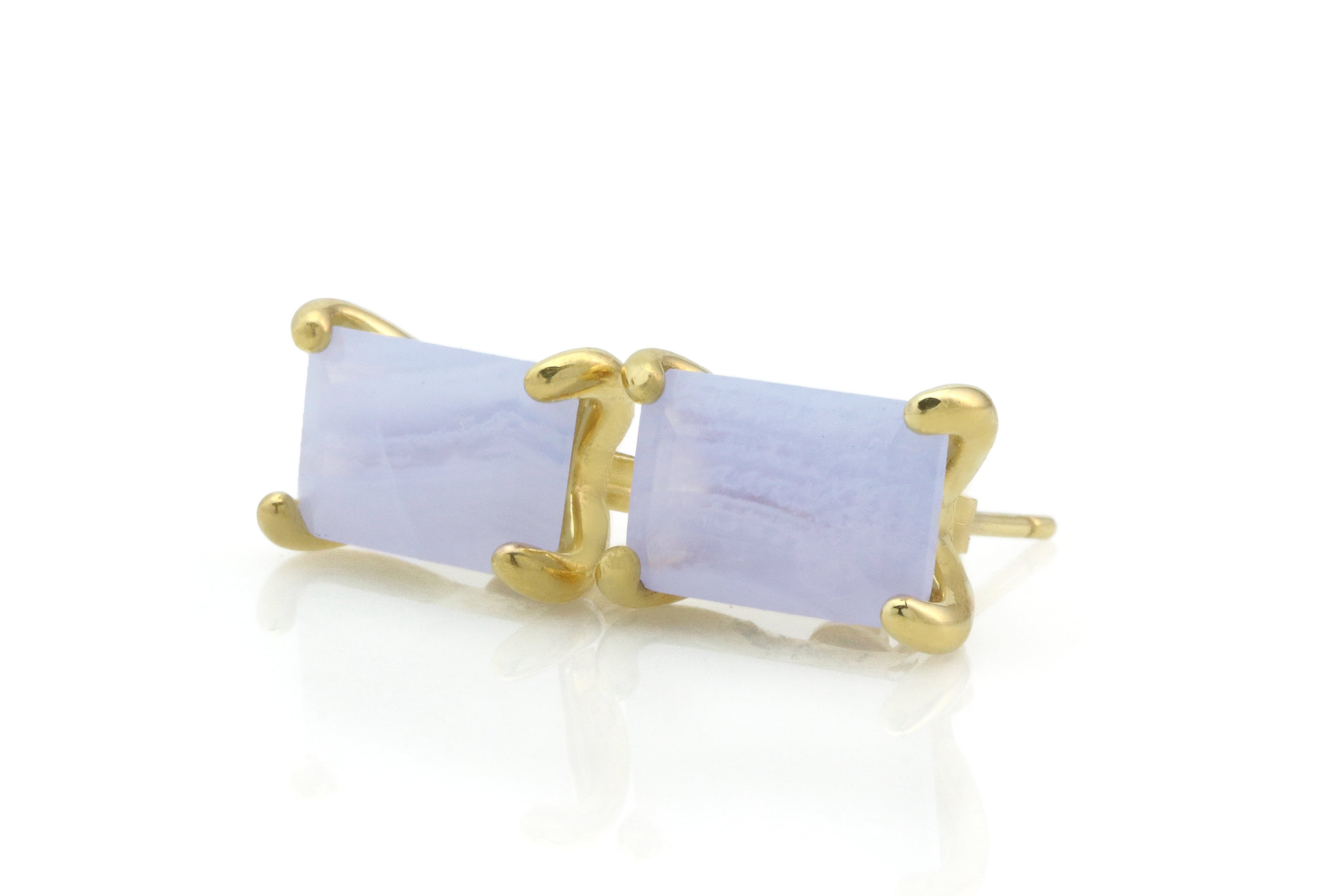 A pair of classic and captivating Lace Agate earrings. Handcrafted earrings for women you can style for a party, dinner, or casual occasions. These gold studs are perfect when paired with a matching pendant necklace.