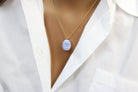 The detail of the stone in this Agate pendant necklace will be a stunning touch to your style. A fascinating, handmade stone necklace with a pendant set in prongs. A silver necklace that is the perfect example of beauty in simplicity.