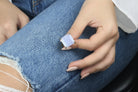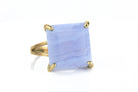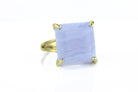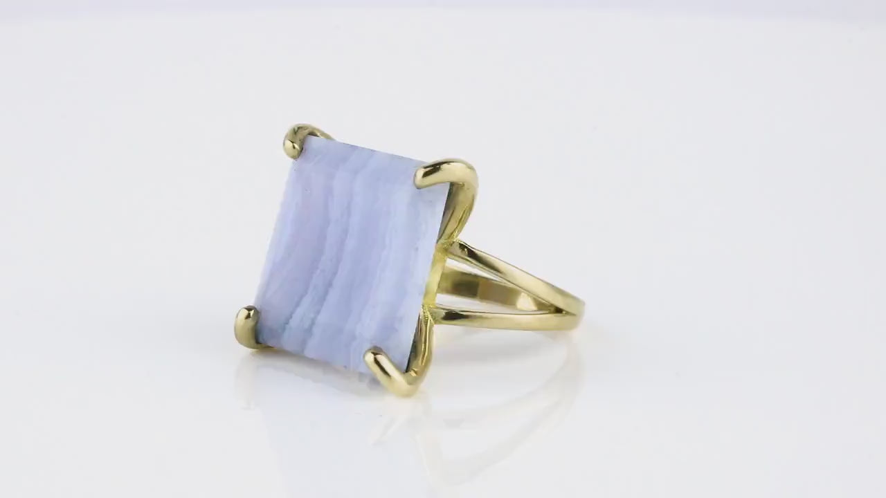 This blue lace agate ring features a bold square-cut gemstone set in a polished 14k gold band. Known for its calming blue patterns, lace agate is valued as a stone of balance and clarity. The large solitaire design creates a modern statement look, while the gold setting adds lasting elegance. Handcrafted with care, this ring makes a thoughtful BFF gift, a striking statement piece, or a meaningful gemstone addition to any jewelry collection.