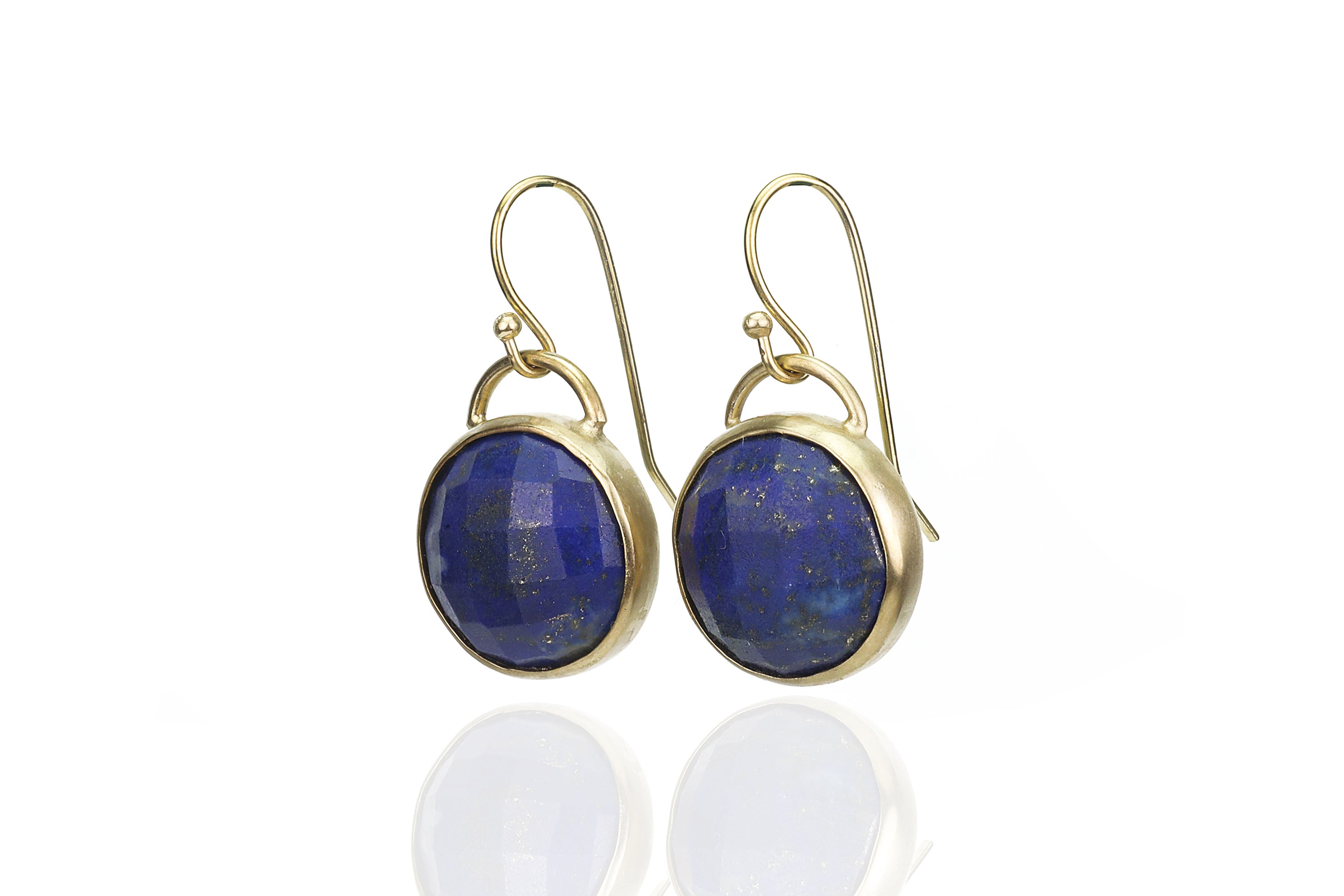 Gold Filled Bag Inspired Earrings with Lapis Lazuli Gemstone