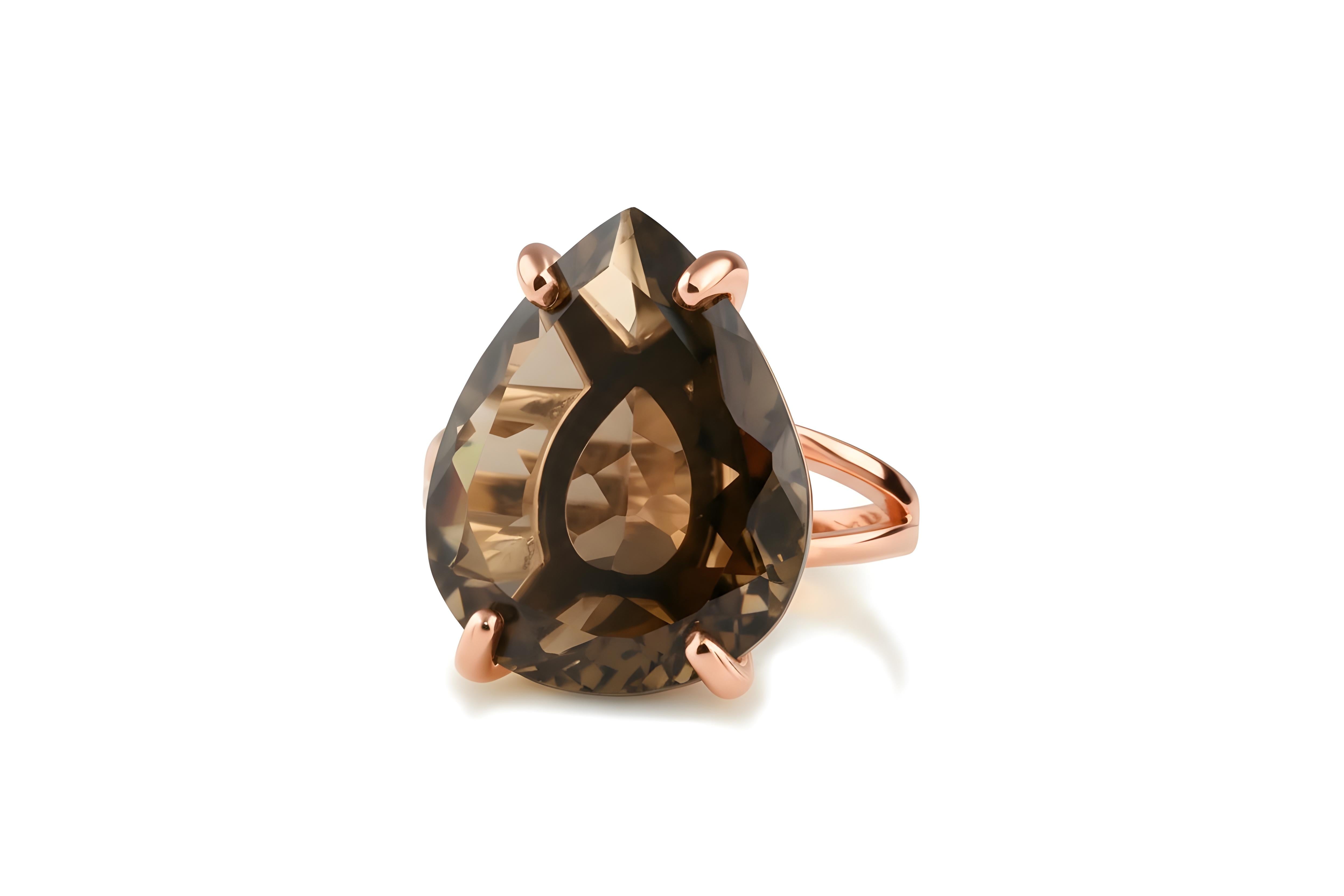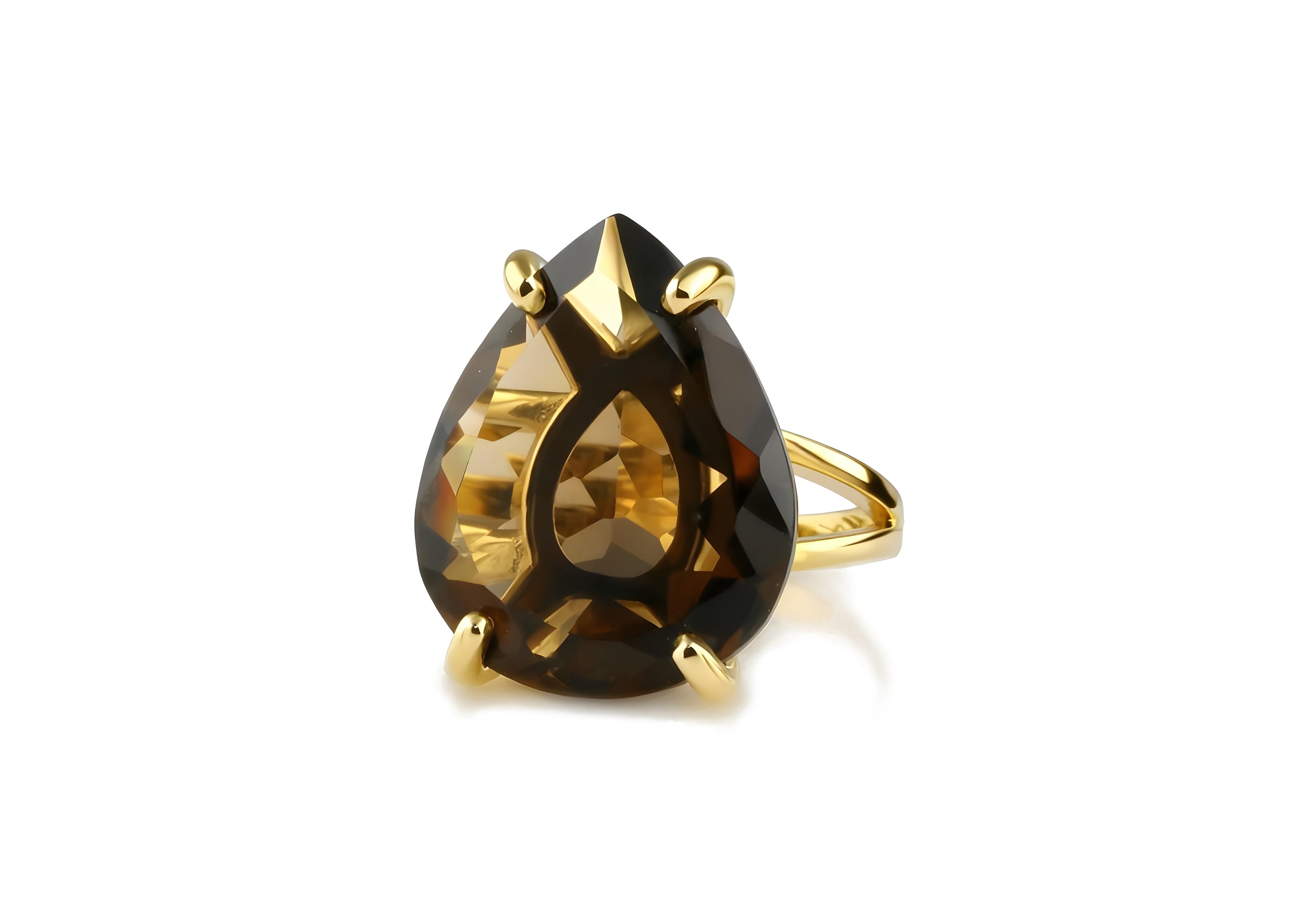 This exquisite smoky quartz ring features a faceted pear-cut gemstone set in 14k gold vermeil. The deep brown hues of the quartz reflect warmth and sophistication, enhanced by the double band design for a refined yet bold appearance. Each ring is handcrafted with care, making it a beautiful gift or statement accessory for any occasion.
