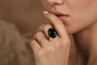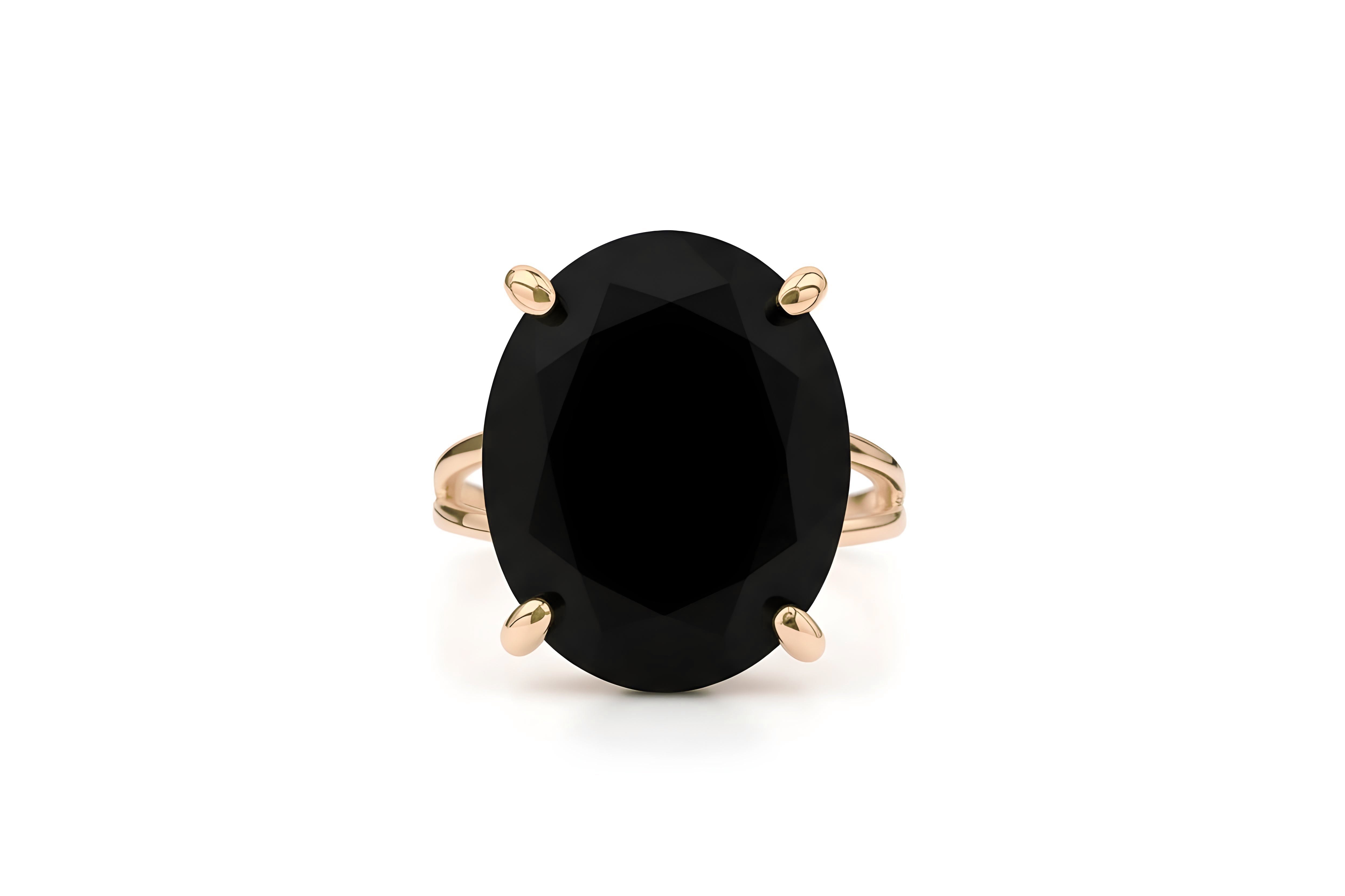 This rose gold black onyx ring is designed as a large cocktail statement piece, featuring a bold faceted gemstone in a polished rose gold band. The deep black tones of onyx bring elegance and grounding energy, while the warm rose gold adds a modern, stylish touch. Handcrafted with care, this gemstone ring is perfect for women who love bold jewelry. With customization options available, it makes a meaningful gift or a striking addition to any collection.