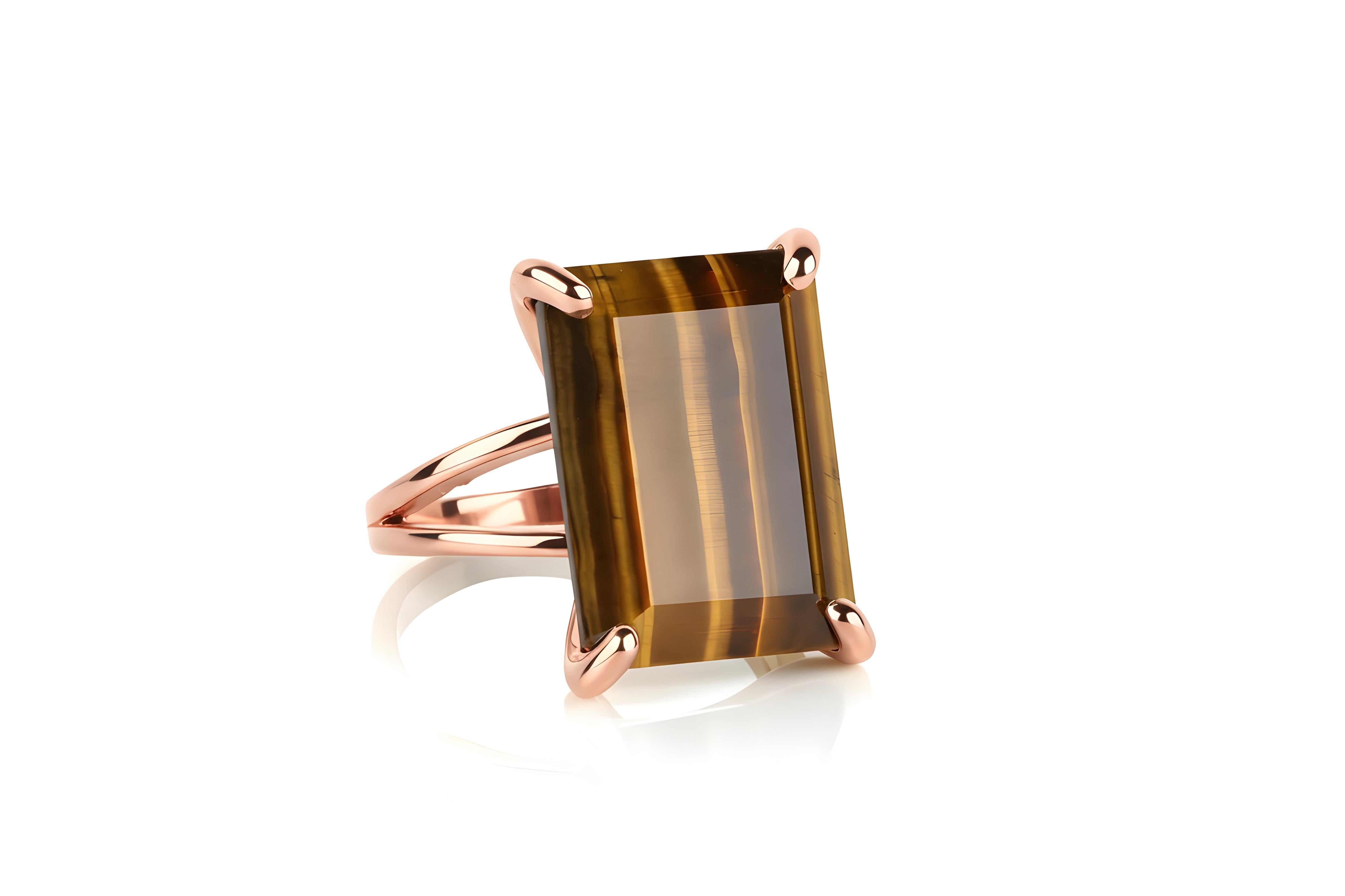 14k Rose Gold Large Handmade Tiger Eye Ring