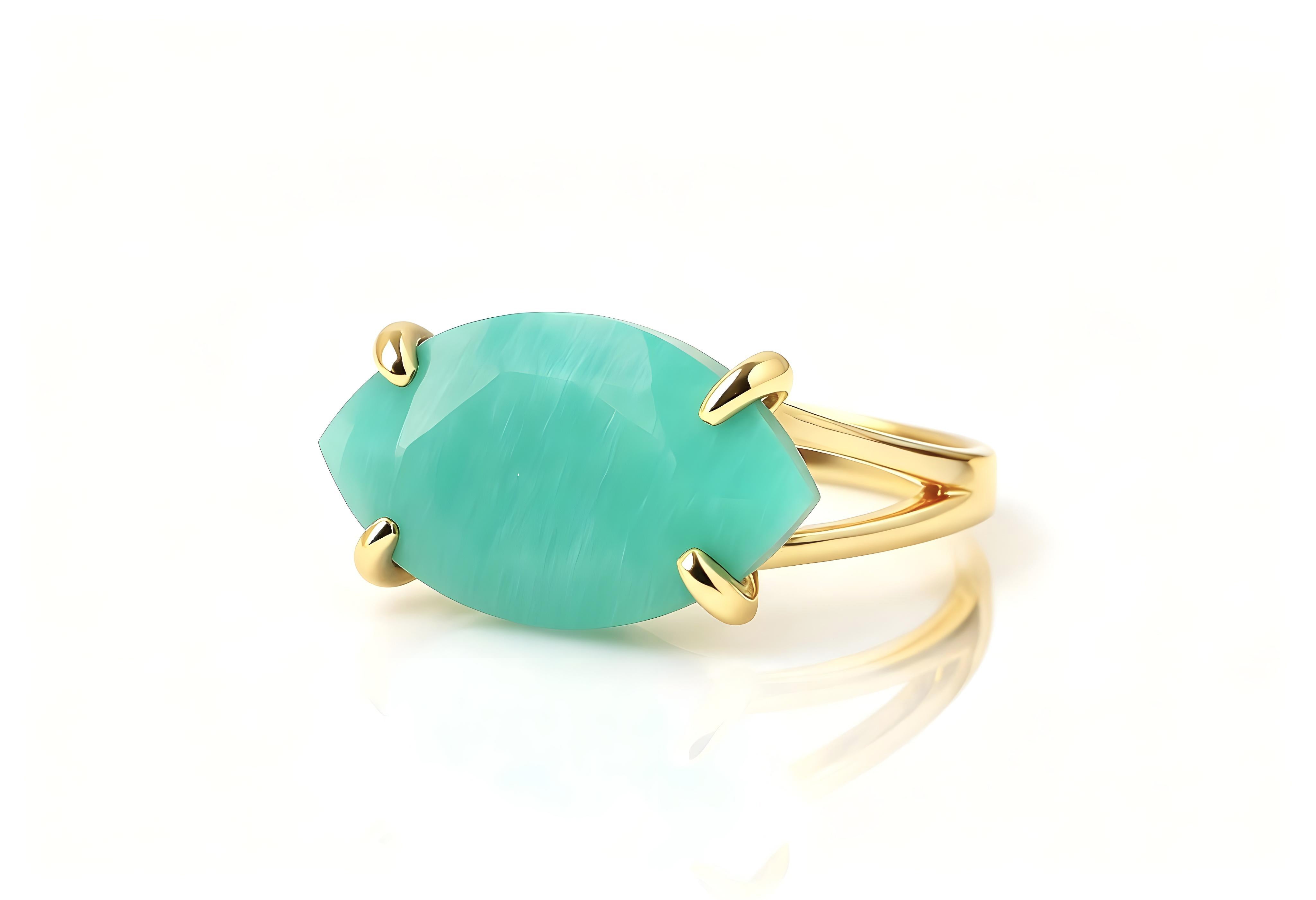14k Yellow Gold Marquise Amazonite Stone Ring