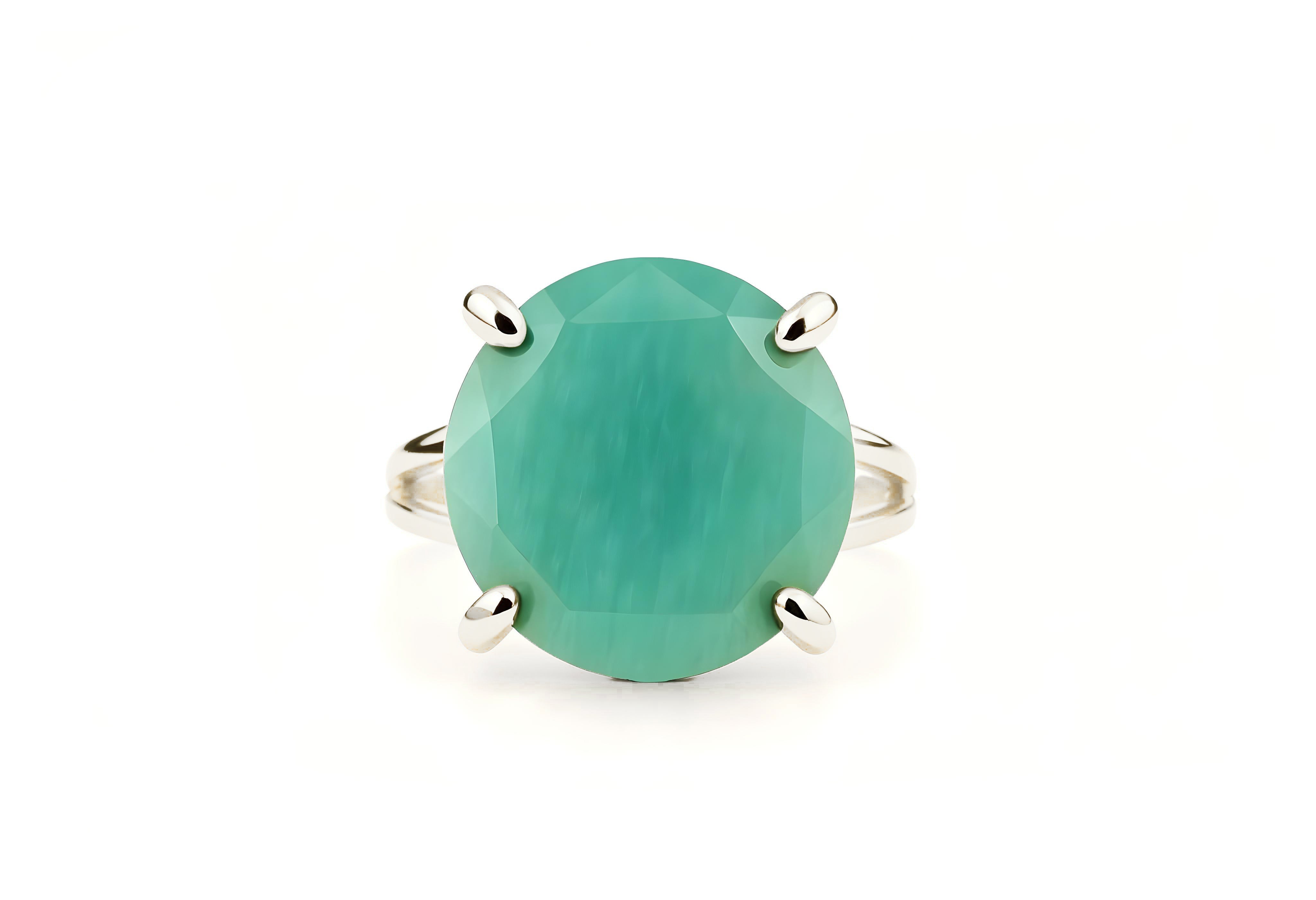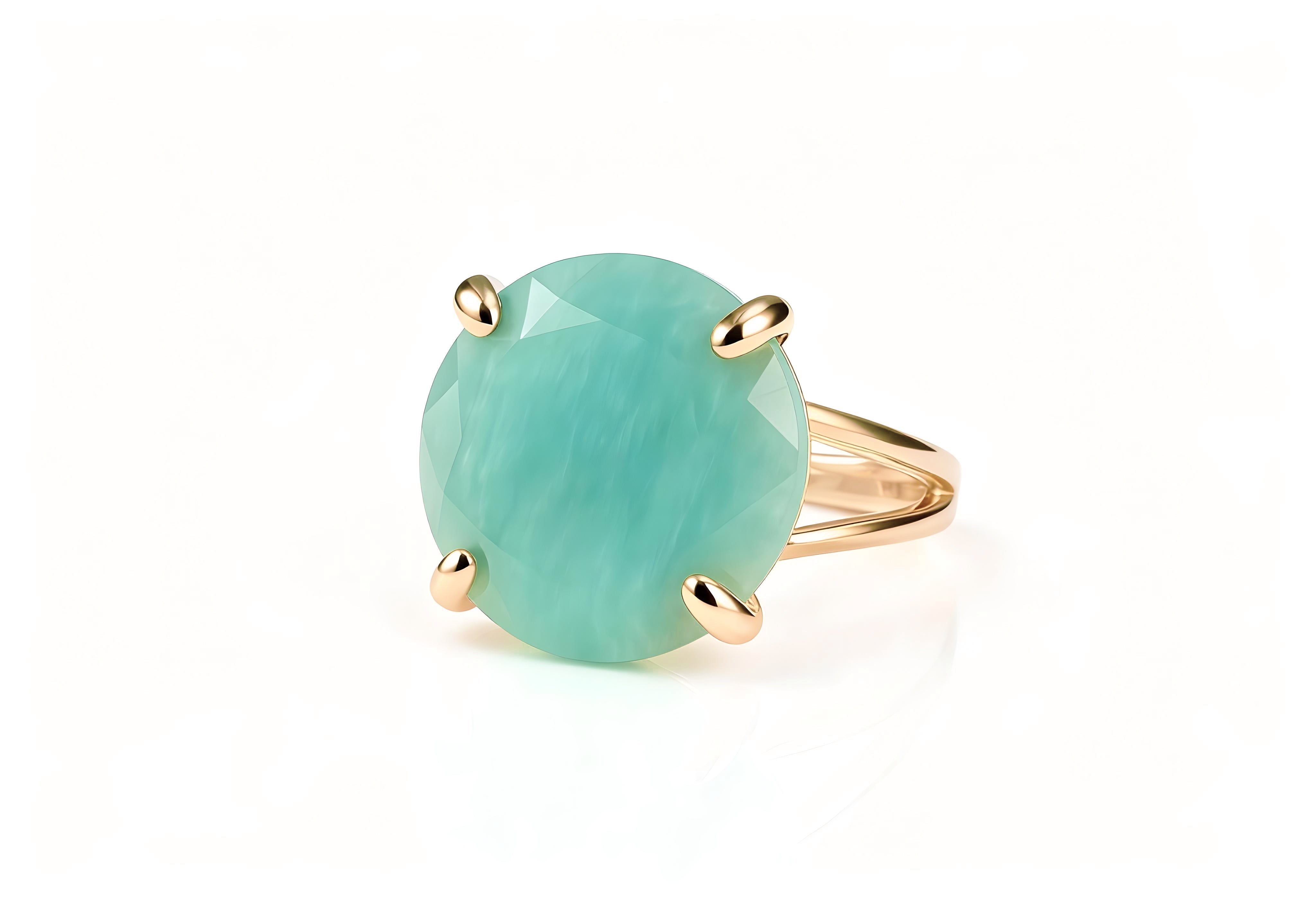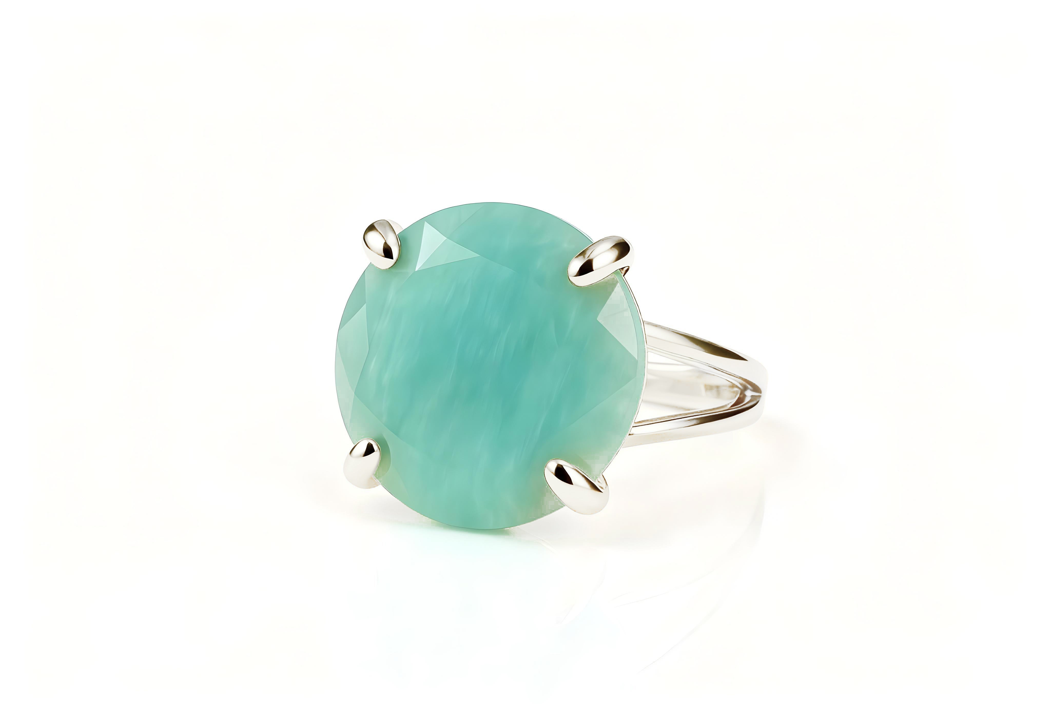 This Amazonite ring is crafted in polished sterling silver and features a round-cut gemstone radiating with calming aqua-green hues. Its prong setting enhances the natural beauty of the stone, creating a striking yet refined look perfect for daily wear or special occasions. Each ring is handmade with care, offering a comfortable fit and timeless shine. Choose any metal type or request a personalized version to make it truly yours.