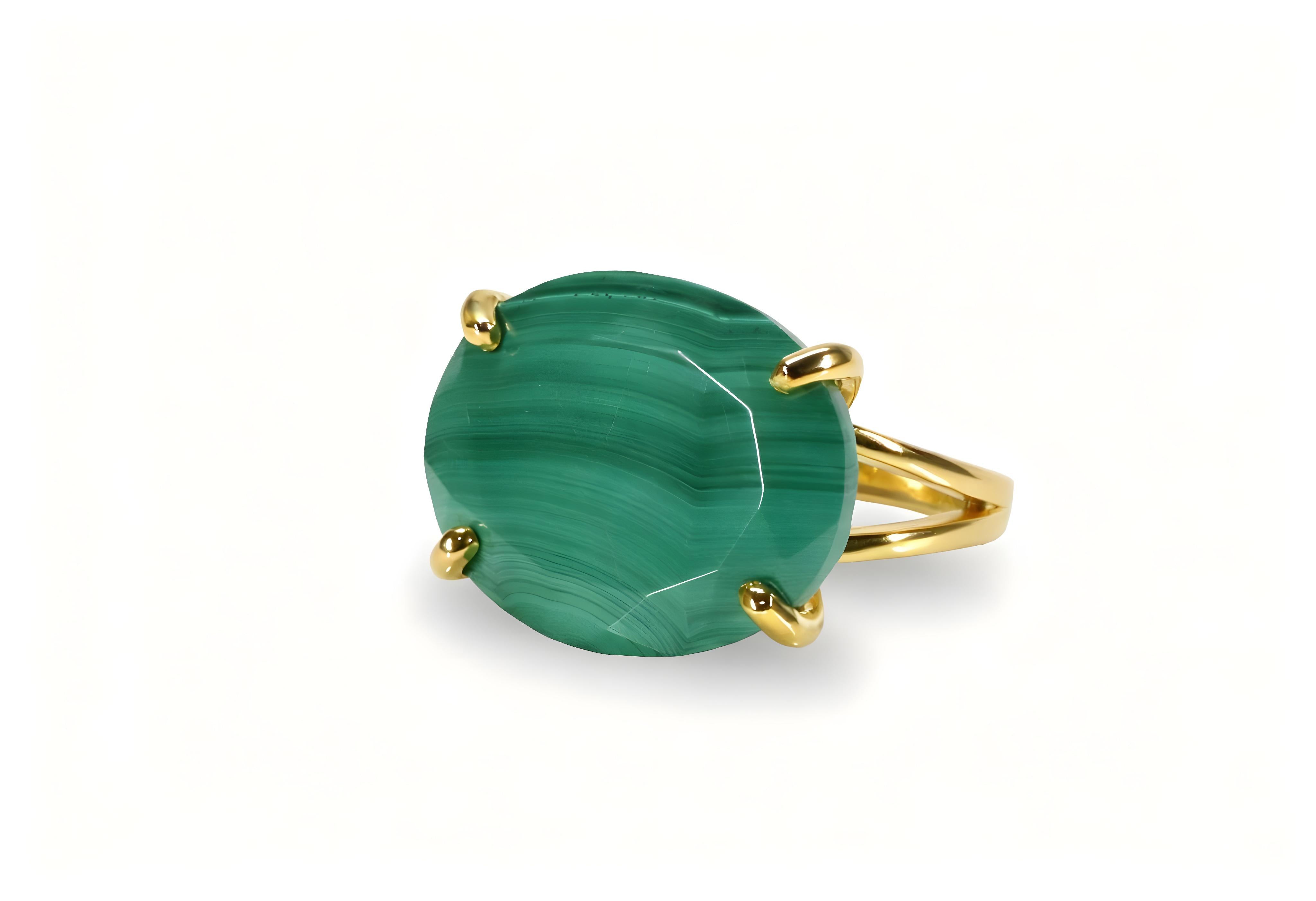 This vintage-style malachite ring features a smooth oval stone with natural banding that adds soft movement and depth to the design. Set in sterling silver 925, the clean and simple band highlights the rich green color of the gemstone without overwhelming it. The ring feels lightweight, comfortable, and easy to wear daily. With its classic shape and polished finish, it makes a thoughtful gift or a timeless addition to your jewelry box. Each ring is crafted to your selected size for a personal and seamless fit.