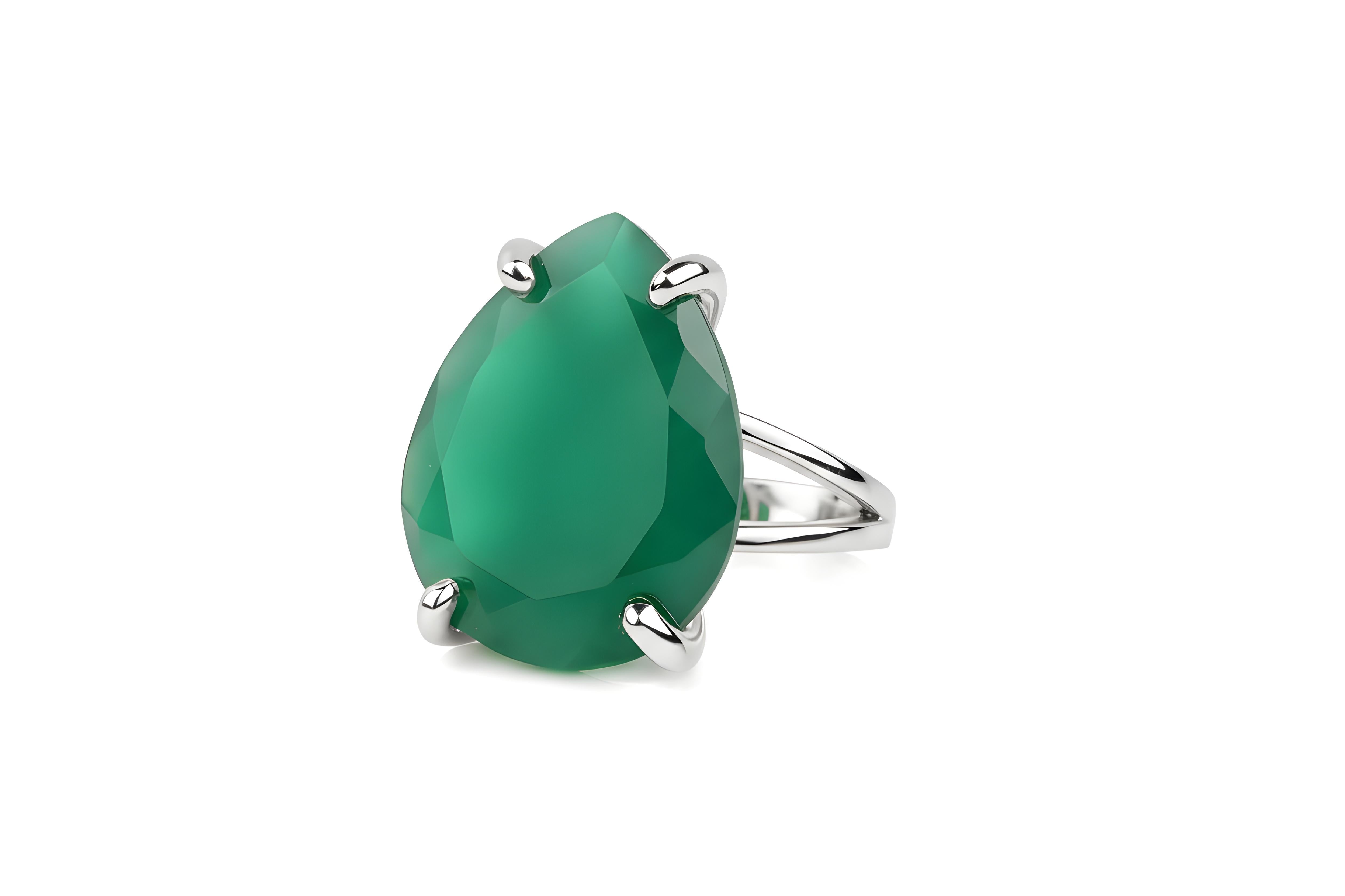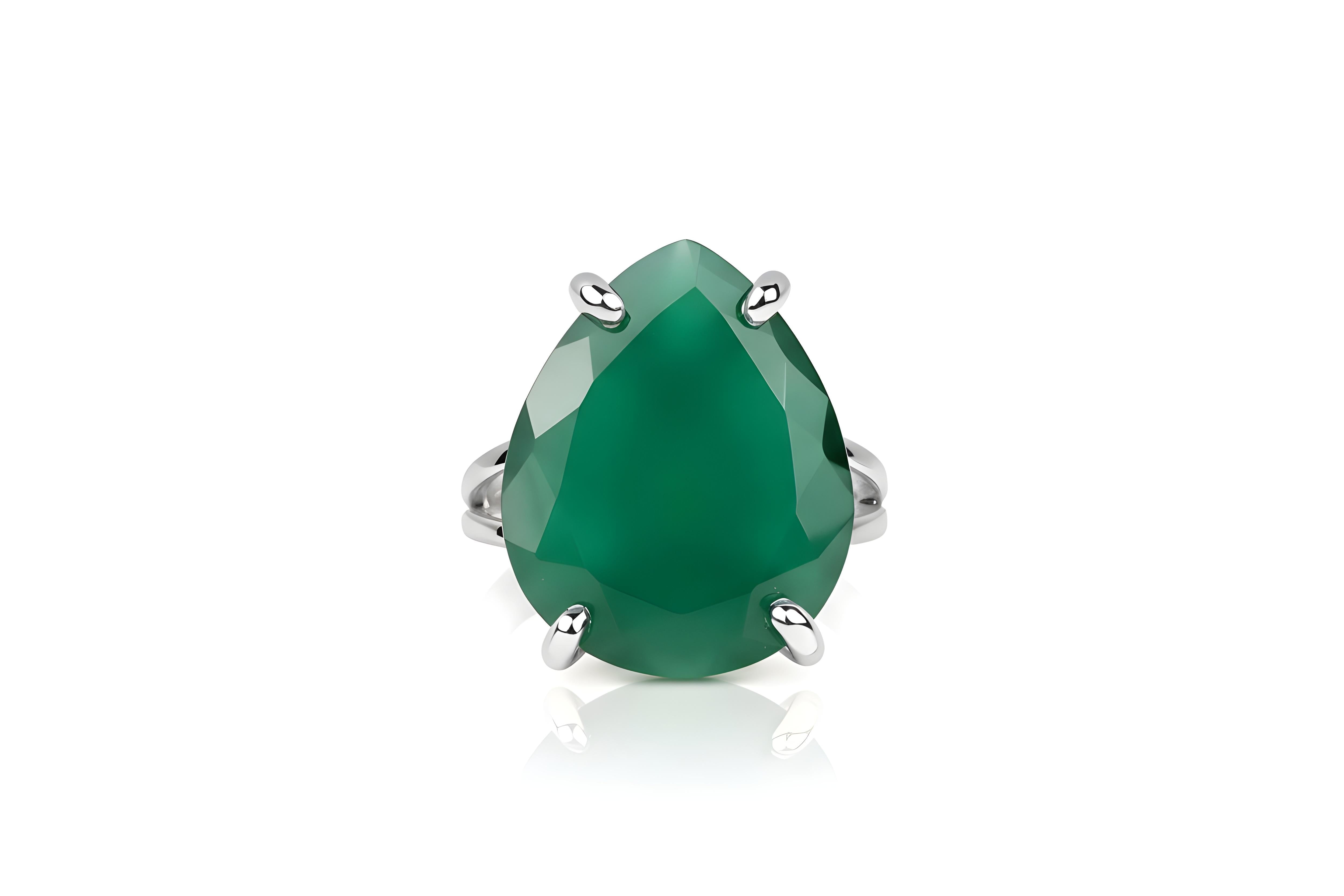 This teardrop-shaped ring showcases a vivid green onyx gemstone set in 925 sterling silver, reflecting a refined and timeless charm. The polished silver finish enhances the gemstone’s deep green tones, creating a fresh and elegant look for any occasion. Handcrafted with care, this ring makes a perfect choice for those who love classic gemstone jewelry with a touch of modern simplicity.
