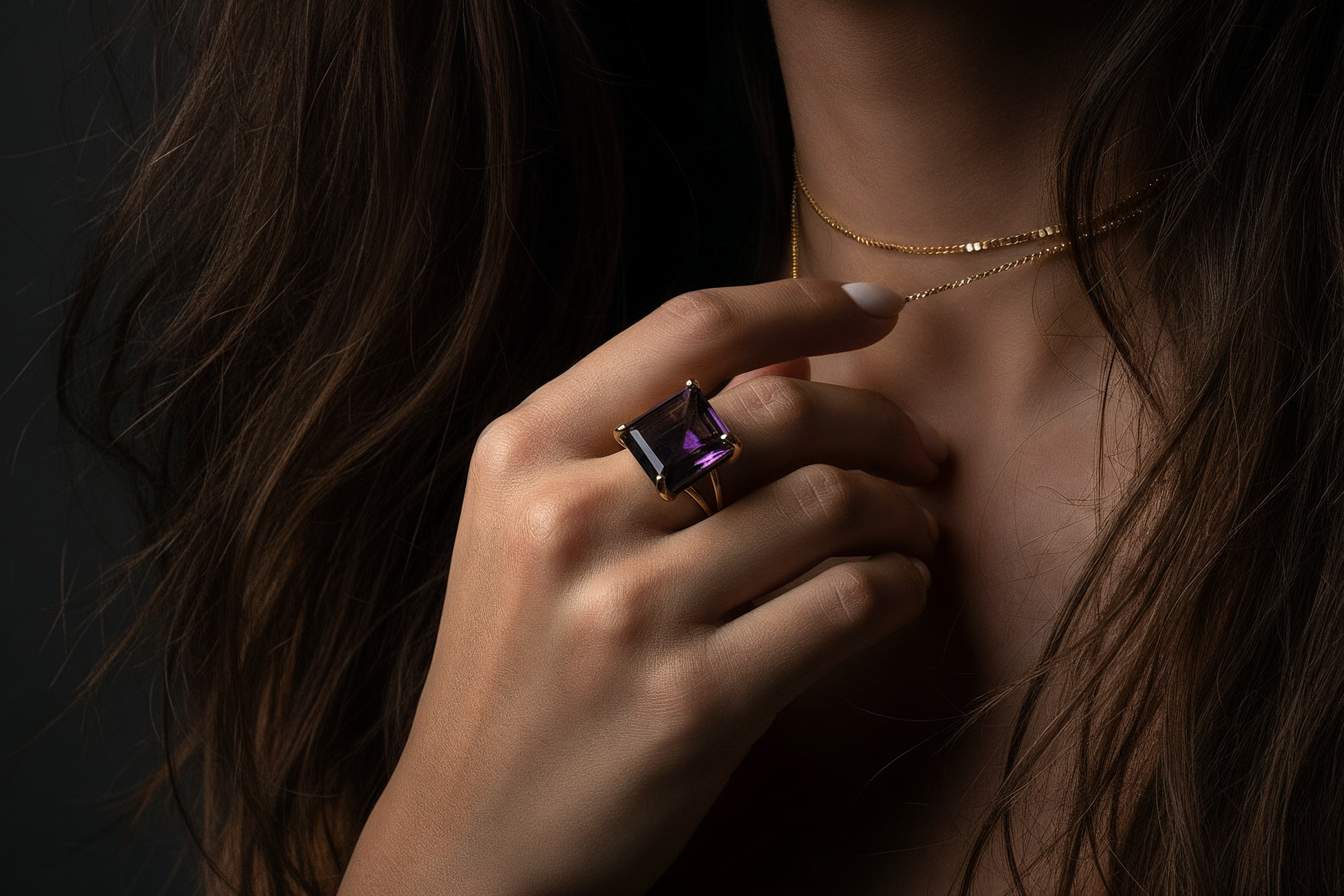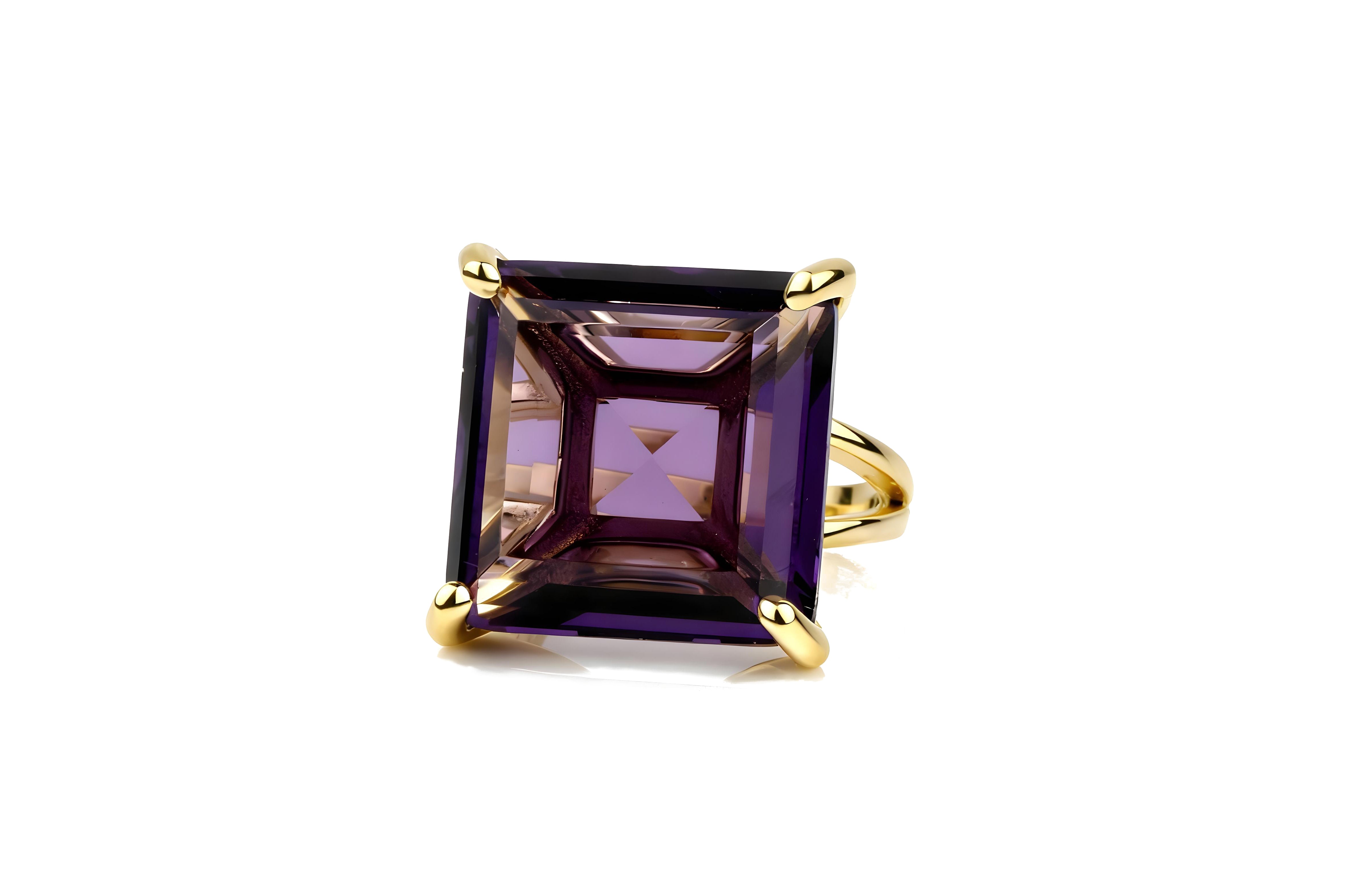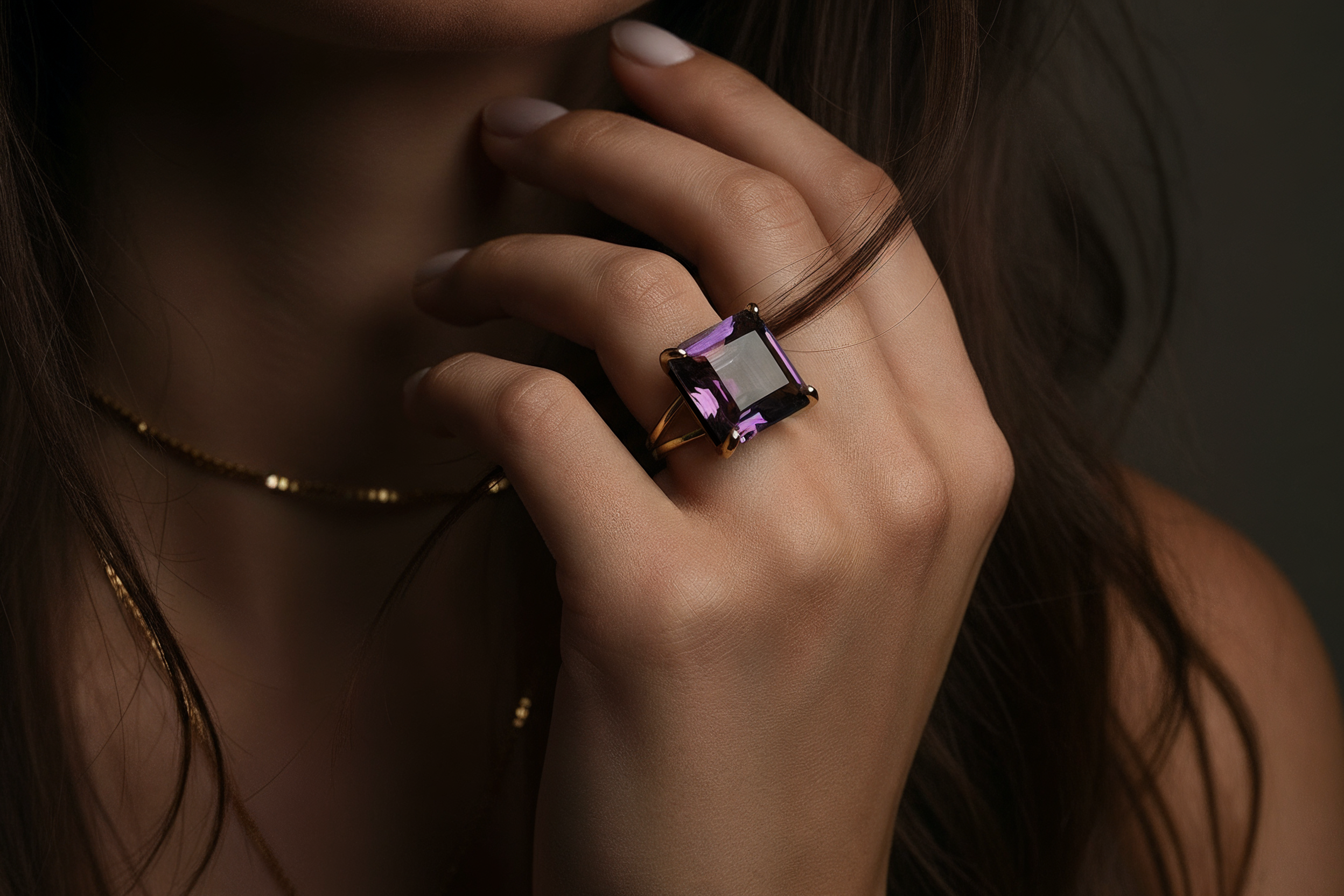 This rose gold filled ring features a captivating square-cut amethyst with a radiant purple tone. The warm rose gold hue complements the gemstone’s brilliance, making it a striking choice for everyday wear or gifting. Handcrafted with precision, it’s perfect as a February birthstone, promise, or statement ring.